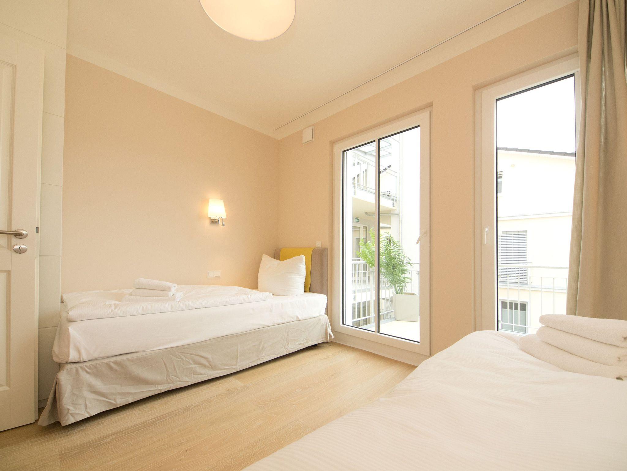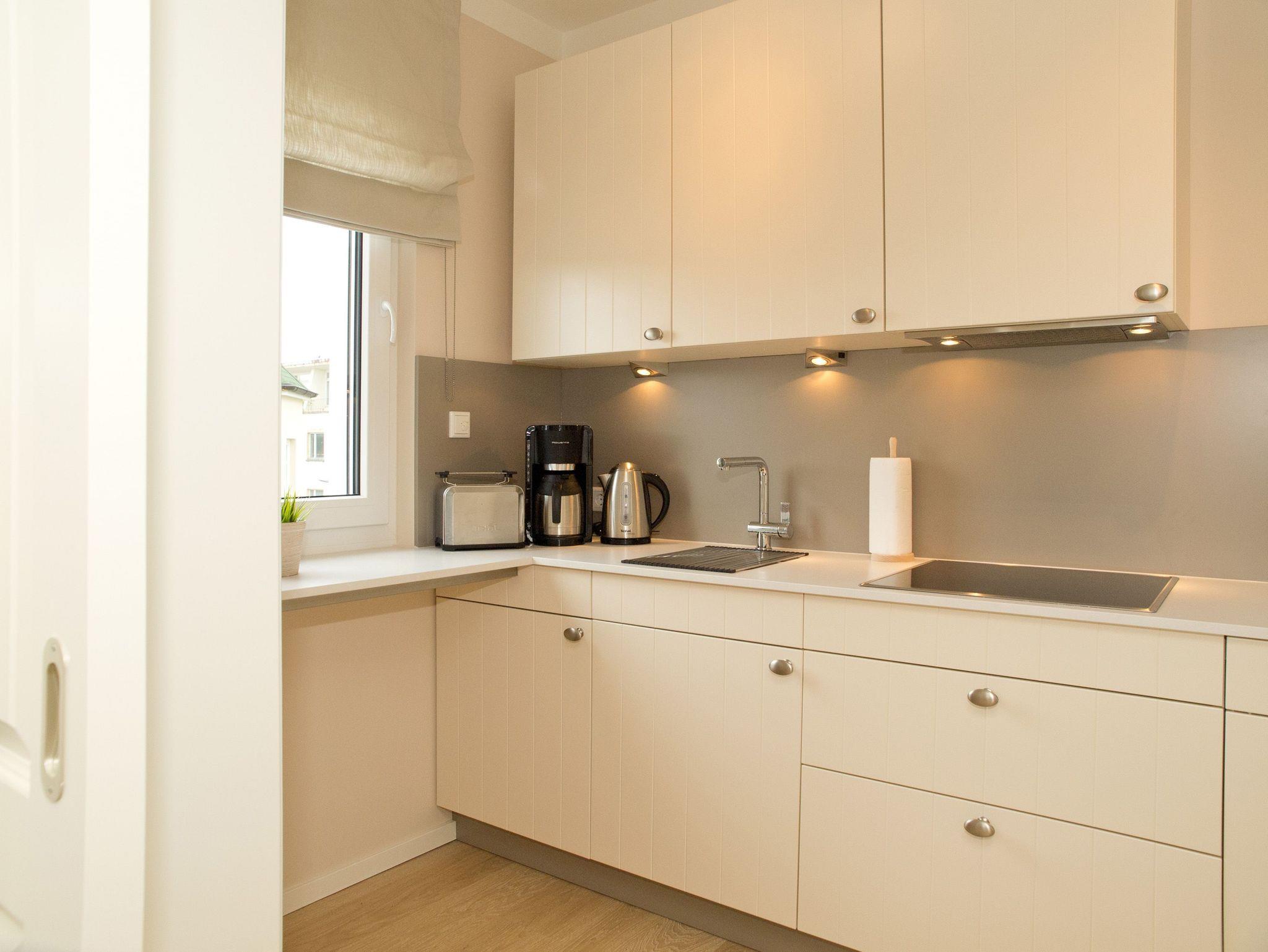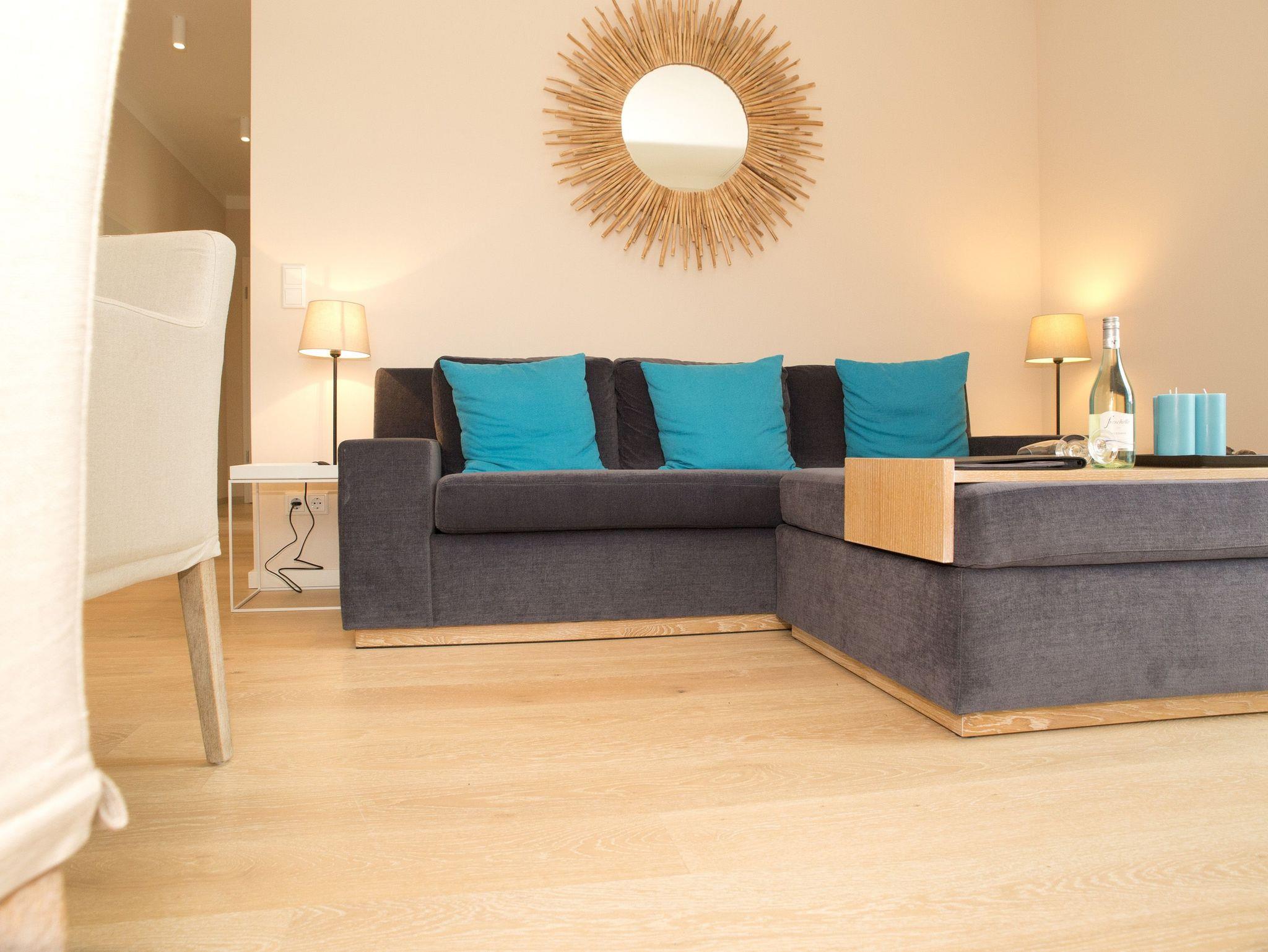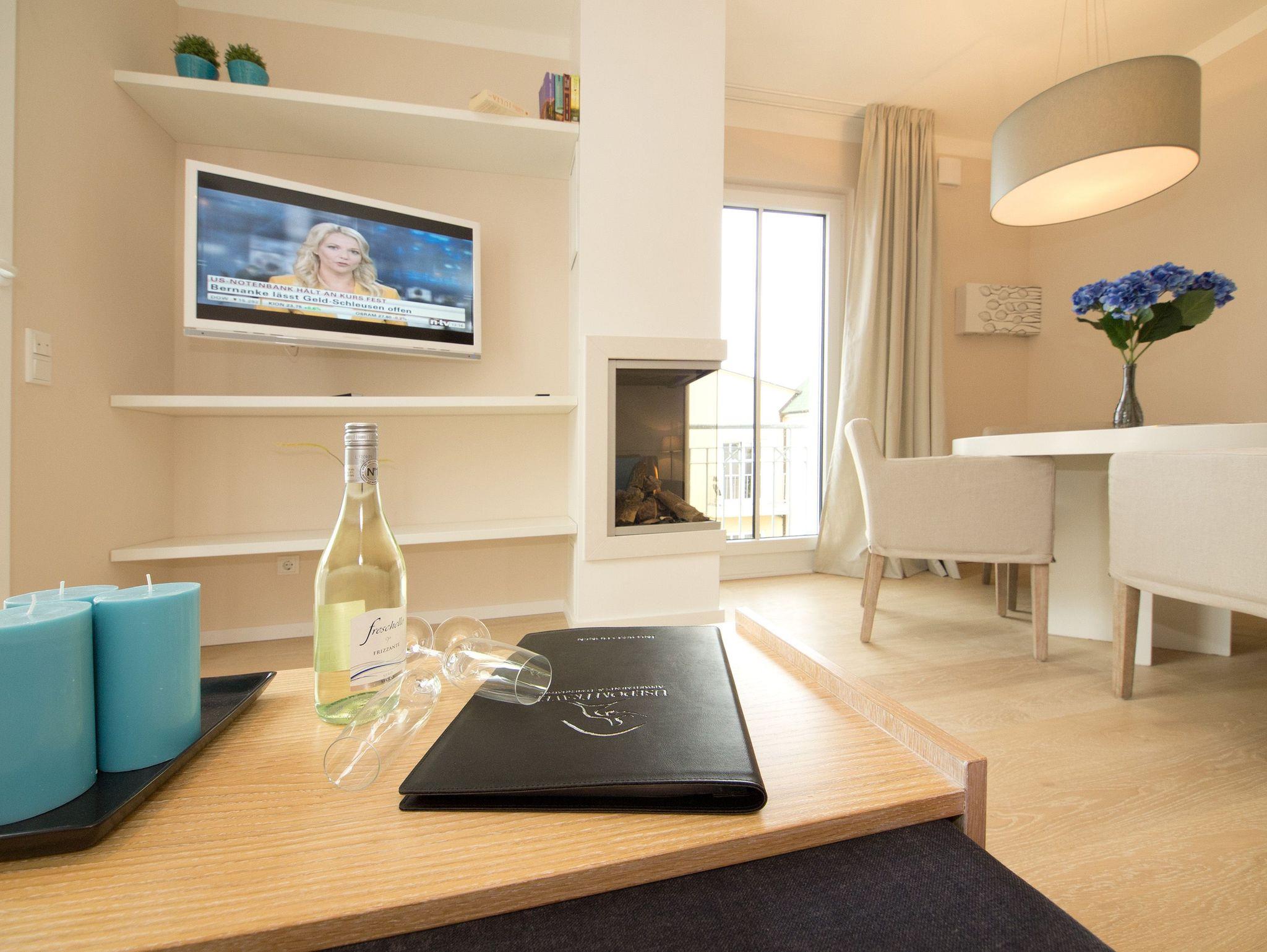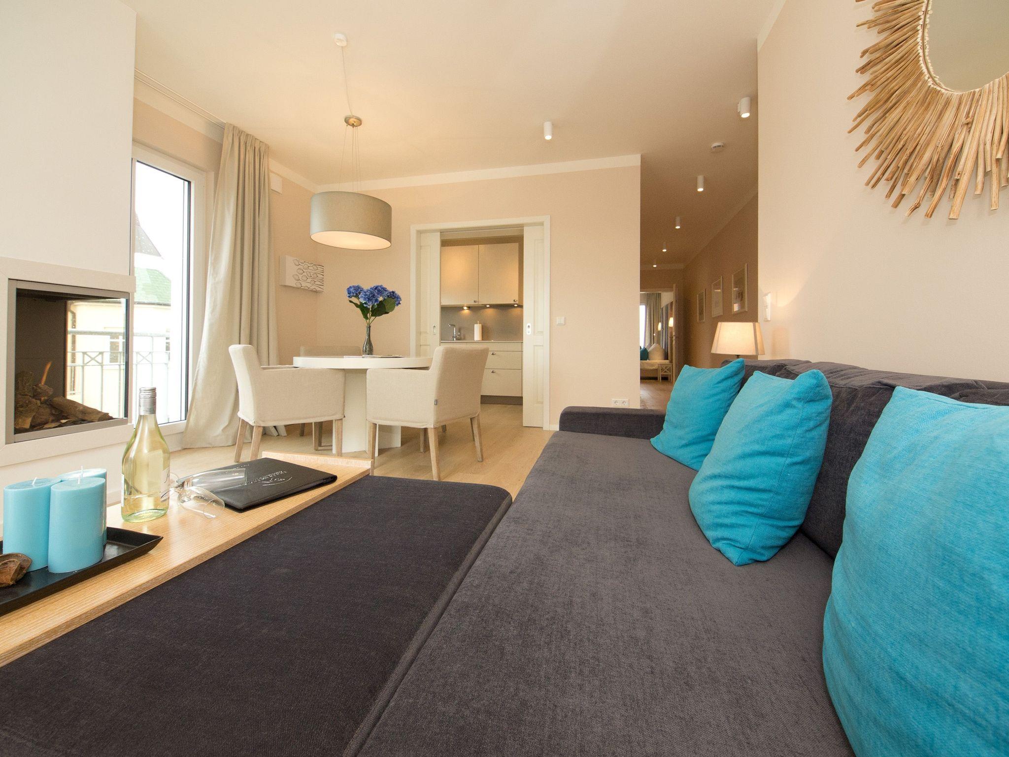 Ein maßgeschneidertes Wohlfühldomizil empfängt Sie in der zweiten Etage des Dünenpalais. Auf großzügigen 80 qm finden hier 4 Personen und 1 Kleinkind (bis 3 Jahre im Kinderreisebett) Platz zum entspannten Urlauben. Ein edler, heller Dielenboden wurde von versierter Architektenhand geschickt mit einer modernen exklusiven Einrichtung kombiniert. An den Wohnbereich mit Sitzgruppe, Flat-TV und Gaskamin (per Fernbedienung zu benutzen) schließen sich die bequeme Essgruppe und die schöne, komplett ausgestattete Küche im modernen Landhausstil (durch Schiebetür abgetrennt) an. Das große Schlafzimmer ist mit einem Doppelboxspringbett ausgestattet, von hier hat man sogar ein wenig Meerblick! In der angrenzenden Ankleide ist viel Platz für Ihre Urlaubsbekleidung. Das zweite, kleinere Schlafzimmer ist mit 2 Einzelbetten ausgestattet. Von hier und natürlich auch vom Wohnbereich hat man Zugang zum sonnigen Südbalkon. Ein besonderes Highlight ist die wohnungseigene Sauna, die im schönen Bad mit großer Glasdusche integriert ist. Für Ihren Komfort steht die Erstausstattung Wäsche für Sie bereit. Ein Kinderreisebett (ohne zusätzliche Matratze und Bettzeug) und einen Hochstuhl können Sie auf Wunsch gegen einen Aufpreis dazu buchen. Ein Pkw-Stellplatz befindet sich in der Tiefgarage.