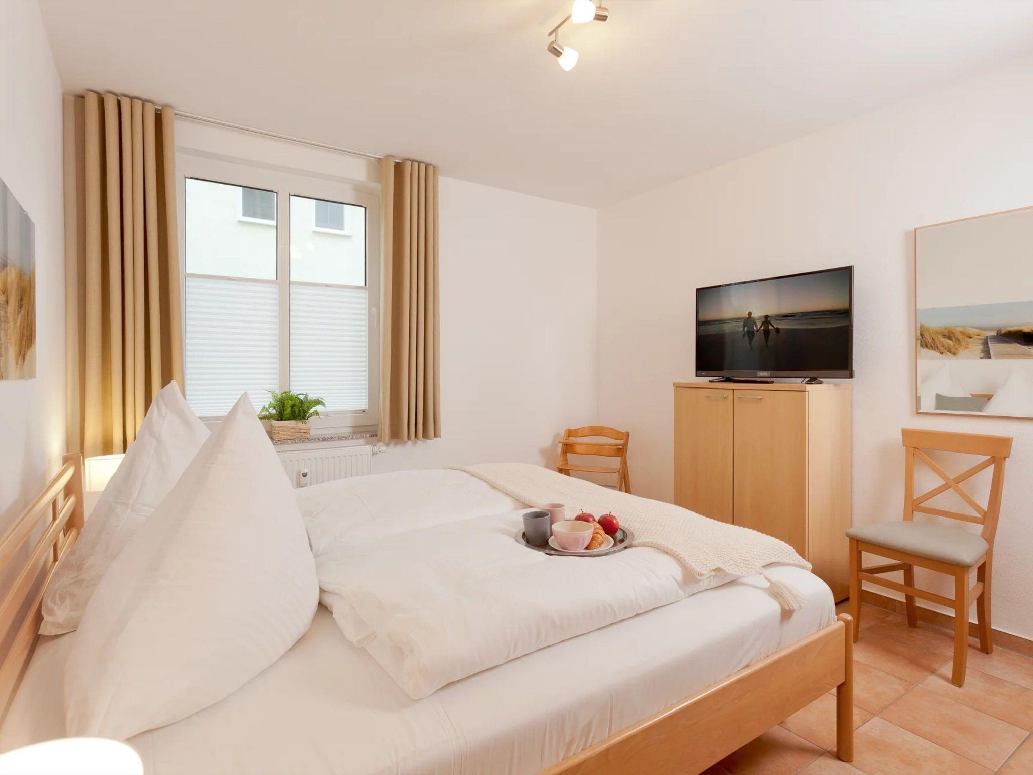 • Schlafzimmer 1 mit Doppelbett (1,80 x 2,00 m) und zusätzlichem Flat-TV