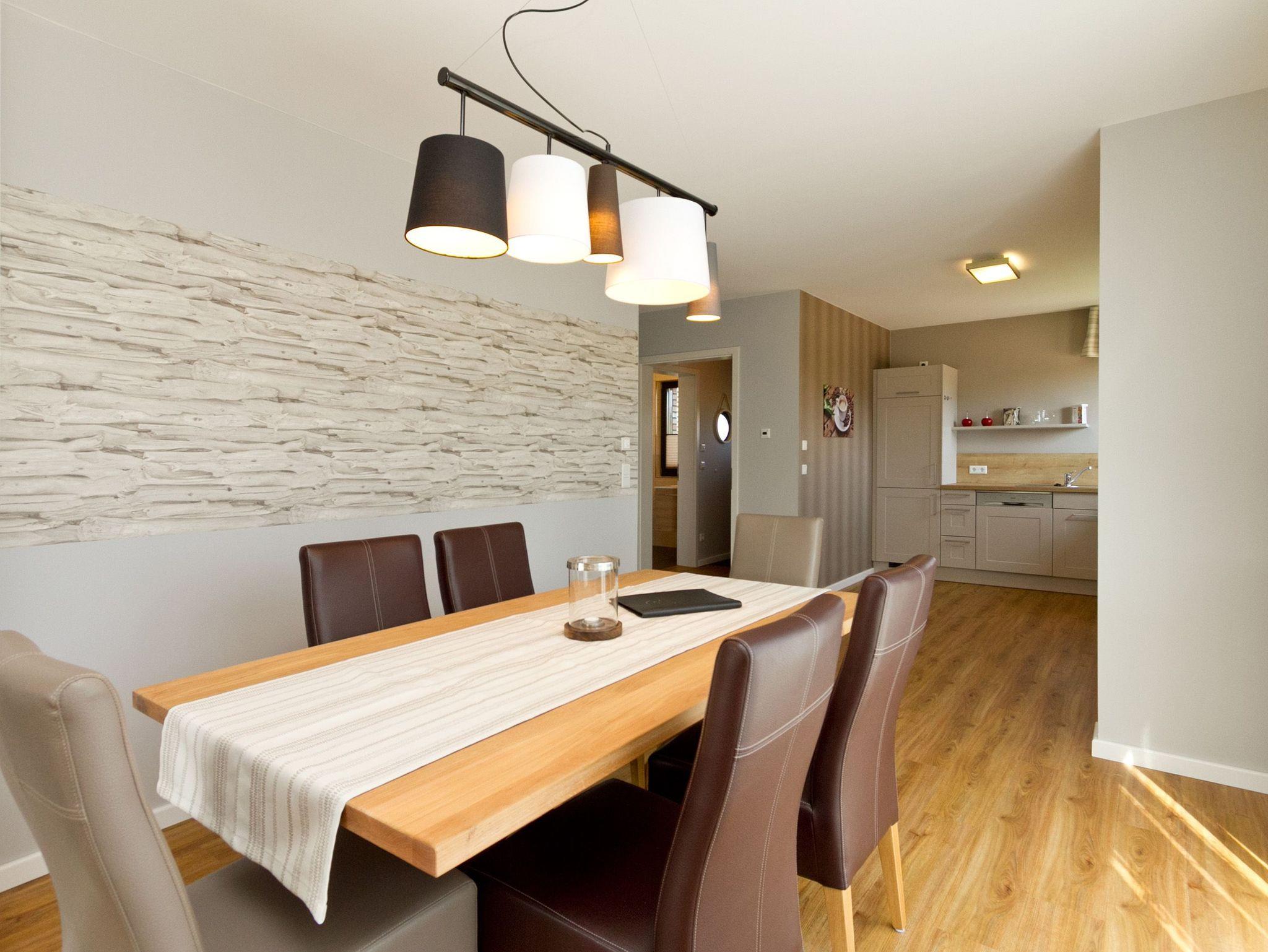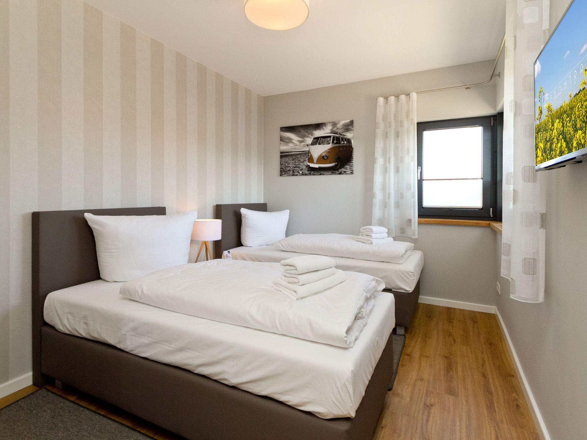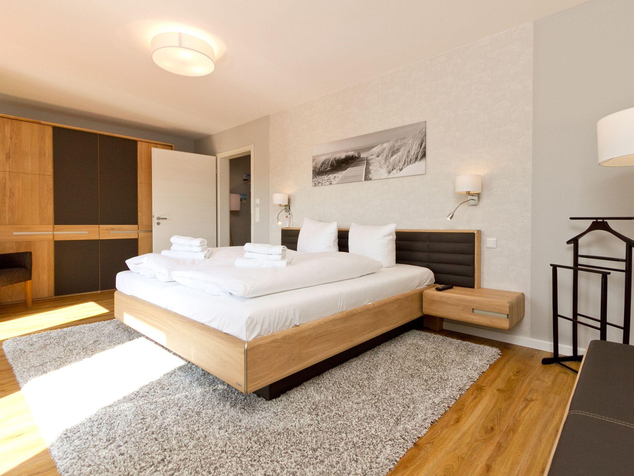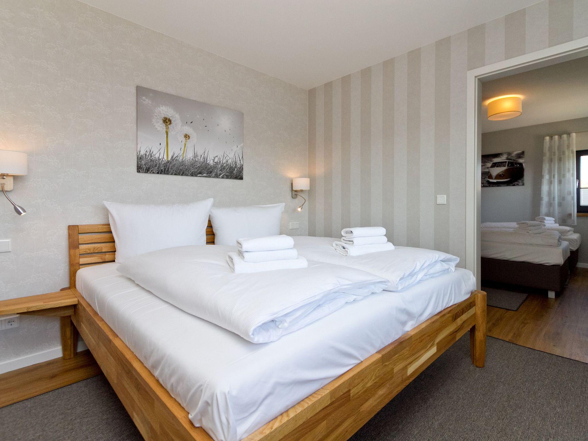 Herzlich willkommen im Ferienhaus Wiesenblick. Auf 140 Quadratmetern finden bis zu sechs Personen und zwei Kleinkinder viel Raum zum Entspannen. Der Wohnbereich im Erdgeschoss wirkt durch die großen Fenster offen und freundlich. Eine bequeme Sitzgruppe, Flat TV, Internetradio und der Kamin machen ihn zum Mittelpunkt des Hauses. Von hier erreichen Sie die sonnige Südterrasse mit rund 30 Quadratmetern Fläche, Strandkorb, Sitzmöbeln und freiem Blick über die Ahlbecker Wiesen. Die offene Küche ist modern ausgestattet und bietet am hellen Essplatz genügend Platz für gemeinsame Mahlzeiten. Ein Bad mit Dusche und WC sowie ein Hauswirtschaftsraum mit Waschmaschine und Trockner runden das Erdgeschoss ab. Im Obergeschoss liegen die drei Schlafzimmer. Das große Schlafzimmer mit Doppelbett und Flat TV bietet viel Stauraum und eine ruhige Atmosphäre. Das zweite Schlafzimmer, ebenfalls mit Doppelbett, führt in das dritte Schlafzimmer mit zwei Boxspring Einzelbetten und Flat TV. Das moderne Bad auf dieser Etage verfügt über Farblicht, Badewanne, Dusche und Doppelwaschtisch. Elektrische Jalousien im ganzen Haus sorgen bei Bedarf für gute Verdunklung. Im Garten steht Ihnen ein Saunahäuschen mit Münzautomat zur Verfügung. WLAN nutzen Sie kostenfrei. Fahrräder können zusätzlich kostenfrei gebucht werden, ausgenommen in den Monaten Juli und August.