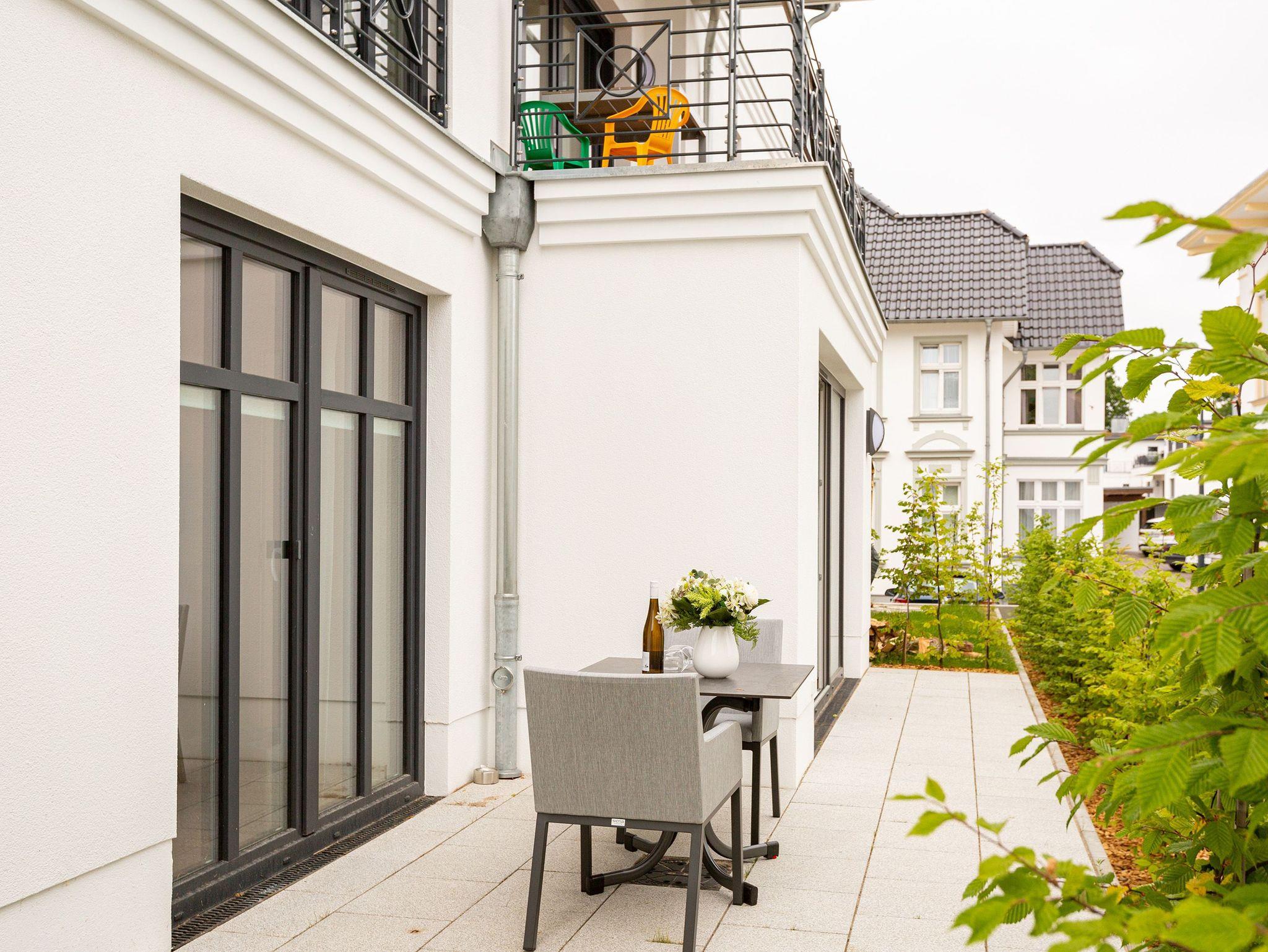 Das zeitgemäß erbaute Quartier Frohsinn besticht nicht nur durch seine zentrale und strandnahe ( 250 m) Lage im Seebad Ahlbeck, auch die moderne, geschmackvolle Einrichtung der 2- bis 4-Raum-Appartements wird Sie überzeugen. Das Haus verfügt über eine Tiefgarage und einen Aufzug. Bitte beachten Sie, dass sich neben der Annehmlichkeit des Fahrstuhls, auf den Wegen im öffentlichen Bereich und teilweise in den Wohnungen Stufen befinden (nicht barrierefrei). Für jede Wohnung steht im Haus ein PkW-Stellplatz in der Tiefgarage (außer App. 4 b ein Außenstellplatz) zur Verfügung. In wohnungseigenen Kellerräumen können Sie Ihre Fahrräder abstellen. Ebenso steht kostenfreies WLAN zur Verfügung.