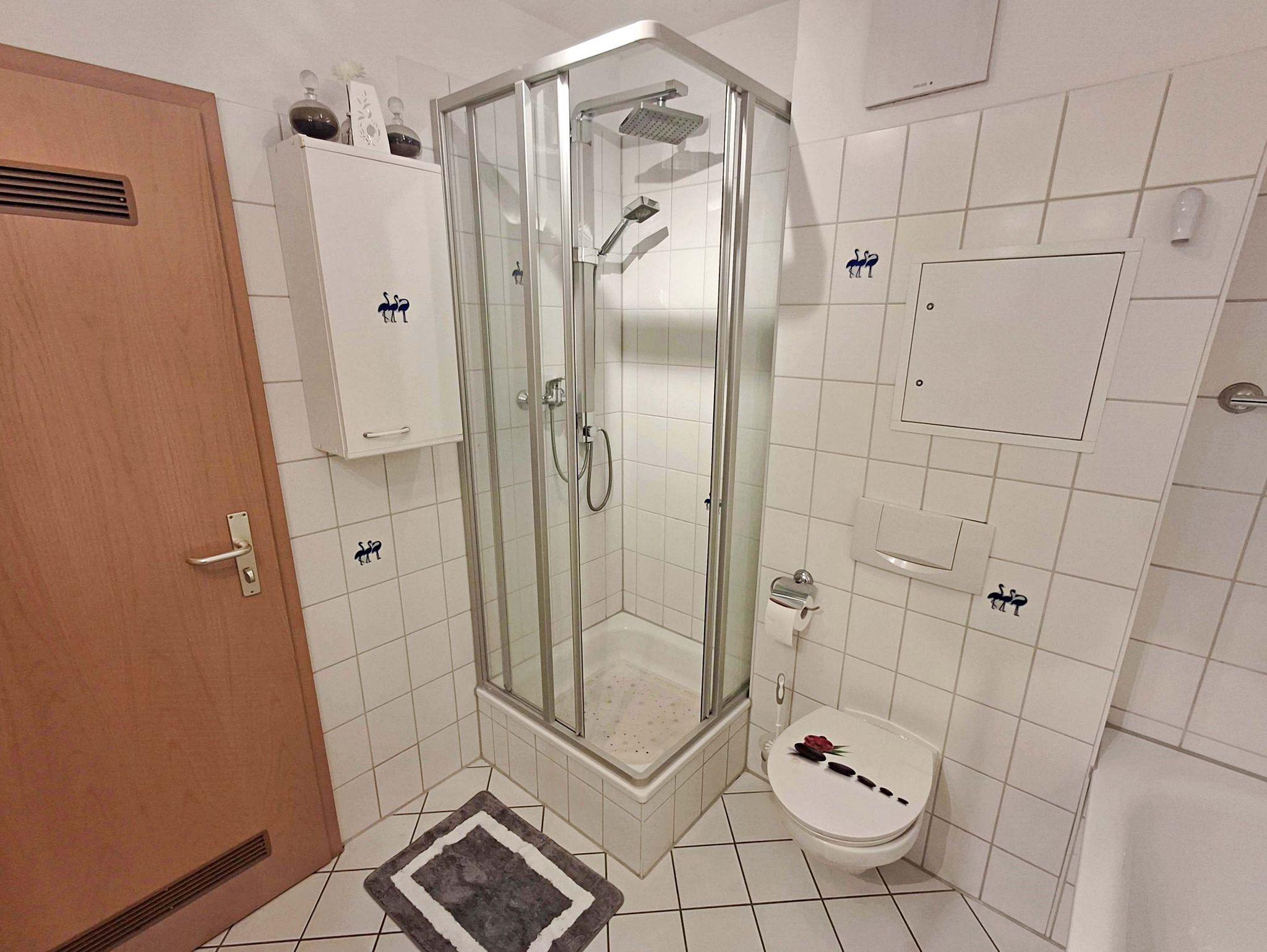 Mit einer großzügigen Fläche von ca. 58 m² bietet Ihnen diese charmante Wohnung alles, was Sie für einen angenehmen Aufenthalt benötigen und genügend Platz für bis zu 2 Personen. Sie befindet sich in der 1. Etage eines kleinen Mehrfamilienhauses und verfügt über ein separates Schlafzimmer mit einem komfortablen Doppelbett. Für Selbstversorger steht Ihnen eine rundum gut ausgestattete separate Küche mit einem kleinen Essplatz zur Verfügung, die keine Wünsche offen lässt. Im Wohnbereich erwartet Sie ein großer Essplatz sowie eine bequeme Sitzgarnitur, ideal zum Entspannen und Verweilen. Ein Flachbildfernseher sorgt für Unterhaltung. Das Badezimmer ist sowohl mit einer Badewanne als auch mit einer Dusche ausgestattet, sodass Sie sich nach einem erlebnisreichen Tag wunderbar erfrischen können. Genießen Sie die frische Luft auf Ihrem eigenen Balkon, der mit bequemen Sitzmöbeln ausgestattet ist - perfekt, um morgens Ihren Kaffee zu genießen oder den Abend bei einem Glas Wein ausklingen zu lassen. Ein Pkw-Stellplatz befindet sich direkt auf dem Grundstück und die Erstausstattung mit Bettwäsche und Handtüchern ist bereits im Preis enthalten. Für Fahrradliebhaber steht ein Fahrradständer vor dem Haus bereit.