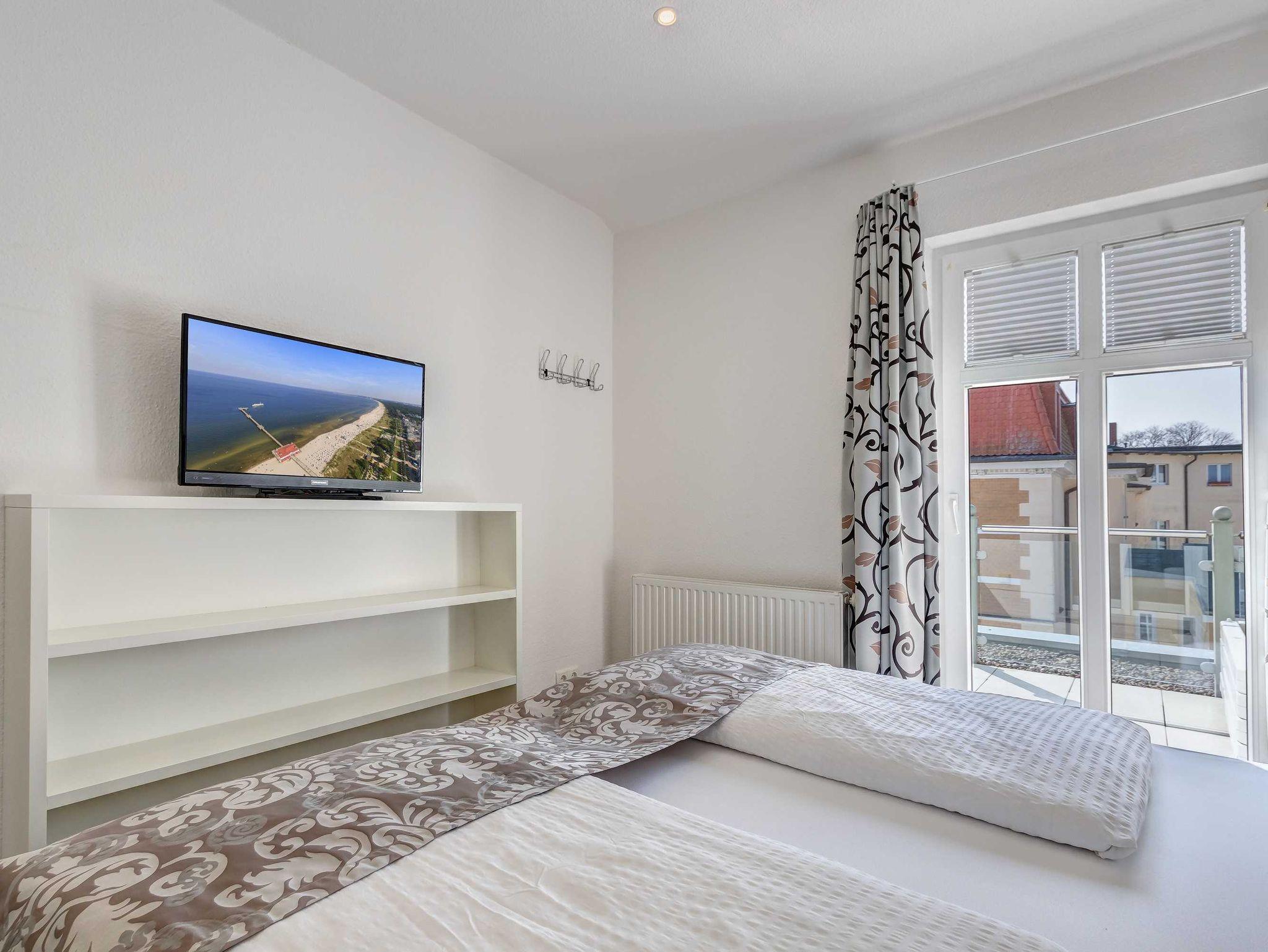 Schickes geräumiges 3-Zimmer-Appartement mit moderner hochwertiger Ausstattung. Zwei separate Schlafzimmer, Wohnzimmer mit Küchenbereich und Essplatz, Duschbad, 45 qm Dachterrasse über Eck nach Osten und Süden mit Sonne von morgens bis abends und herrlichem Seeblick. Die Wohnung verfügt über einen Tiefgaragen-Pkw-Stellplatz. In der Garage können auch Fahrräder und ähnliches untergestellt werden. Von der Villa Aquamarina sind es zum Ortszentrum und der Seebrücke ca. 3 Minuten zu Fuß. Zum Strand sind es 50 m. Die Wohnungen der Villa Aquamarina verfügen alle über passwortgeschütztes WLAN (gerätegebunden, Euro 1,50 pro Tag und pro Gerät).