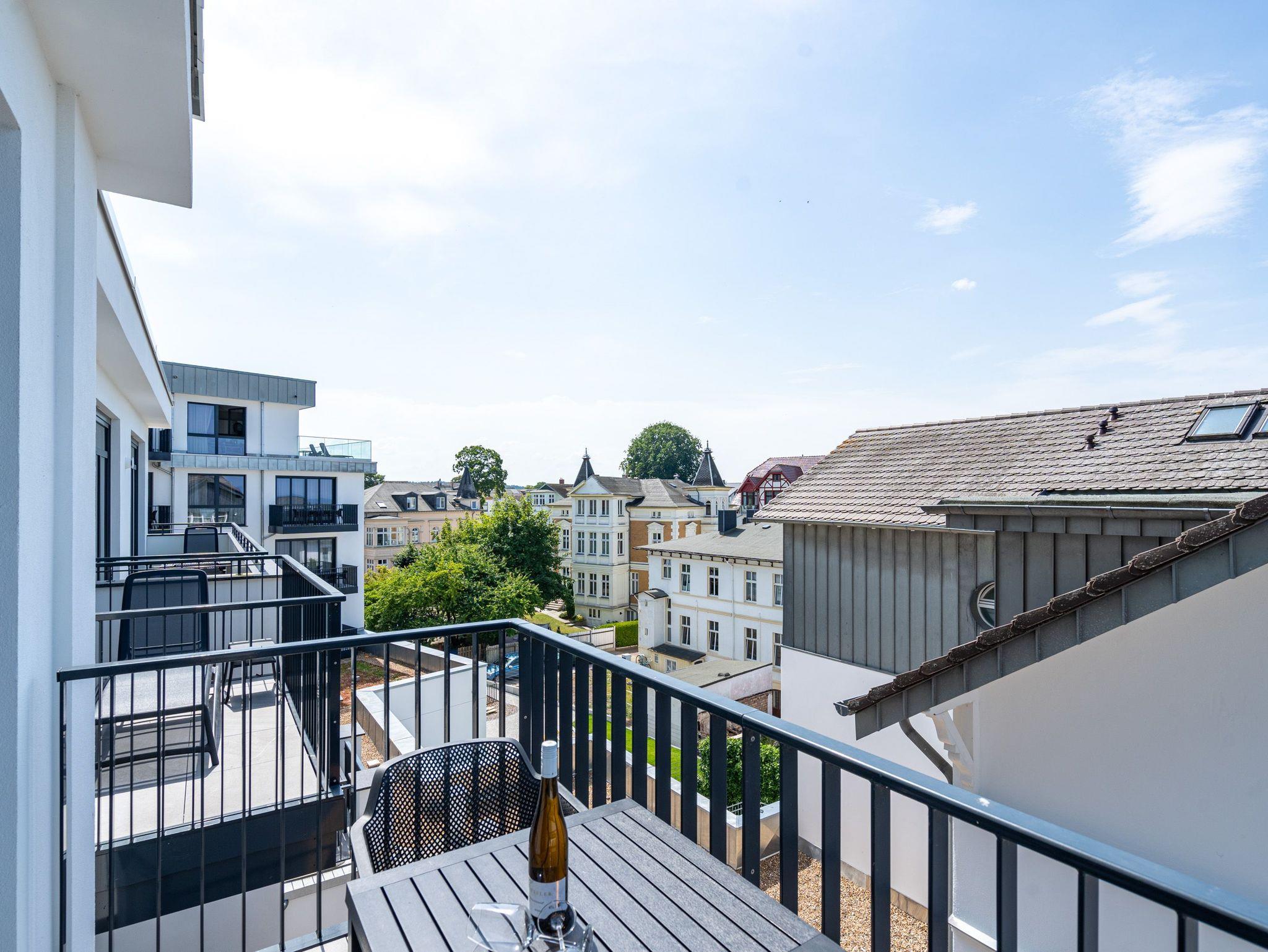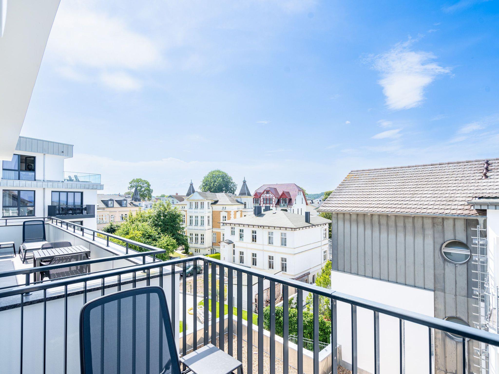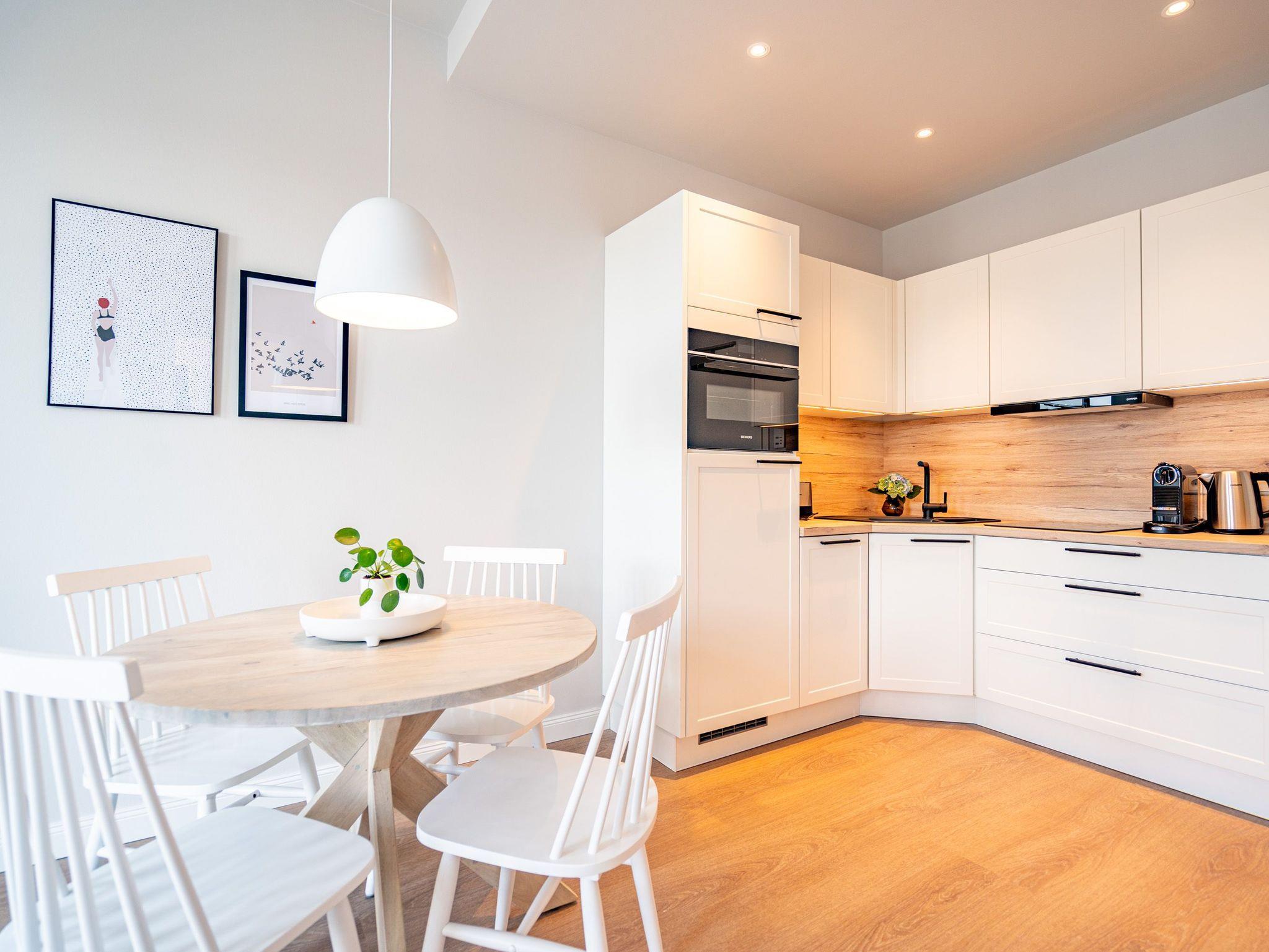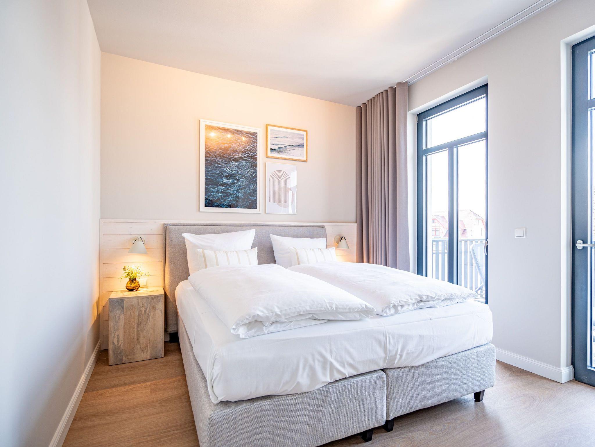 Wohnen wie auf Wolke sieben ? Das Strandterrasse-Appartement A 3.2 im Haus A im 3. Obergeschoss empfängt Sie mit viel Komfort und einer modernen und stylischen Einrichtung. Das 46 Quadratmeter große 2-Raum-Appartement ist Ihr ganz persönliches Wohlfühlreich mit Meerblick und vielen Annehmlichkeiten. Bis zu zwei Personen können es sich in diesem charmanten Domizil in dem geräumigen Wohn-Esszimmer und dem dazugehörigen Schlafzimmer so richtig gemütlich machen. Entspannen Sie auf der hyggeligen Couch vor dem Elektrokamin (ohne Wärmeabgabe). Ein 50-Zoll-Flachbildfernseher sorgt für Kinoatmosphäre. Die offene Küchenzeile ist mit allen nötigen Geräten hochwertig ausgestattet. Dazu gehören ein Induktionsherd, ein Backofen und zwei verschiedene Kaffeemaschinen. Kochen wird hier zu Ihrem Lieblingshobby. Ein schöner Essplatz lädt zu gemeinsamen Mahlzeiten ein. Doch das Highlight der Wohnung sind die beiden Nord-West-Balkone mit einem Tisch und zwei Stühlen und mit einer Sonnenliege, von denen aus Sie seitlich über die Seebrücke Ahlbeck und die dahinter liegende Ostsee schauen können. Genießen Sie die Aussicht und tanken Sie beim Blick über das grenzenlose Blau neue Energie. Weil frische Seeluft müde macht, verspricht das komfortable Boxspringdoppelbett (1,80m x 2,00m) herrliche Träume und einen erholsamen Schlaf. Das Schlafzimmer verfügt zudem über einen geräumigen Kleiderschrank, eine Kommode und einen weiteren 43-Zoll-Flachbildfernseher. Von hier aus haben Sie Zugang auf den zweiten Balkon. So können Sie direkt nach dem Aufwachen die Meeresluft tief einatmen, während Ihre Augen sich an der blauen Weite gar nicht satt sehen können. Zum Appartement gehört ein innenliegendes Bad mit einer Dusche, einem Waschtisch und einer Toilette. In der Tiefgarage ist für Ihr Auto ein PKW-Stellplatz reserviert. Verliebt? Dann kann es ja losgehen mit der Auszeit an der Ahlbecker Promenade. Erleben Sie unvergessliche Tage am Meer.