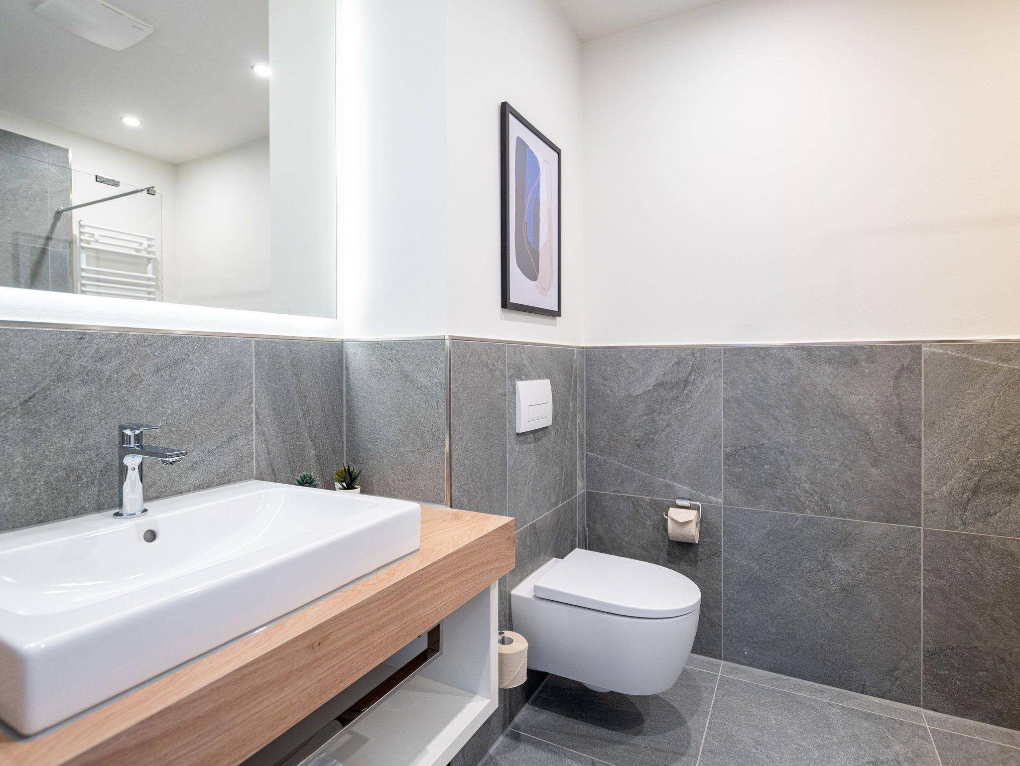 Die 2024 fertig gestellte Strandterrasse liegt direkt an der belebten Strandpromenade und bietet einen einzigartigen Ausblick auf die Grand Dame der historischen Seebrücken sowie die historische Konzertmuschel, einem beliebten Treffpunkt für Kunst und Kultur. Dahinter liegt die Ostsee ? ein Panorama, das zu den schönsten in den Kaiserbädern gehört. Es ist wie das Abtauchen in eine andere Zeit. In eine Zeit, in der man mit Stock, Sonnenschirm und Hut fürs „Sehen und gesehen werden“ über die Promenade schlenderte; aber auch in eine Zeit, in der ? damals wie heute ? Zeit einmal für eine kurze Weile keine Rolle spielt. Weil man angekommen ist im Loslassen, Entspannen und Genießen. Es ist dieser besondere Geruch nach Meeresluft und Freiheit, der in Erinnerung bleibt. Dazu die Bilder, die man mitnimmt. Von langen Strandspaziergängen, vom Lachen in fröhlich schäumenden Ostseewellen, von der Zeit in einem wunderschönen Urlaubsdomizil. Denn genau das ist die Strandterrasse mit ihren 56 modernen und exklusiven Ferienappartements direkt gegenüber der Ahlbecker Seebrücke. Die Ein-, Zwei- oder Dreizimmerwohnungen ? zwischen 40 und 70 Quadratmeter groß ? sind von einer Innenarchitektin gemeinsam mit unserem Erfahrungsschatz an Gästewünschen mit viel Liebe zum Detail und ganz individuell konzipiert worden. Entspannung und Wohlfühlen stehen an erster Stelle. Alles ist aufeinander abgestimmt und sorgt für eine gemütliche Atmosphäre. Wählen Sie zwischen einem Domizil in einem hellen, sandfarbenen Designkonzept oder einem Appartement mit anthrazitfarbenen Farbakzenten. Alle Appartements verfügen gleichermaßen über eine stilvolle und komfortable Einrichtung, die passgenau angefertigt worden ist, sowie über moderne Küchen und Bäder. Jedem Schlafzimmer ist ein eigenes Bad mit Dusche zugeordnet (außer App. B4.5). Die Appartements besitzen fast alle einen Balkon ? viele schauen sogar zur Ostsee hinaus. Die meisten Feriendomizile haben einen Elektrokamin und Infrarotsaunen. Im Erdgeschoss befindet sich ein separater Gemeinschaftsraum für Fahrräder. Außerdem besteht die Möglichkeit, im Gemeinschaftswaschraum 2 Waschmaschinen [&] Trockner zu nutzen. Ergänzt wird das Angebot durch eine Gemeinschaftssauna, die täglich von 11:00 bis 22:00 Uhr nutzbar ist. In der Tiefgarage (Einfahrtshöhe 2,03 Meter) steht für jede Wohnung 1 Pkw-Stellplatz zur Verfügung. Ist alles zur Zufriedenheit untergebracht? Dann kann der Urlaub ja beginnen. Und beim Blick vom Balkon über die Ostsee treffen sich zum Sonnenaufgang das Heute und das Damals. Gelassenheit legt sich beim Gang hinunter an den Strand auf die Seele. Jetzt darf die Zeit stehenbleiben.