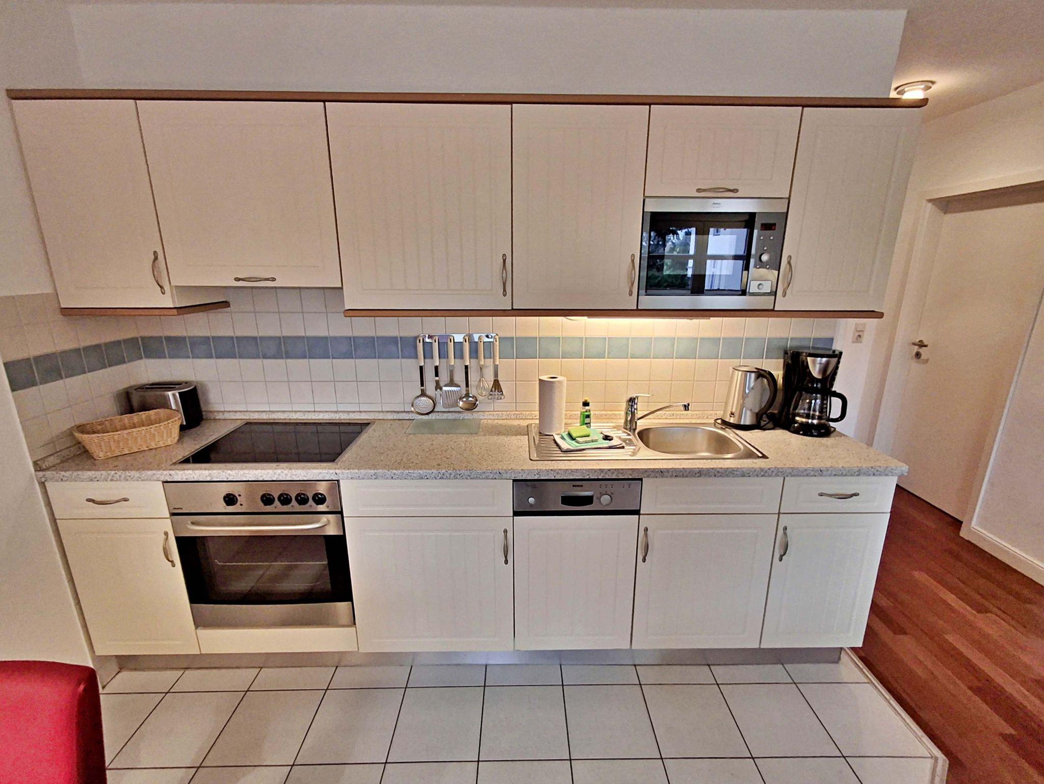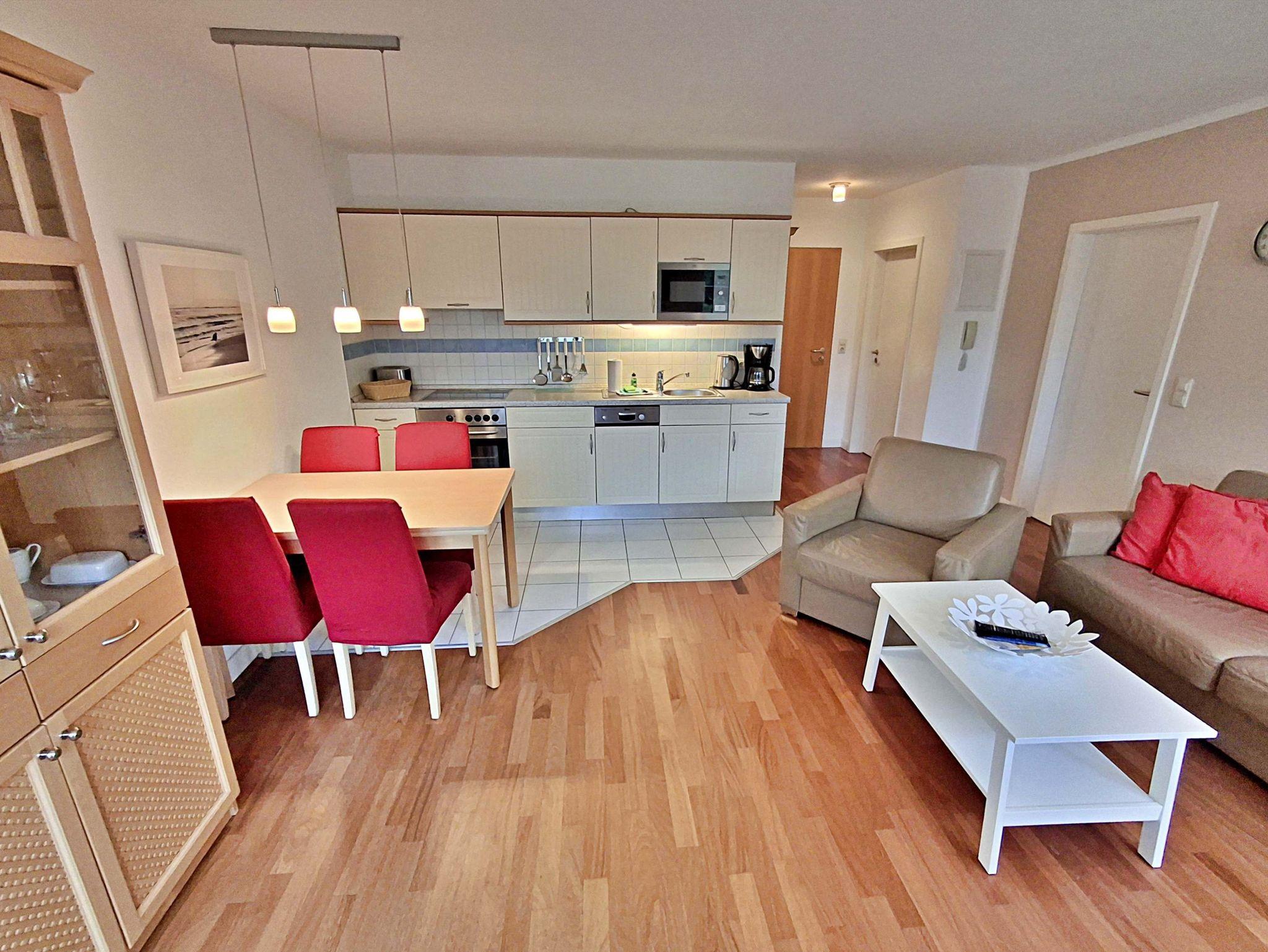 Die geräumige 3-Zimmer-Wohnung Strandkrabbe im 3. Obergeschoss mit Balkon für max. 5 Erwachsene und 1 Kleinkind bis 3 Jahre befindet im Nebengebäude der stilvoll restaurierten Villa Ahlbeck - nur wenige Schritte von der Promenade und dem Strand entfernt. Im Wohnbereich befinden sich neben der gemütlichen Couch auch ein Sessel sowie ein Esstisch mit 4 Stühlen. Das Highlight der Wohnung ist der großzügige Balkon in Süd-West-Ausrichtung, wo Sie bei schönem Wetter bereits morgens Ihren Kaffee genießen oder den Abend bei einem Glas Wein ausklingen lassen können. Die moderne Küchenzeile mit Ceranherd, Backofen, Geschirrspüler, Mikrowelle, Kaffeemaschine, Wasserkocher und Toaster lässt keine Wünsche offen. Für die Unterhaltung sorgen ein Flachbild-TV, Radio-CD-Player und kostenfreies W-LAN. Die beiden Schlafzimmer verfügen jeweils über ein Doppelbett und das Badezimmer hat DU/WC.