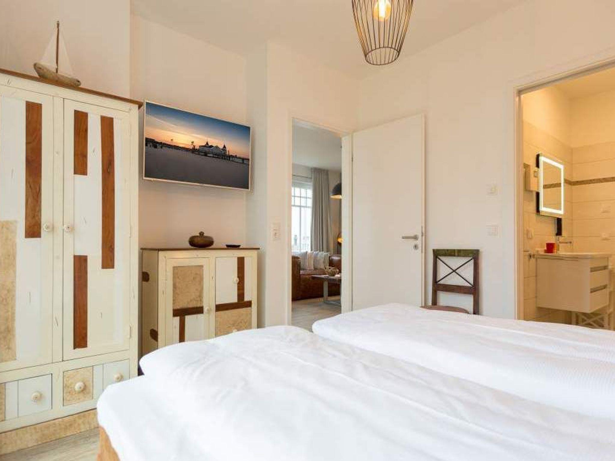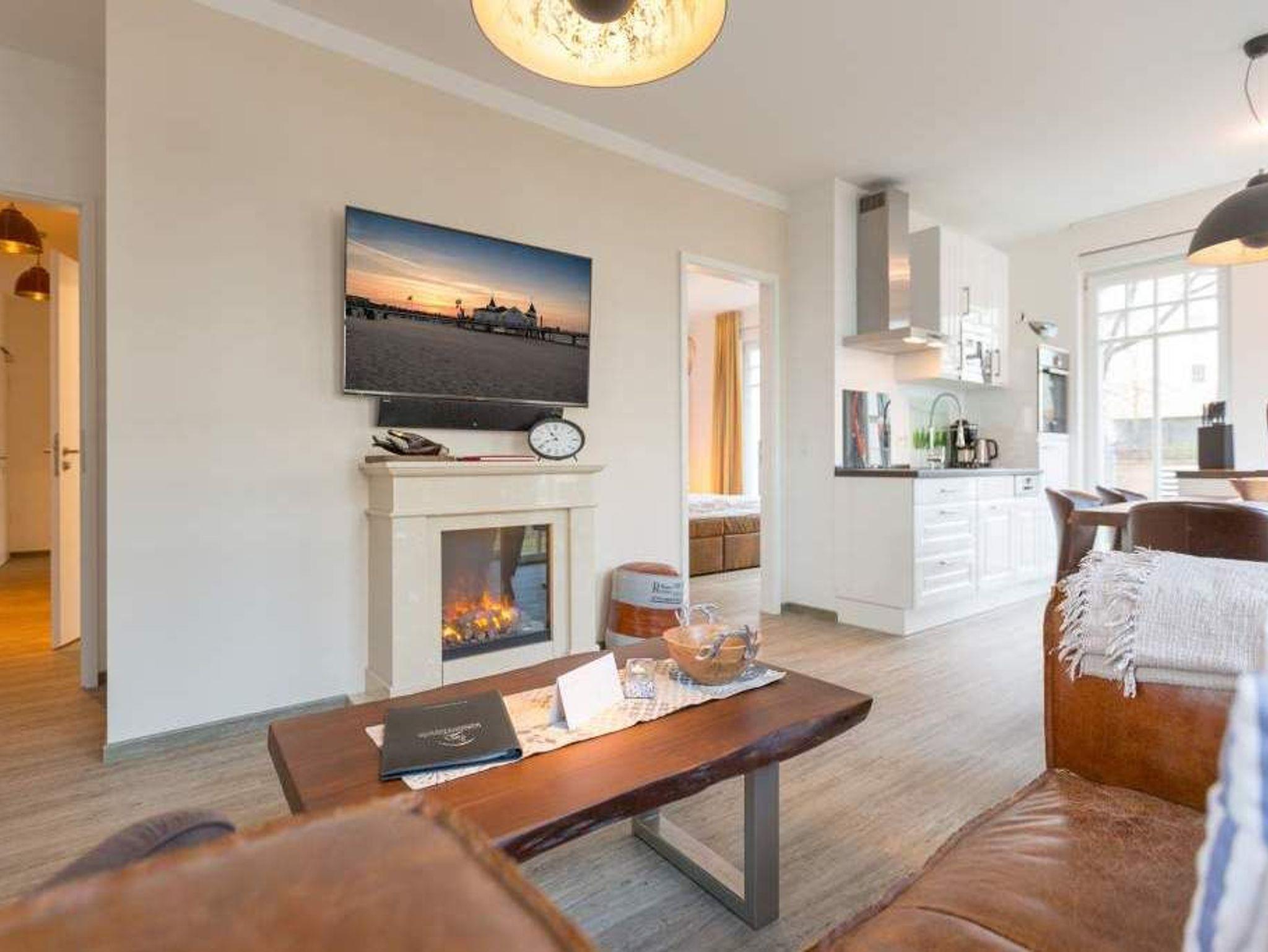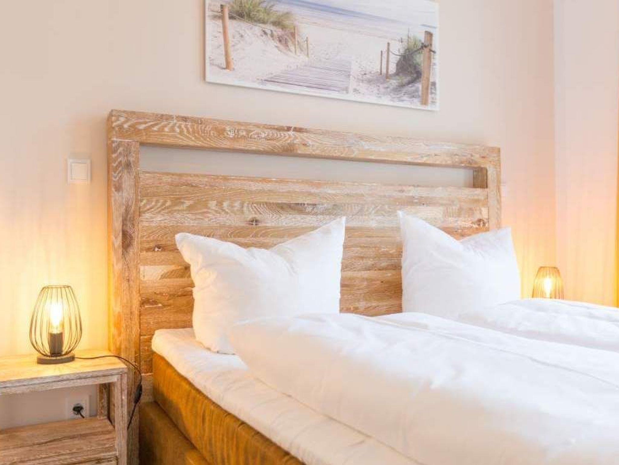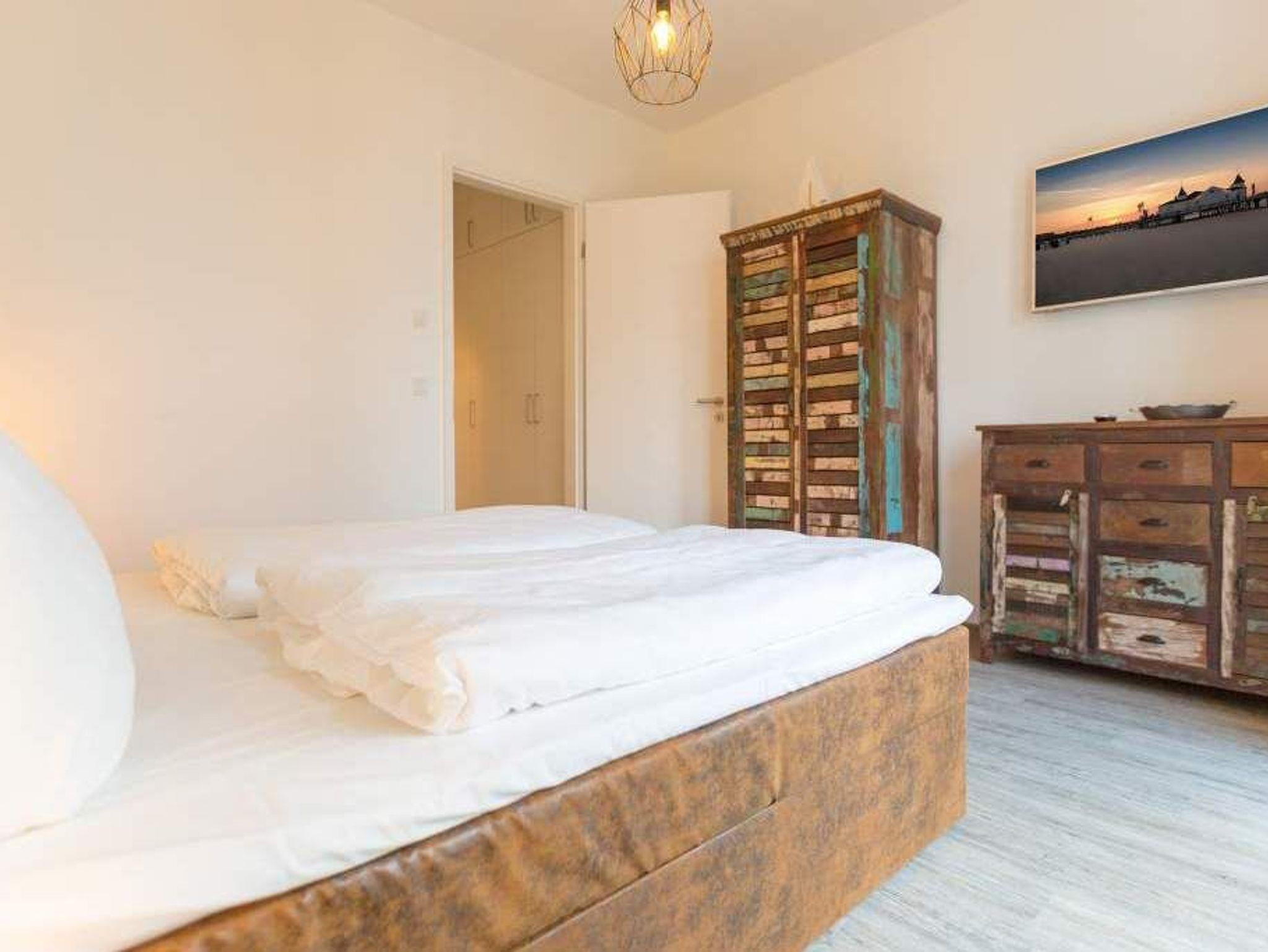 Zu spüren, wie jeder Muskel sich entspannt, wie die Seele zur Ruhe kommt und man tief durchatmet, während durch die großen, offenen Fenster die gerade einmal 20 Meter entfernte Ostsee ins Wohnzimmer rauscht ? angekommen in der Wohnung Nummer 4 im Erdgeschoss der Villa Westend sind Sie auch gleich im Urlaubshimmel. Denn die 84 Quadratmeter, die Platz für 4 Personen [&] 1 Kleinkind ( bis 2 Jahre im Kinderreisebett) bietet, ist anders, ist extravagant, stylisch und doch unglaublich einladend, behaglich und komfortabel. Hier treffen shabby Kolonialstil auf modernes Design, exotische Massivholzmöbel auf Art Deco und Industrial Chic. Ein harmonischer Stilmix, der diesem Urlaubsappartement ein ganz besonderes Flair verleiht. Die großen Ohrensessel oder die Ledercouch im luftigen und geräumigen Wohn-Esszimmer eignen sich bestens zum gemütlichen Relaxen. Ein Flat-TV mit integrierter Soundbar sorgt für Unterhaltung. Der Elektrokamin im Wohnzimmer bringt Kuschelstimmung auf Knopfdruck. Ein wunderschöner Echtholztisch ist das Verbindungsglied zur modernen und offenen Küche. Mit den hochwertigen Markengeräten macht das Kochen und Dinieren so richtig Spaß. Oder setzen Sie sich auf die Terrasse. Genießen Sie von hier aus die Sonne. Denn Dank der Süd-West-Ausrichtung können Sie hier zusätzlich zum wunderbaren Blick in den Garten auch die letzten Sonnenstrahlen des Tages noch auskosten. Auch wenn man im Urlaub möglichst keine Sekunde verschlafen möchte, verschaffen die beiden großen Doppelboxspringbetten (jeweils 1,80 m x 2,00 m) in den beiden Schlafzimmern einen erholsamen Schlaf. Viel Ablagemöglichkeit bieten hier die großen Vintage-Schränke. In jedem Schlafzimmer gibt es einen Flat-TV. Die Nichtraucher-Wohnung verfügt über zwei Bäder mit Dusche, Waschtisch und WC. Ein Highlight ist im Masterbad eine finnische Sauna, die für das ganz exklusive und eigene Spa-Gefühl sorgt. Handtücher liegen schon für Sie bereit und die Betten sind, wenn Sie ankommen, frisch bezogen. In der Tiefgarage steht für Sie ein Pkw-Stellplatz Nr. 25 zur Verfügung. WLAN gibt es kostenfrei.
