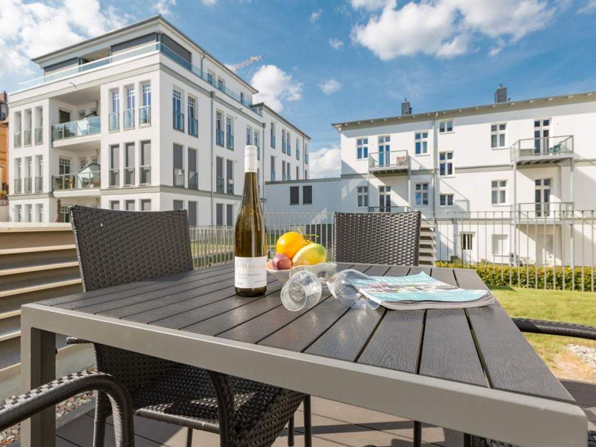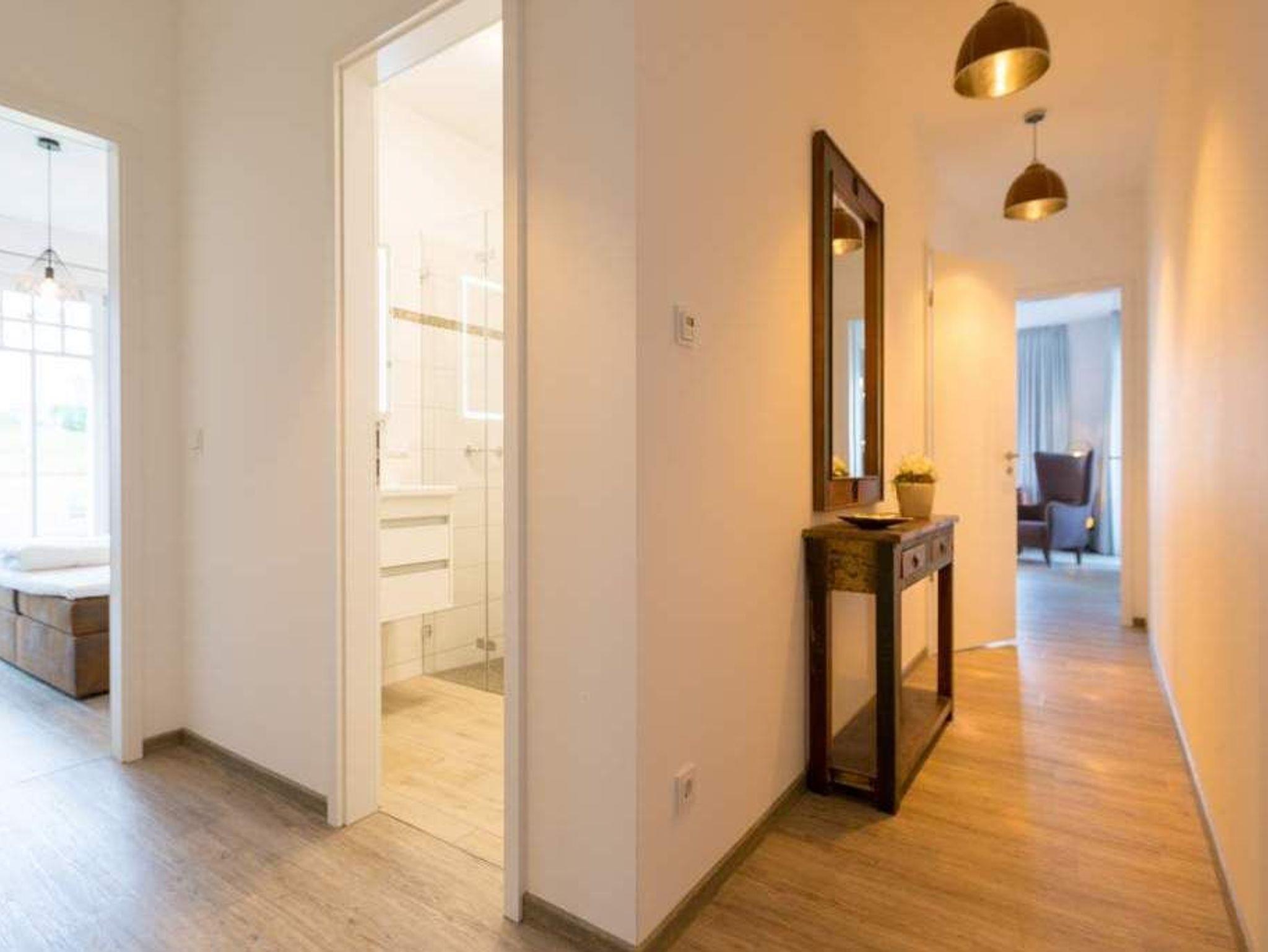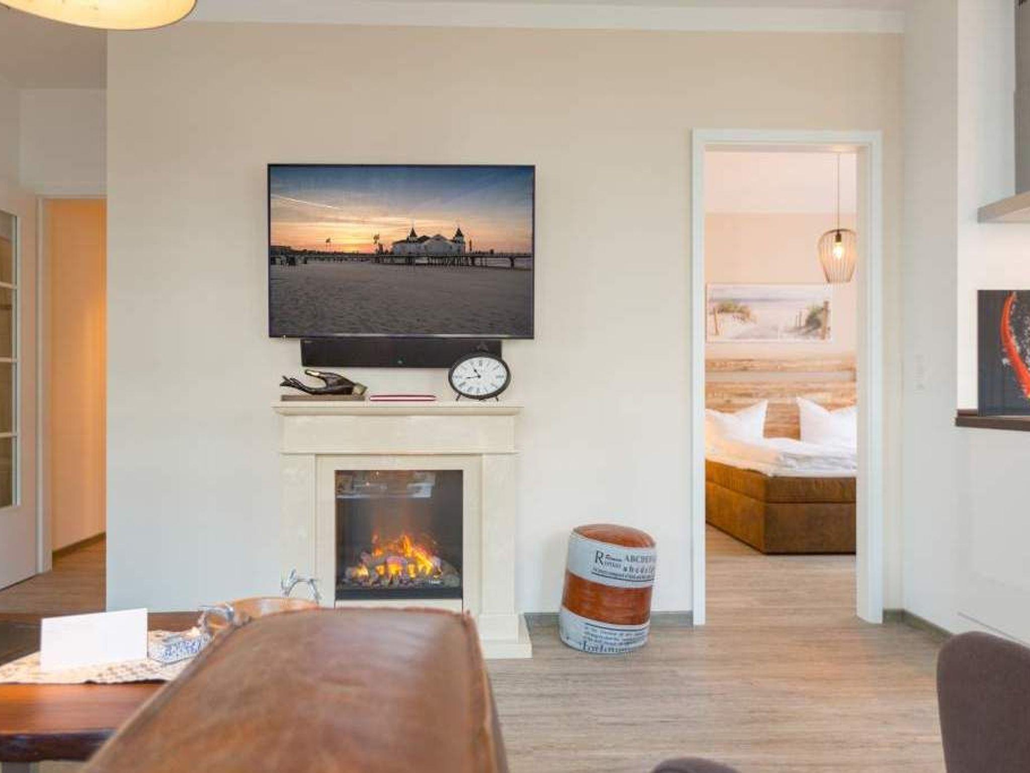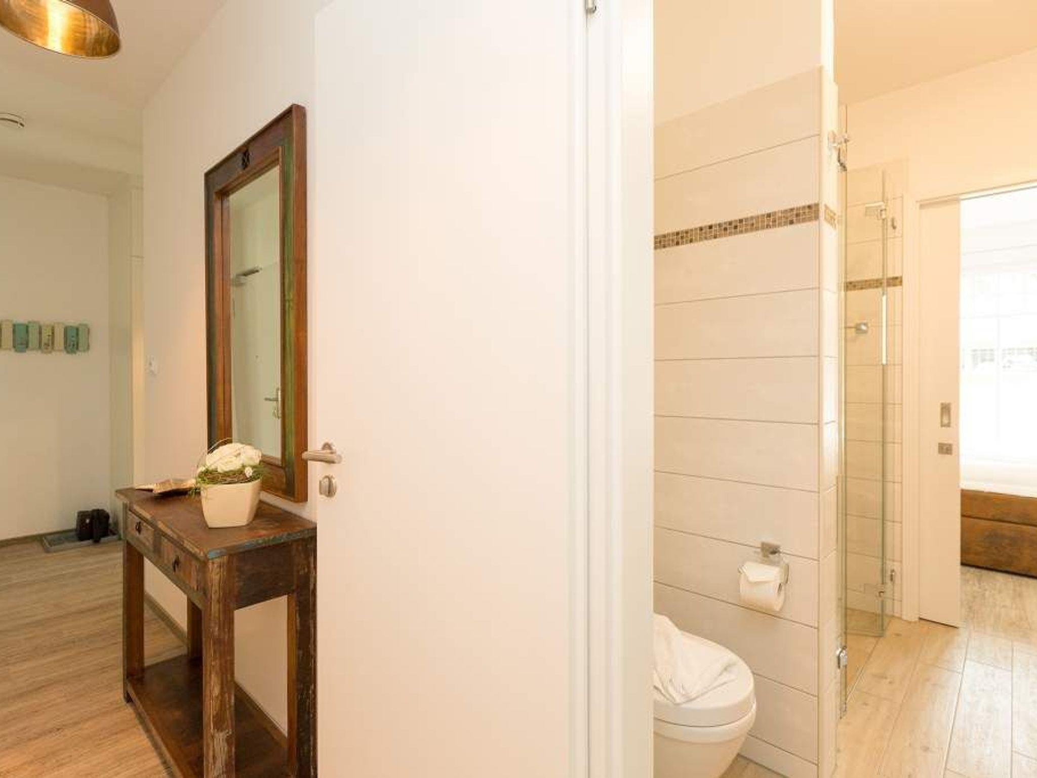 Zu spüren, wie jeder Muskel sich entspannt, wie die Seele zur Ruhe kommt und man tief durchatmet, während durch die großen, offenen Fenster die gerade einmal 20 Meter entfernte Ostsee ins Wohnzimmer rauscht ? angekommen in der Wohnung Nummer 4 im Erdgeschoss der Villa Westend sind Sie auch gleich im Urlaubshimmel. Denn die 84 Quadratmeter, die Platz für 4 Personen [&] 1 Kleinkind ( bis 2 Jahre im Kinderreisebett) bietet, ist anders, ist extravagant, stylisch und doch unglaublich einladend, behaglich und komfortabel. Hier treffen shabby Kolonialstil auf modernes Design, exotische Massivholzmöbel auf Art Deco und Industrial Chic. Ein harmonischer Stilmix, der diesem Urlaubsappartement ein ganz besonderes Flair verleiht. Die großen Ohrensessel oder die Ledercouch im luftigen und geräumigen Wohn-Esszimmer eignen sich bestens zum gemütlichen Relaxen. Ein Flat-TV mit integrierter Soundbar sorgt für Unterhaltung. Der Elektrokamin im Wohnzimmer bringt Kuschelstimmung auf Knopfdruck. Ein wunderschöner Echtholztisch ist das Verbindungsglied zur modernen und offenen Küche. Mit den hochwertigen Markengeräten macht das Kochen und Dinieren so richtig Spaß. Oder setzen Sie sich auf die Terrasse. Genießen Sie von hier aus die Sonne. Denn Dank der Süd-West-Ausrichtung können Sie hier zusätzlich zum wunderbaren Blick in den Garten auch die letzten Sonnenstrahlen des Tages noch auskosten. Auch wenn man im Urlaub möglichst keine Sekunde verschlafen möchte, verschaffen die beiden großen Doppelboxspringbetten (jeweils 1,80 m x 2,00 m) in den beiden Schlafzimmern einen erholsamen Schlaf. Viel Ablagemöglichkeit bieten hier die großen Vintage-Schränke. In jedem Schlafzimmer gibt es einen Flat-TV. Die Nichtraucher-Wohnung verfügt über zwei Bäder mit Dusche, Waschtisch und WC. Ein Highlight ist im Masterbad eine finnische Sauna, die für das ganz exklusive und eigene Spa-Gefühl sorgt. Handtücher liegen schon für Sie bereit und die Betten sind, wenn Sie ankommen, frisch bezogen. In der Tiefgarage steht für Sie ein Pkw-Stellplatz Nr. 25 zur Verfügung. WLAN gibt es kostenfrei.