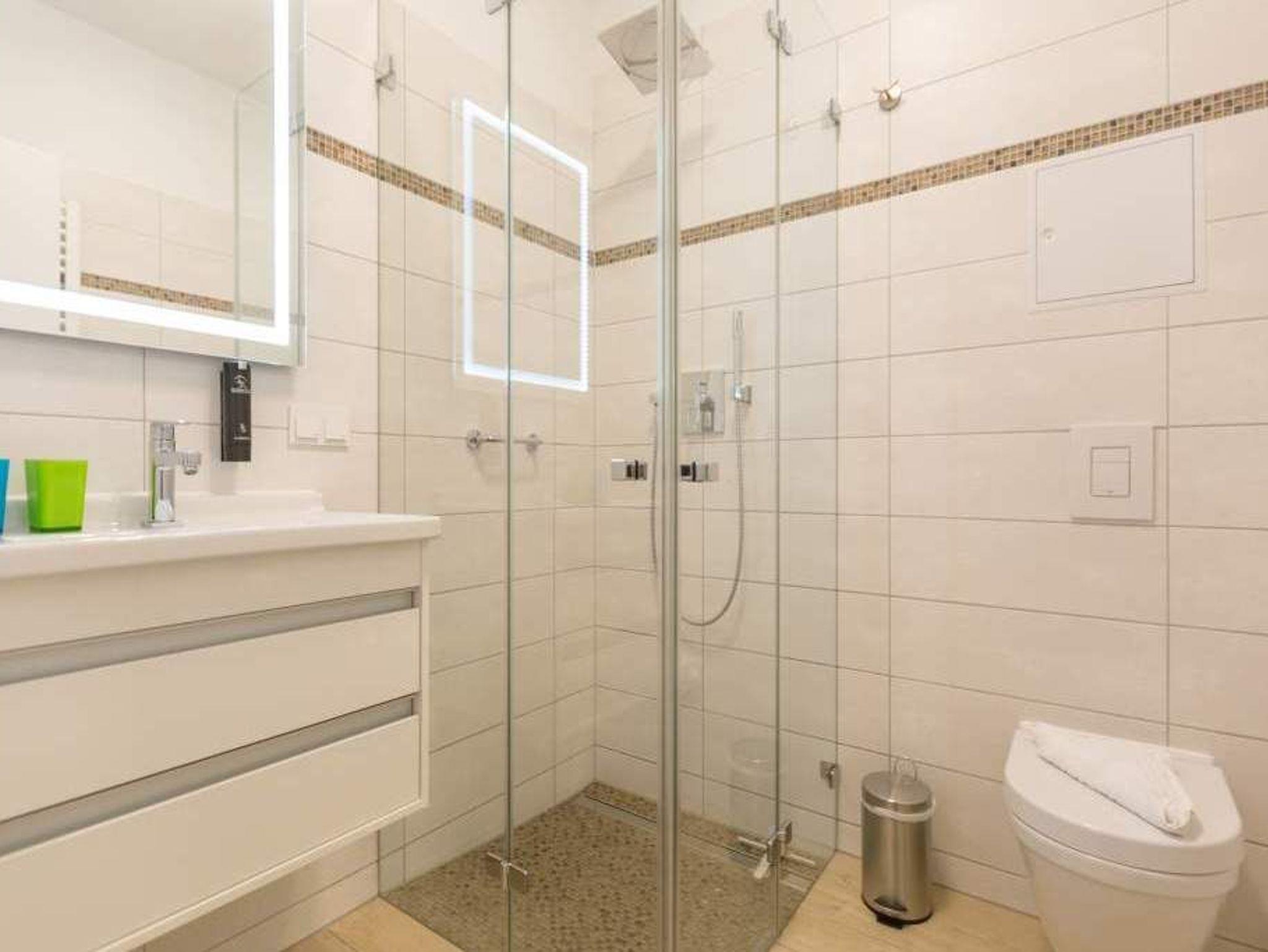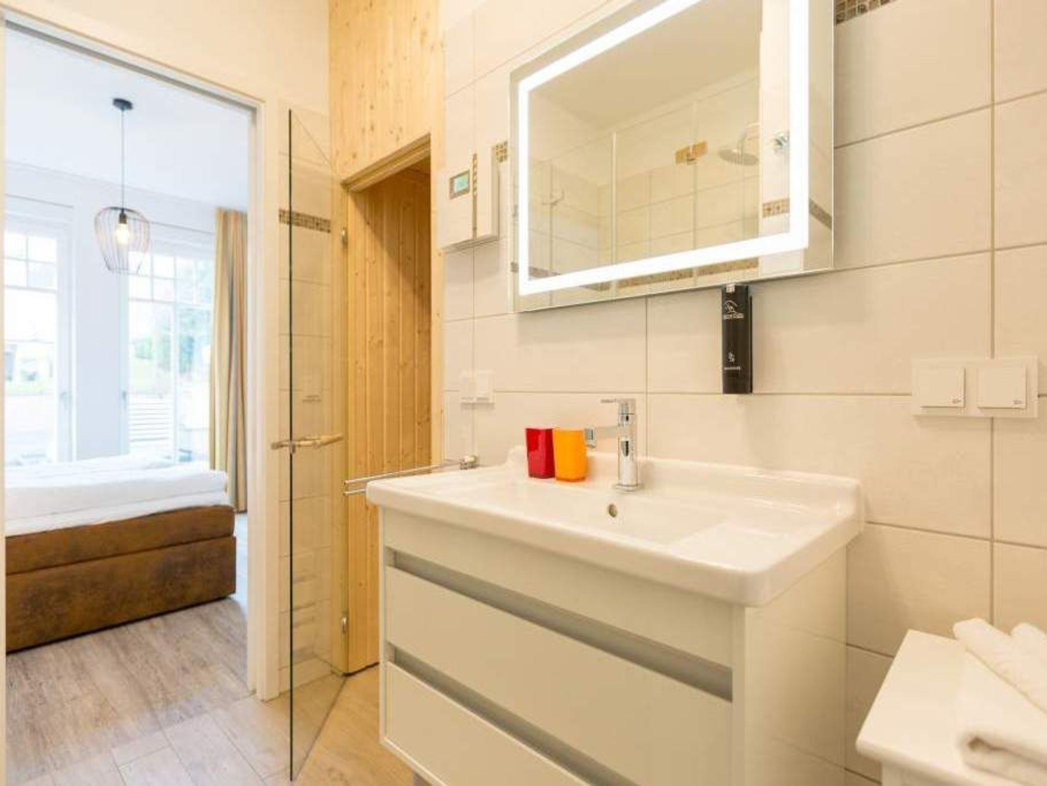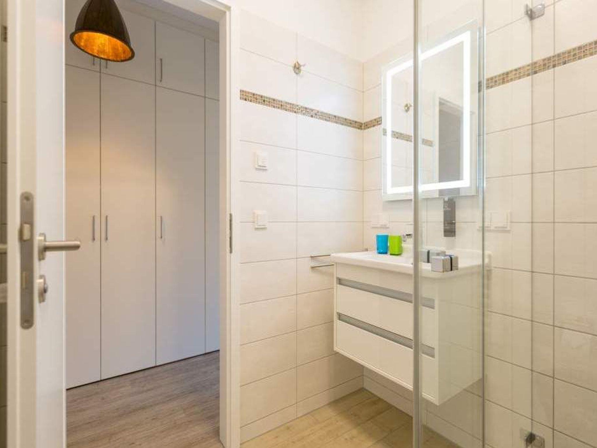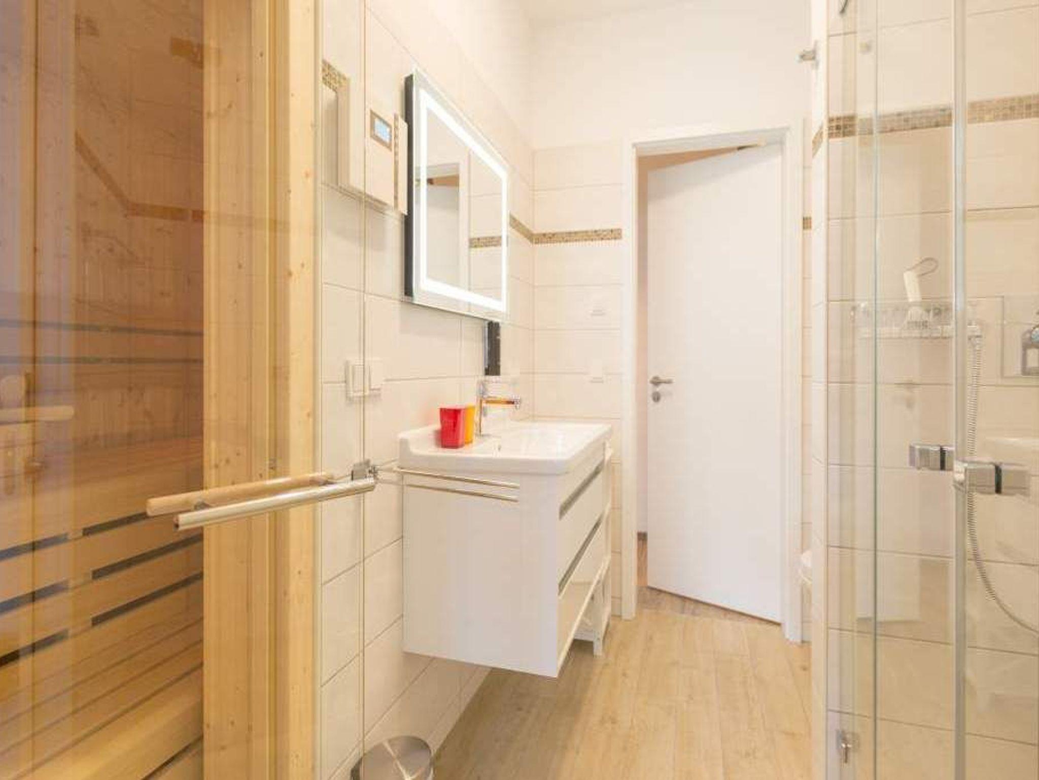 Zu spüren, wie jeder Muskel sich entspannt, wie die Seele zur Ruhe kommt und man tief durchatmet, während durch die großen, offenen Fenster die gerade einmal 20 Meter entfernte Ostsee ins Wohnzimmer rauscht ? angekommen in der Wohnung Nummer 4 im Erdgeschoss der Villa Westend sind Sie auch gleich im Urlaubshimmel. Denn die 84 Quadratmeter, die Platz für 4 Personen [&] 1 Kleinkind ( bis 2 Jahre im Kinderreisebett) bietet, ist anders, ist extravagant, stylisch und doch unglaublich einladend, behaglich und komfortabel. Hier treffen shabby Kolonialstil auf modernes Design, exotische Massivholzmöbel auf Art Deco und Industrial Chic. Ein harmonischer Stilmix, der diesem Urlaubsappartement ein ganz besonderes Flair verleiht. Die großen Ohrensessel oder die Ledercouch im luftigen und geräumigen Wohn-Esszimmer eignen sich bestens zum gemütlichen Relaxen. Ein Flat-TV mit integrierter Soundbar sorgt für Unterhaltung. Der Elektrokamin im Wohnzimmer bringt Kuschelstimmung auf Knopfdruck. Ein wunderschöner Echtholztisch ist das Verbindungsglied zur modernen und offenen Küche. Mit den hochwertigen Markengeräten macht das Kochen und Dinieren so richtig Spaß. Oder setzen Sie sich auf die Terrasse. Genießen Sie von hier aus die Sonne. Denn Dank der Süd-West-Ausrichtung können Sie hier zusätzlich zum wunderbaren Blick in den Garten auch die letzten Sonnenstrahlen des Tages noch auskosten. Auch wenn man im Urlaub möglichst keine Sekunde verschlafen möchte, verschaffen die beiden großen Doppelboxspringbetten (jeweils 1,80 m x 2,00 m) in den beiden Schlafzimmern einen erholsamen Schlaf. Viel Ablagemöglichkeit bieten hier die großen Vintage-Schränke. In jedem Schlafzimmer gibt es einen Flat-TV. Die Nichtraucher-Wohnung verfügt über zwei Bäder mit Dusche, Waschtisch und WC. Ein Highlight ist im Masterbad eine finnische Sauna, die für das ganz exklusive und eigene Spa-Gefühl sorgt. Handtücher liegen schon für Sie bereit und die Betten sind, wenn Sie ankommen, frisch bezogen. In der Tiefgarage steht für Sie ein Pkw-Stellplatz Nr. 25 zur Verfügung. WLAN gibt es kostenfrei.