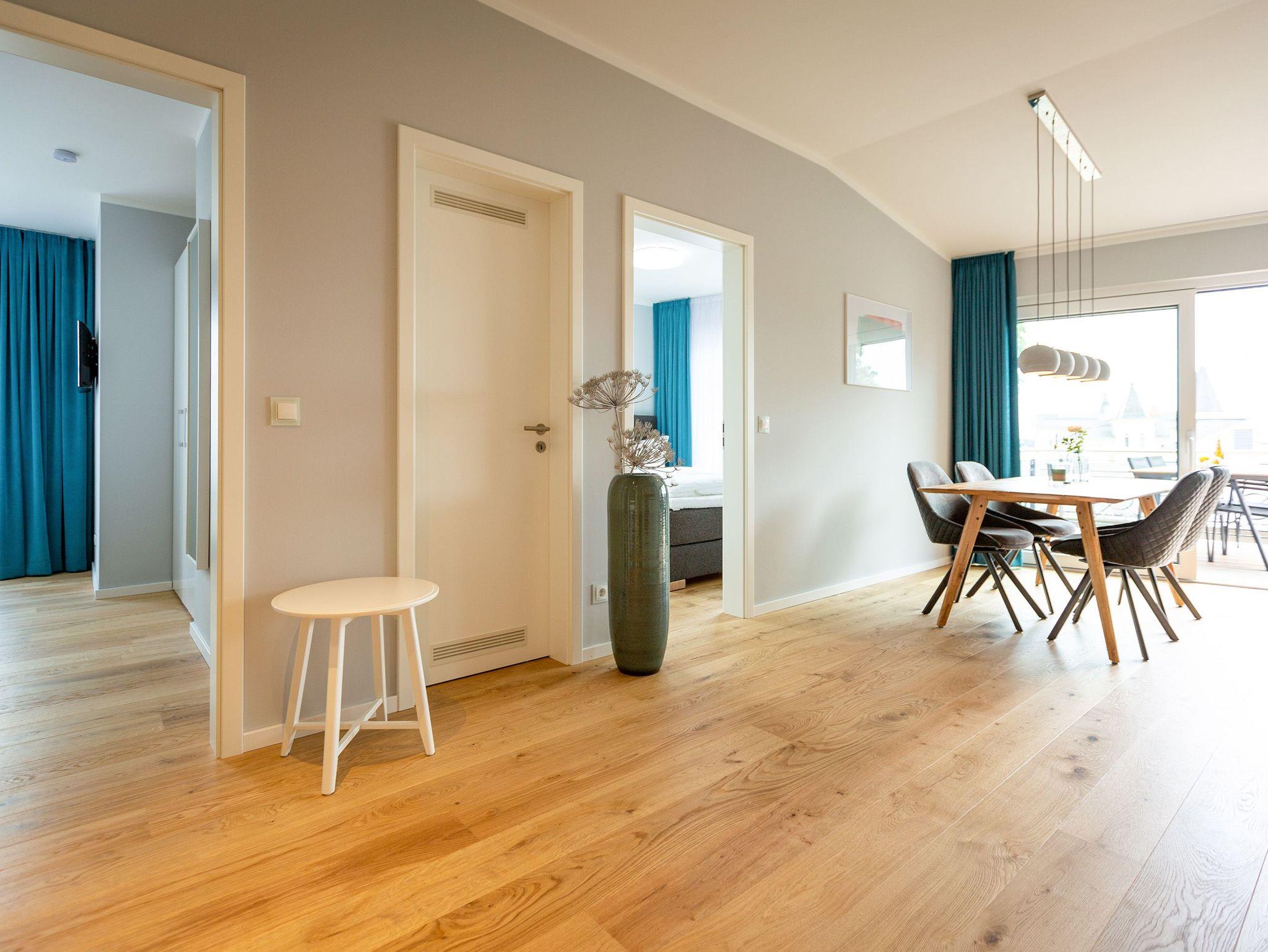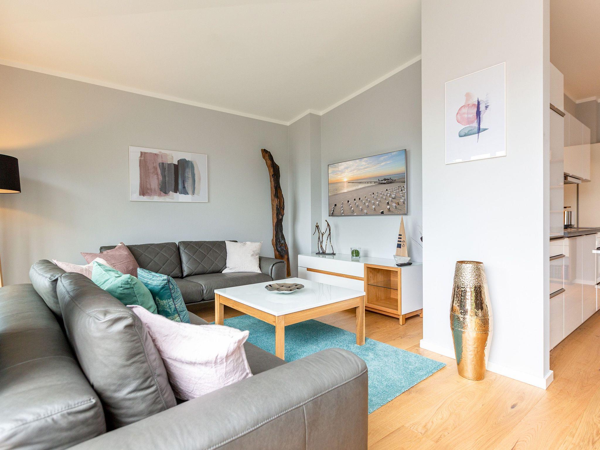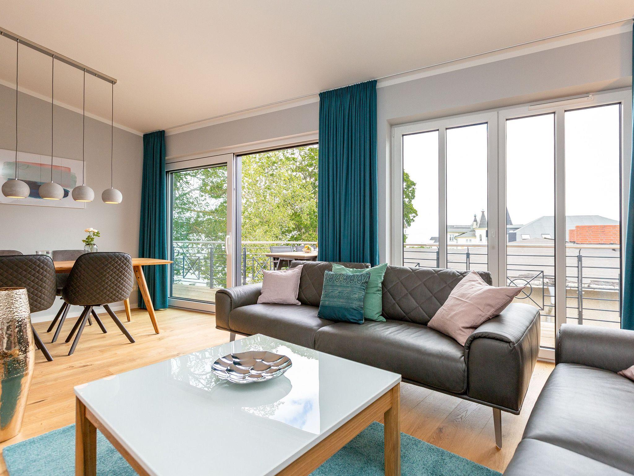 Ankommen, abschalten und neue Energie tanken. Im neu gebauten Quartier 7 im Herzen des Kaiserbades Ahlbeck fällt Ihnen das sicher ganz leicht. Moderne und stilvoll eingerichtete Appartements laden zum Wohlfühlen und Entspannen ein. In den ersten und zweiten Stock gelangen Sie via Fahrstuhl. Schöne, alte Villen umgeben die Anlage, verleihen dem Wohngefühl ein besonderes Flair. Die Zwei- und Drei-Zimmer-Appartements sind geräumig, offen und hell und teilweise mit einer Sauna oder einem Kamin ausgestattet. Wohnkomfort vom Feinsten lädt zum Faulenzen ein. Genießen Sie die frische Ostseeluft auf dem Balkon oder der Terrasse, denn jede Wohnung besitzt einen kleinen Außenbereich. An stürmischen Tagen können Sie von hier aus sogar die Wellen rauschen hören. Das beste Rezept für einen erholsamen Schlaf. Offene Wohnbereiche und voll ausgestattete Küchen sorgen für alle Annehmlichkeiten. Das Haus bietet eine Tiefgarage (Einfahrthöhe ca. 2,03 m). Einige Wohnungen verfügen über einen Kellerraum, der als Unterstellmöglichkeit für Fahrräder genutzt werden kann. Das WLAN-Netz ist für alle kostenfrei. Willkommen also in Ihrem kleinen Urlaubsparadies.