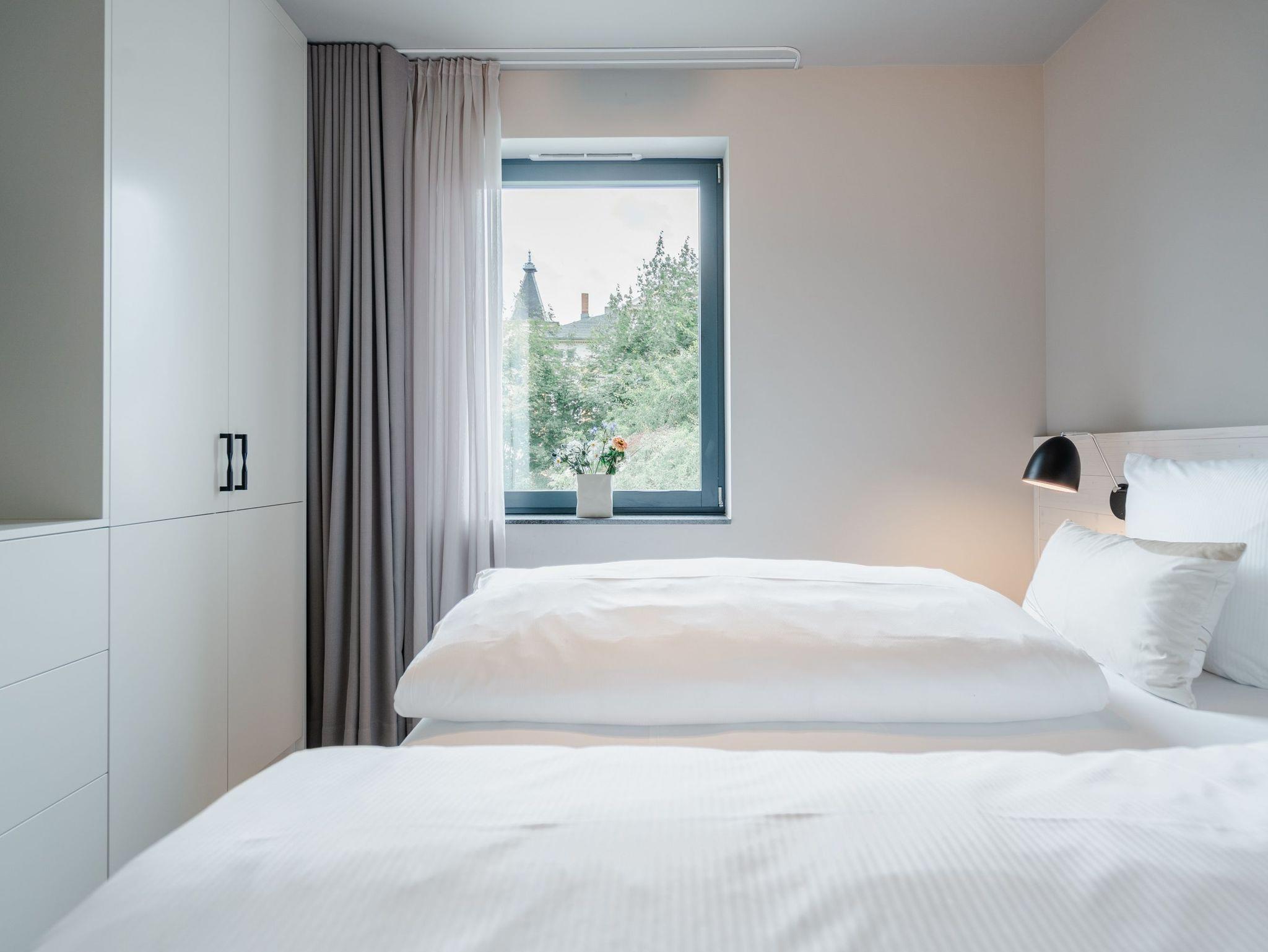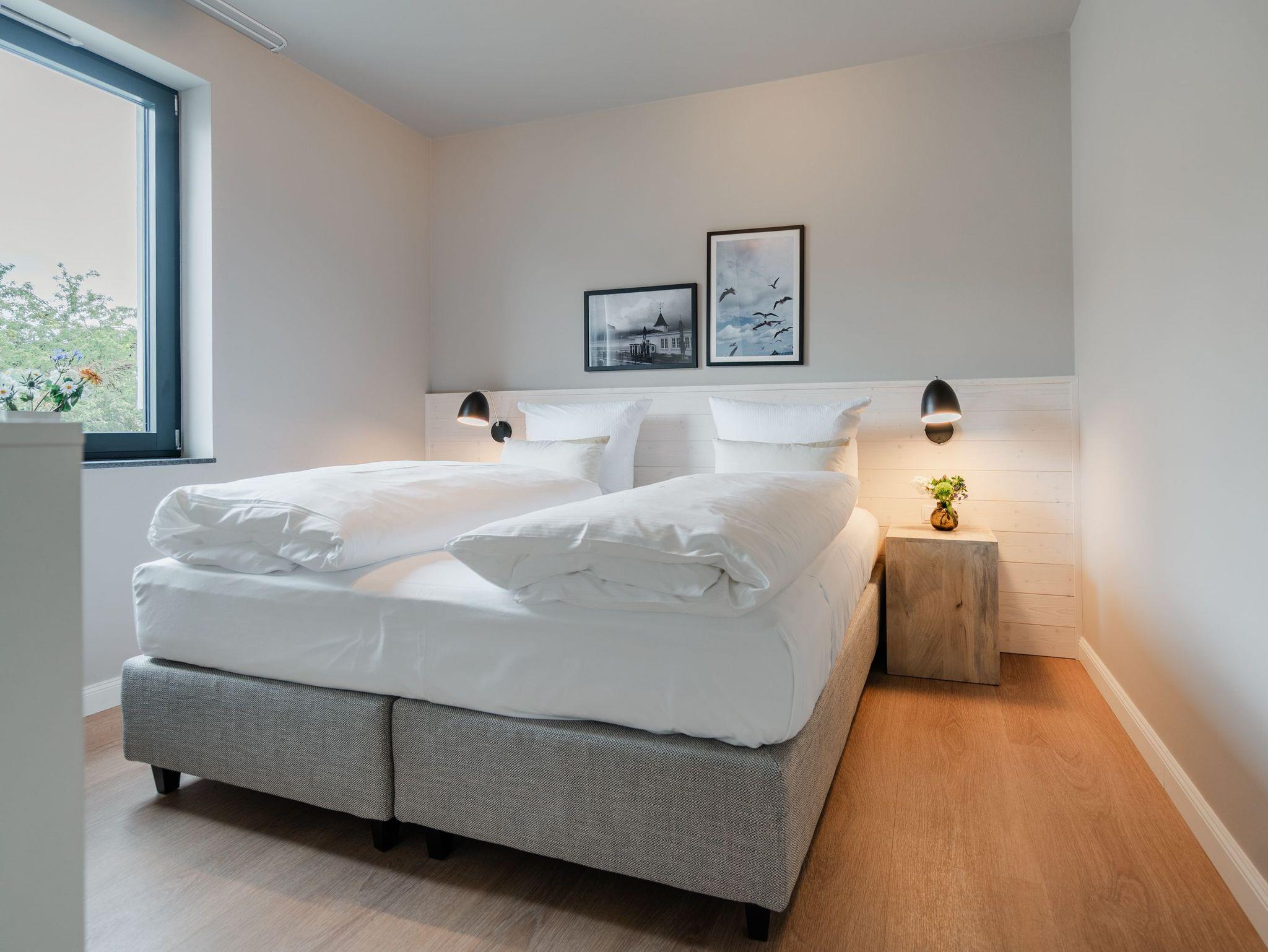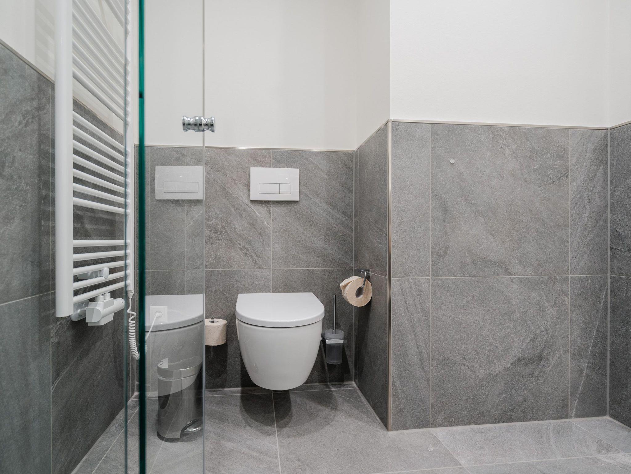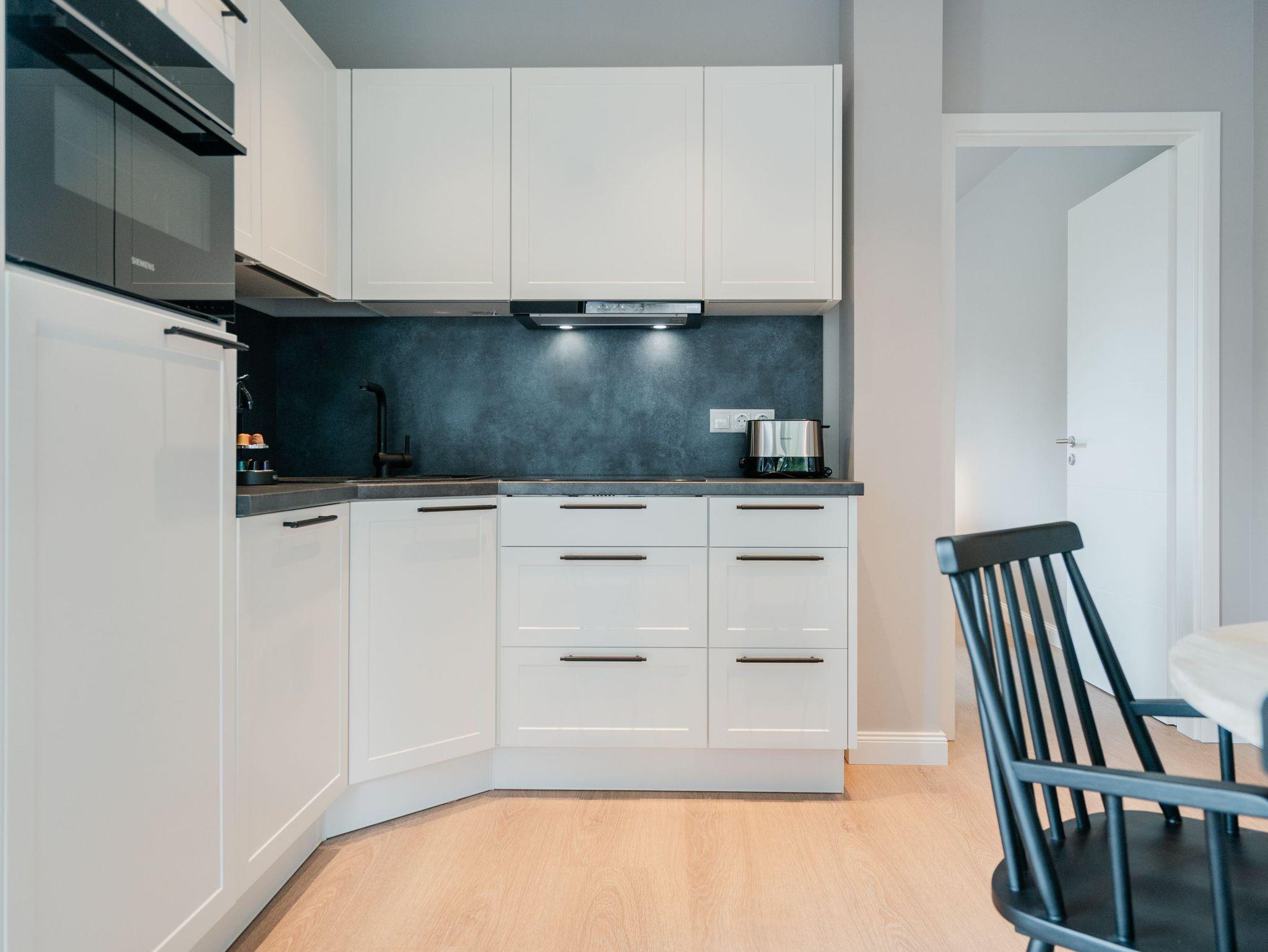 Zum Abschalten, Runterkommen und Entspannen ist das 3-Raum-Appartement B 1.7 im Haus B der Strandterrasse bestens geeignet. Denn die 58 Quadratmeter in der 1. Etage sind ein kuscheliges Traumdomizil, um mit der Familie oder mit Freunden eine erholsame Auszeit direkt an der Ostsee zu genießen. Bis zu 4 Personen bietet dieses moderne und komfortable Wohlfühlreich Platz. Der offene Wohn- und Essbereich ist mit einer hochwertigen Küchenzeile ausgestattet, in der Sie alle Utensilien vorfinden, die Sie für ein rundum gelungenes Essvergnügen benötigen. Der Backofen und der 4-Platten-Induktionsherd machen aus Hobbyköchen wahre Gourmets. Weitere Markengeräte wie ein Geschirrspüler, ein Toaster, ein Wasserkocher oder eine Nespresso-Kapselmaschine erleichtern die Küchenarbeit ungemein. Der gemütliche Essplatz lädt zum Genießen und zu gemeinsamen Mußestunden ein, während eine stylische Sitzgruppe für Entspannung und ein großer Flat-TV (50 Zoll) für Unterhaltung sorgen. Ein Elektrokamin (ohne Wärmeabgabe) zaubert eine gemütliche Atmosphäre. Vom Wohnzimmer aus haben Sie Zutritt zum West-Balkon. Der Blick auf die alten Bädervillen hat Charme. Nehmen Sie auf einem der beiden Stühle Platz. Können Sie das Rauschen der nur knapp 80 Meter entfernten Ostsee hören? Die Wohnung verfügt über zwei Schlafzimmer. Beide sind mit einem bequemen Boxspringdoppelbett (1,80m x 2,00m), einem Kleiderschrank, einer Kommode und einem Flat-TV (43 Zoll) ausgestattet. Zu jedem Zimmer gehört jeweils ein Duschbad mit Waschtisch und WC. So hat jeder seine Privatsphäre. In der Tiefgarage steht Ihnen ein PKW-Stellplatz zur Verfügung. Kommen Sie in aller Ruhe an. In dieser stilvollen Ferienwohnung erwartet Sie während Ihres Aufenthaltes viel Flair und viel Meer.