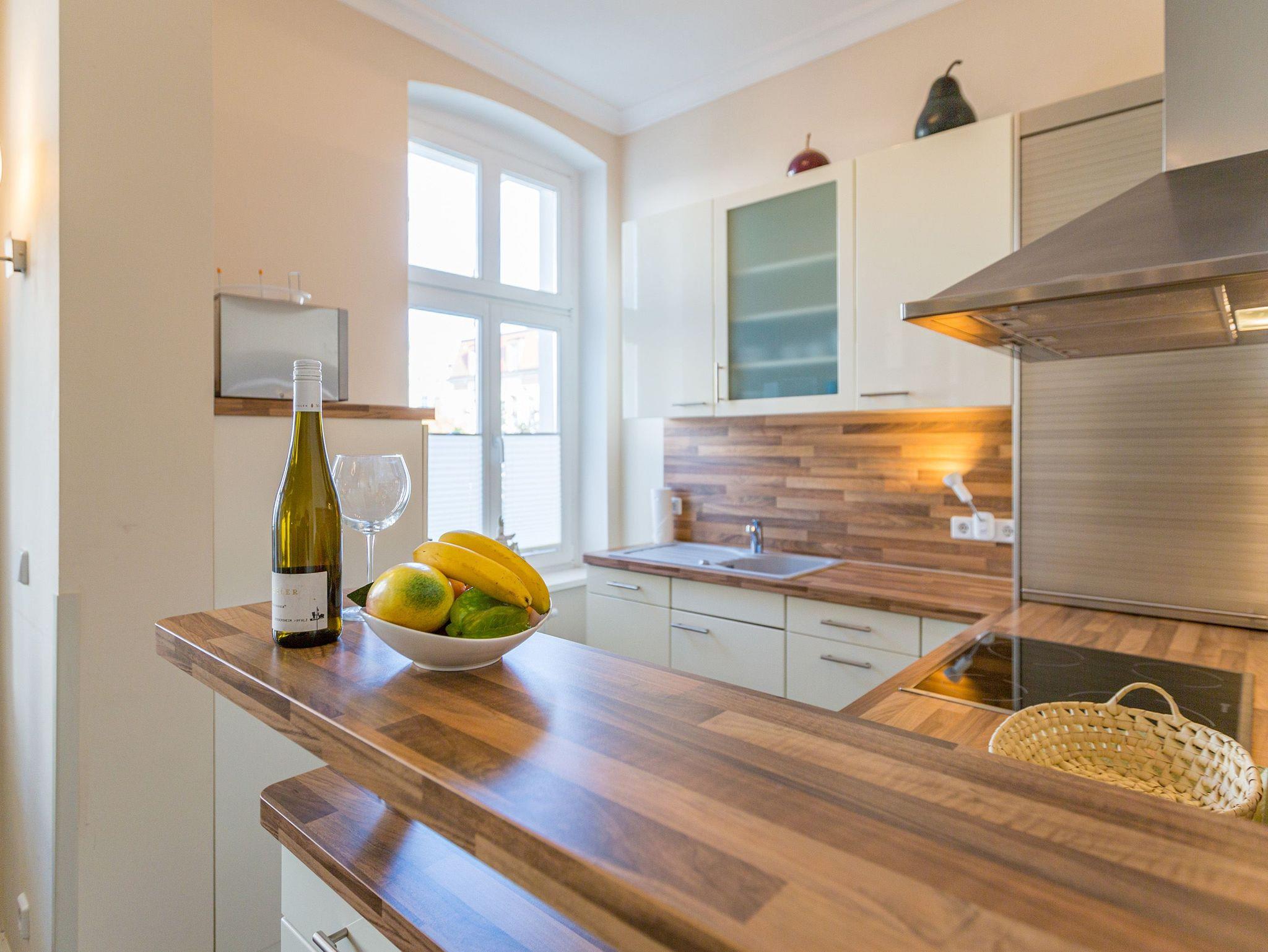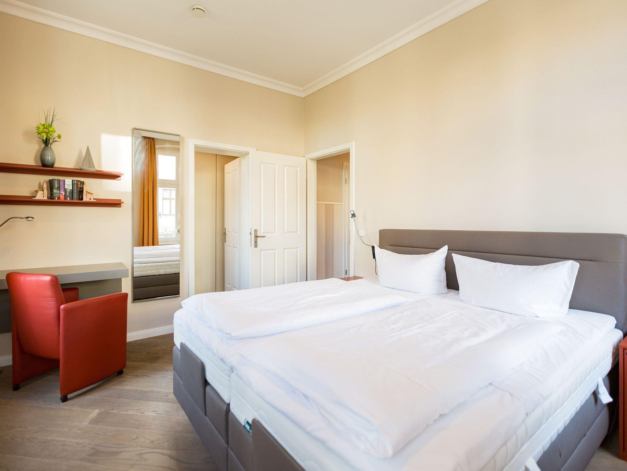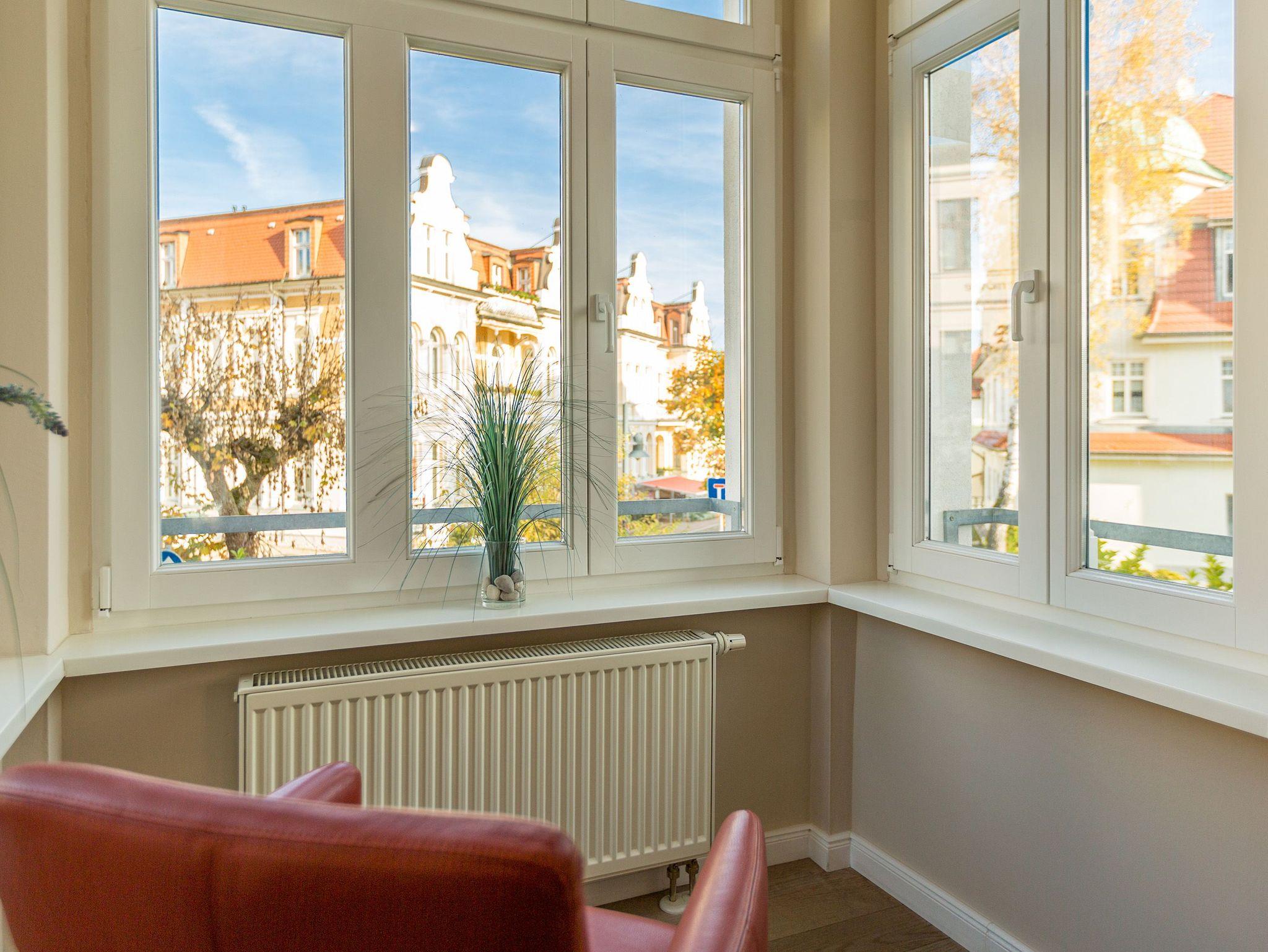 Liebevoll saniert, erstrahlt das Schloss am Meer im neuen alten Glanz. Wunderschön restauriert und exklusiv ausgestattet, bieten Ihnen die Wohnungen ein fantastisches, strandnahes Urlaubsdomizil (nur 80 m) im Seebad Ahlbeck. Stilvoll romantische Bäderarchitektur gepaart mit modernem Komfort. Diese elegante Villa verfügt über einen Fahrstuhl und teilweisen Meerblick, die einzelnen Ferienwohnungen sind mit Balkonen oder Terrassen ausgestattet. Als besonderes Highlight finden Sie in jedem Appartement einen Kaminofen. Im Schwesternhaus, der Residenz Bismarck befindet sich ein Saunabereich (gegen Gebühr). Jede Wohnung verfügt über einen Stellplatz in der Tiefgarage für Fahrzeuge bis 1,90 m Höhe ( Stellplätze relativ eng, eingeschränkte Wendemöglichkeit). Für Ihren Komfort steht die Erstausstattung Wäsche für Sie bereit. Bitte beachten Sie, dass Kaminholz in der Wohnung nicht vorhanden ist. Das WLAN-Netz ist kostenfrei nutzbar.