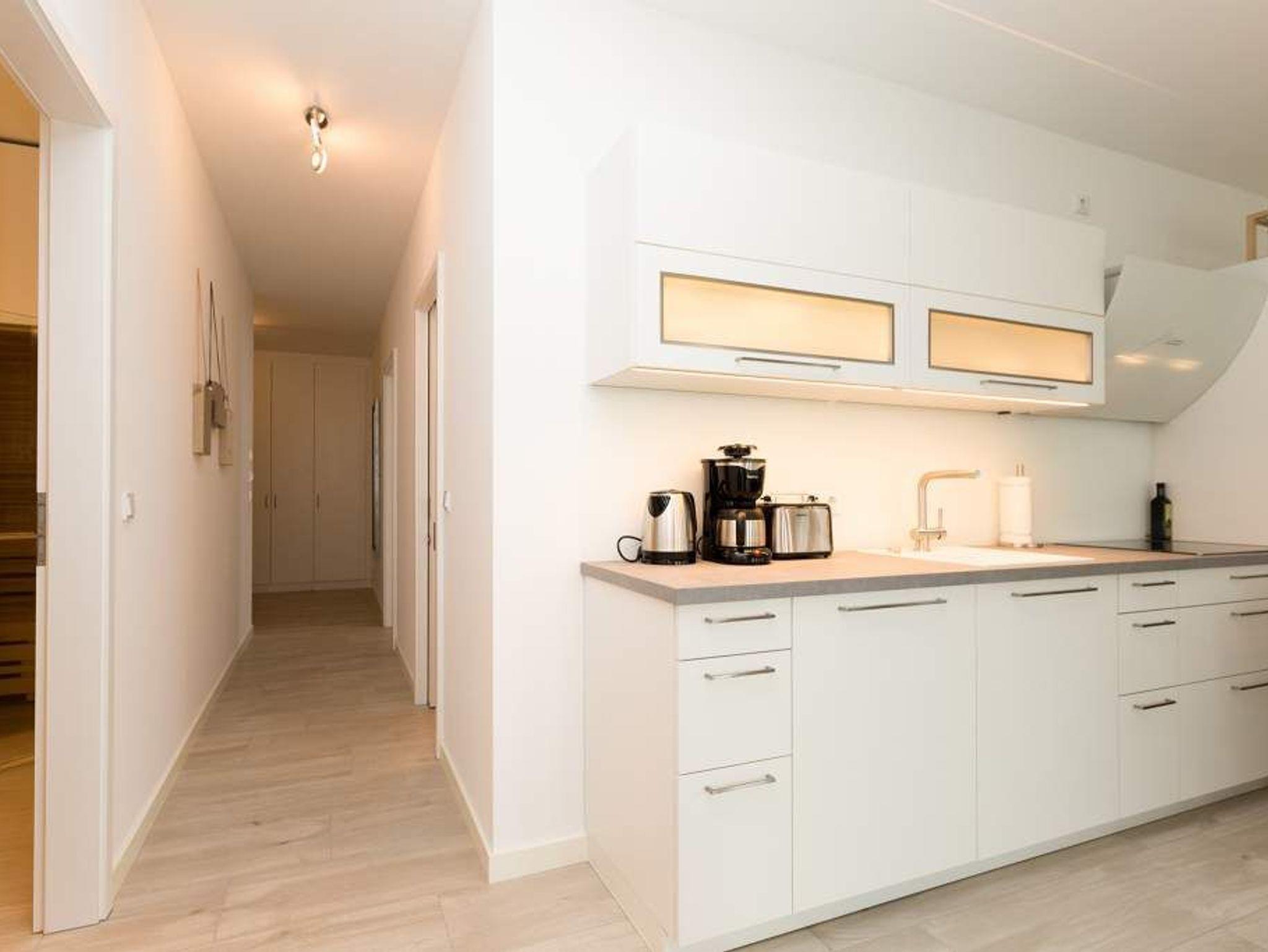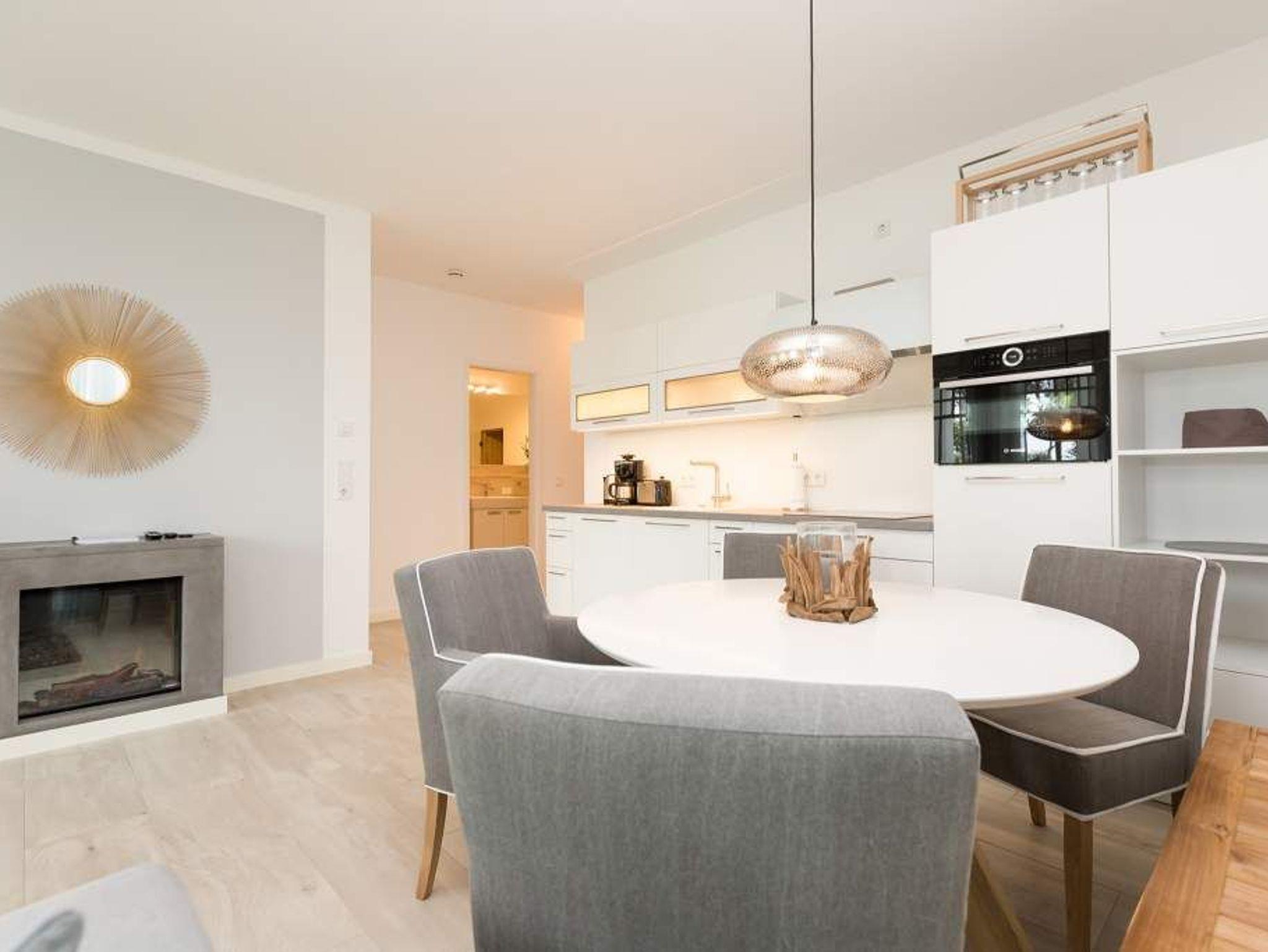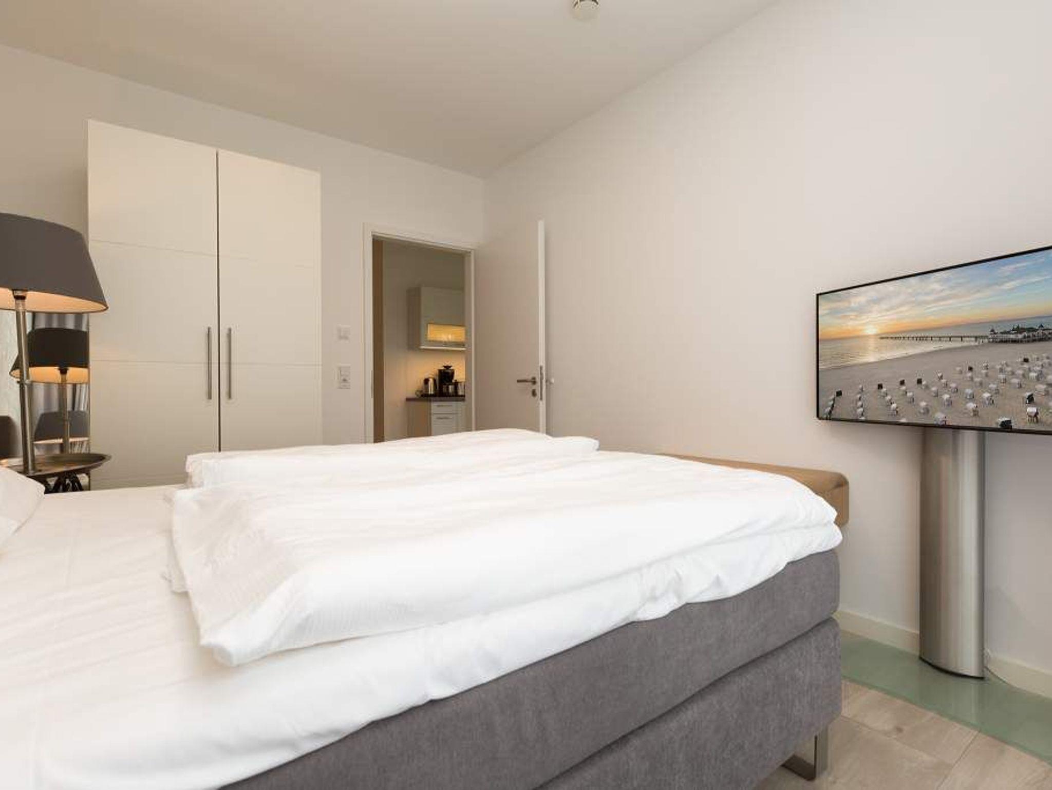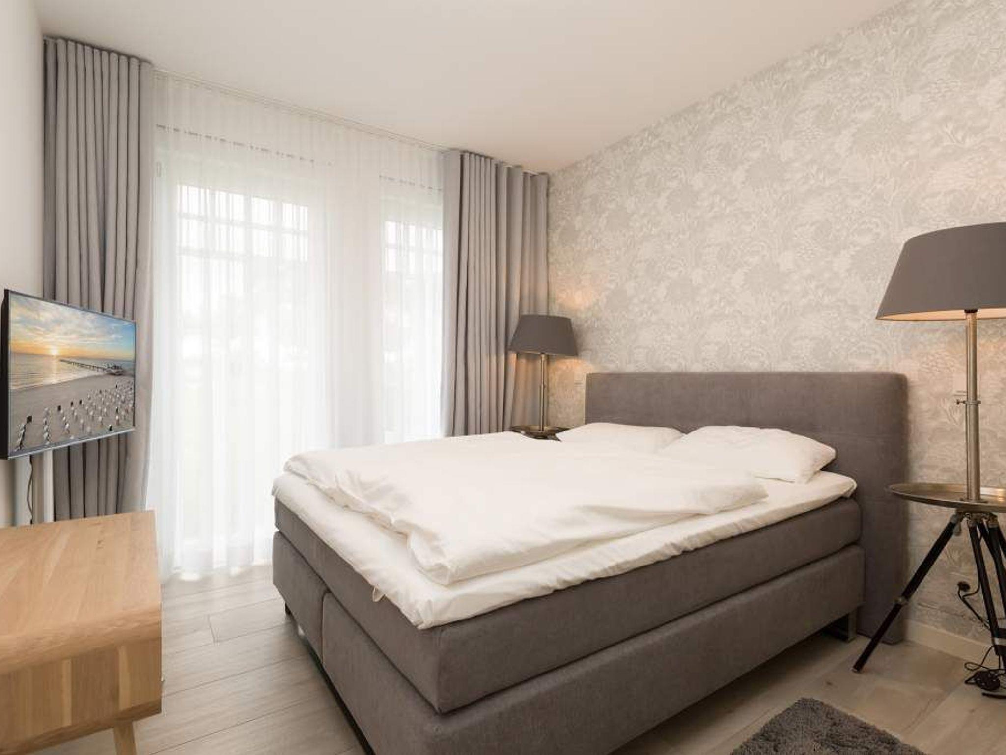 Aus diesem Urlaubsdomizil möchten Sie garantiert nicht wieder ausziehen: 78 stylische und vor allem komfortable Quadratmeter Wohntraum, bei der das Wellenrauschen der nur 100 Meter entfernten Ostsee inklusive ist. In der Wohnung Nummer 1 im Erdgeschoss der Villa Westend mit Blick auf die Ahlbecker Promenade können sich in drei Räumen vier Personen eine entspannte und erholsame Auszeit gönnen. Das luftige, durch die großen, bodenlangen Fenster wunderbar helle und mit einer offenen Küche konzipierte Wohnzimmer lädt mit seinem kuscheligen Sofa, dem Flat-TV und dem Elektro-Kamin geradezu zum Chillen und Relaxen ein. Kochen und dinieren können Sie hier gemeinsam. Denn die Küche ist mit allem ausgestattet, was des Freizeitkochs Herz höher schlagen lässt. Vier Gänge? Mit den hochwertigen Küchengeräten kein Problem. Und der große Esstisch mit den schönen Designstühlen und der Bank sorgen während des genussvollen Zusammensitzens für viel Gemütlichkeit. Salz auf der Haut ? Von der Terrasse aus können Sie den frischen Seeduft tief in sich einatmen und die gesunden Aerosole der salzigen Luft sogar in den Schlaf mitnehmen. In jedem der beiden Schlafzimmer gibt es ein Doppelboxspringbett (1,60 m x 2,00 m und 1,60 m x 2,00 m), jeweils einen Flat-TV und viel Ablagemöglichkeit in den Schränken. Im geräumigen Masterbad wartet mit einer finnischen Sauna, einer Regendusche und einem großem Waschtisch ein eigener kleiner Spa-Bereich auf Sie. Zudem verfügt das Appartement über ein Gäste-WC. Für den perfekten Urlaubsgenuss haben wir für Sie die Betten bereits bezogen und Ihnen die Erstausstattung Handtücher bereit gelegt. Parken können Sie auf einem Stellplatz in der Tiefgarage. Es steht 1 Pkw-Stellplatz Nr. 41 in der Tiefgarage zur Verfügung.