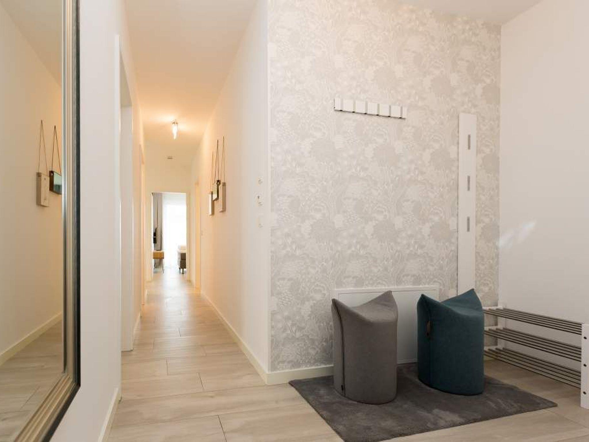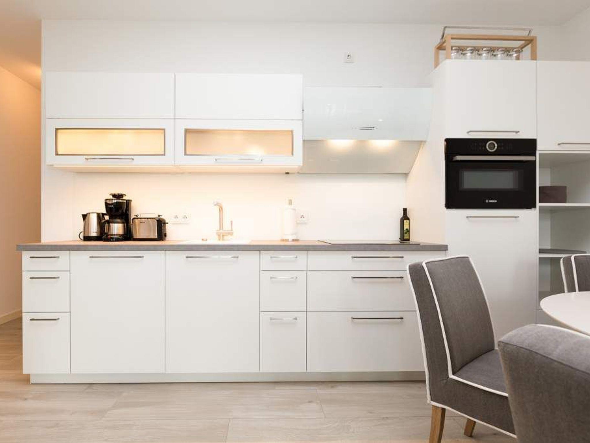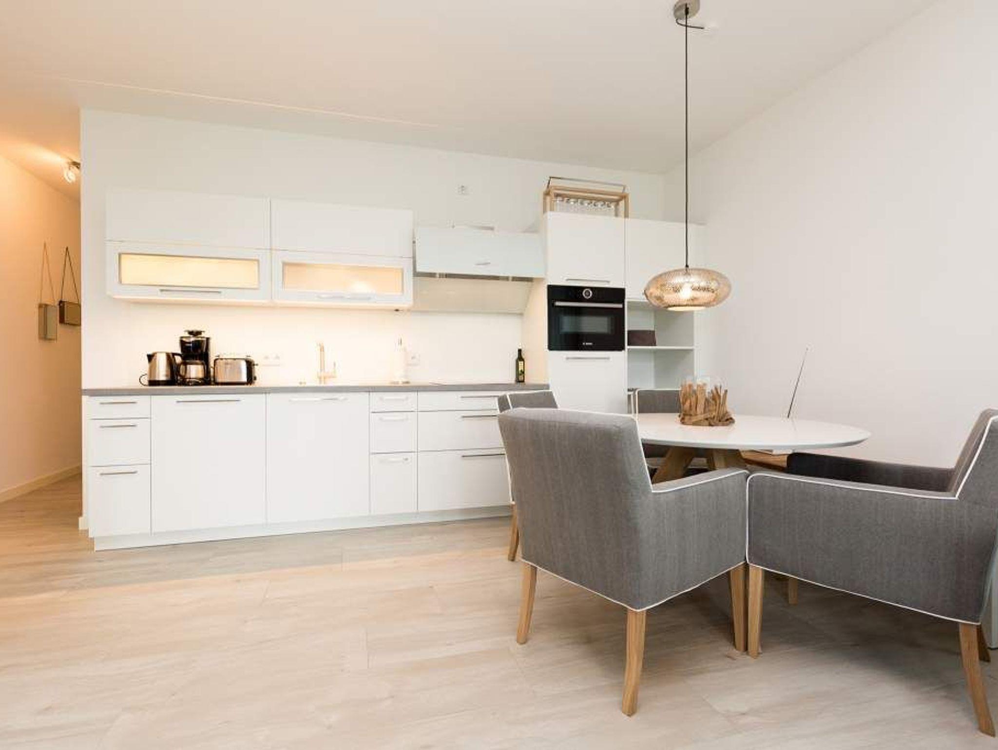 Aus diesem Urlaubsdomizil möchten Sie garantiert nicht wieder ausziehen: 78 stylische und vor allem komfortable Quadratmeter Wohntraum, bei der das Wellenrauschen der nur 100 Meter entfernten Ostsee inklusive ist. In der Wohnung Nummer 1 im Erdgeschoss der Villa Westend mit Blick auf die Ahlbecker Promenade können sich in drei Räumen vier Personen eine entspannte und erholsame Auszeit gönnen. Das luftige, durch die großen, bodenlangen Fenster wunderbar helle und mit einer offenen Küche konzipierte Wohnzimmer lädt mit seinem kuscheligen Sofa, dem Flat-TV und dem Elektro-Kamin geradezu zum Chillen und Relaxen ein. Kochen und dinieren können Sie hier gemeinsam. Denn die Küche ist mit allem ausgestattet, was des Freizeitkochs Herz höher schlagen lässt. Vier Gänge? Mit den hochwertigen Küchengeräten kein Problem. Und der große Esstisch mit den schönen Designstühlen und der Bank sorgen während des genussvollen Zusammensitzens für viel Gemütlichkeit. Salz auf der Haut ? Von der Terrasse aus können Sie den frischen Seeduft tief in sich einatmen und die gesunden Aerosole der salzigen Luft sogar in den Schlaf mitnehmen. In jedem der beiden Schlafzimmer gibt es ein Doppelboxspringbett (1,60 m x 2,00 m und 1,60 m x 2,00 m), jeweils einen Flat-TV und viel Ablagemöglichkeit in den Schränken. Im geräumigen Masterbad wartet mit einer finnischen Sauna, einer Regendusche und einem großem Waschtisch ein eigener kleiner Spa-Bereich auf Sie. Zudem verfügt das Appartement über ein Gäste-WC. Für den perfekten Urlaubsgenuss haben wir für Sie die Betten bereits bezogen und Ihnen die Erstausstattung Handtücher bereit gelegt. Parken können Sie auf einem Stellplatz in der Tiefgarage. Es steht 1 Pkw-Stellplatz Nr. 41 in der Tiefgarage zur Verfügung.