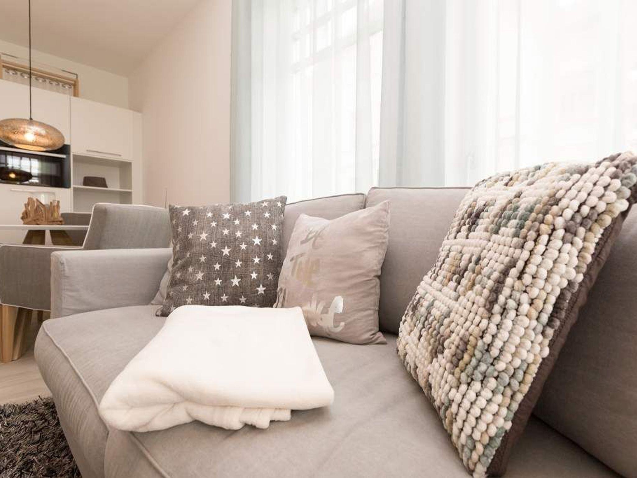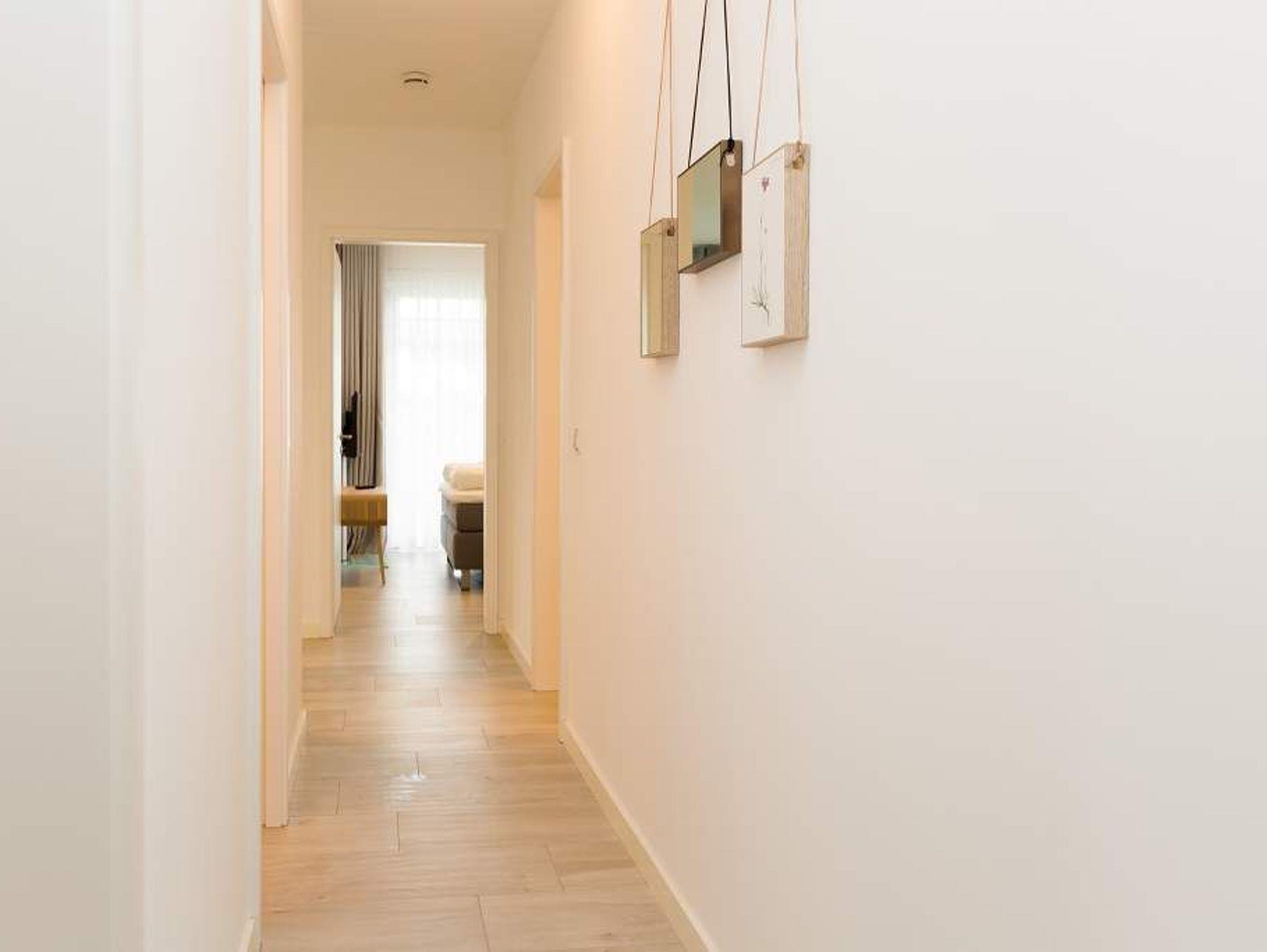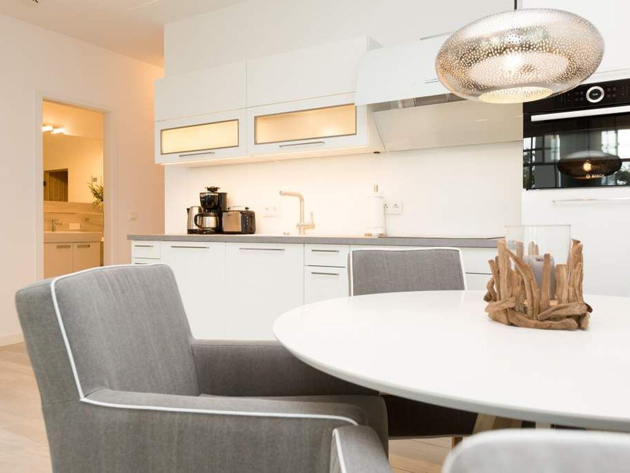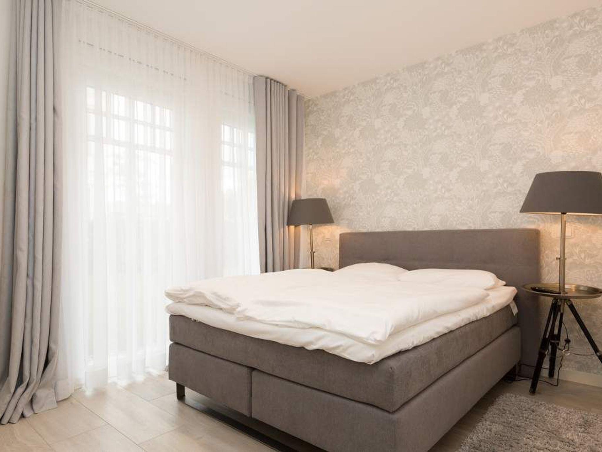 Aus diesem Urlaubsdomizil möchten Sie garantiert nicht wieder ausziehen: 78 stylische und vor allem komfortable Quadratmeter Wohntraum, bei der das Wellenrauschen der nur 100 Meter entfernten Ostsee inklusive ist. In der Wohnung Nummer 1 im Erdgeschoss der Villa Westend mit Blick auf die Ahlbecker Promenade können sich in drei Räumen vier Personen eine entspannte und erholsame Auszeit gönnen. Das luftige, durch die großen, bodenlangen Fenster wunderbar helle und mit einer offenen Küche konzipierte Wohnzimmer lädt mit seinem kuscheligen Sofa, dem Flat-TV und dem Elektro-Kamin geradezu zum Chillen und Relaxen ein. Kochen und dinieren können Sie hier gemeinsam. Denn die Küche ist mit allem ausgestattet, was des Freizeitkochs Herz höher schlagen lässt. Vier Gänge? Mit den hochwertigen Küchengeräten kein Problem. Und der große Esstisch mit den schönen Designstühlen und der Bank sorgen während des genussvollen Zusammensitzens für viel Gemütlichkeit. Salz auf der Haut ? Von der Terrasse aus können Sie den frischen Seeduft tief in sich einatmen und die gesunden Aerosole der salzigen Luft sogar in den Schlaf mitnehmen. In jedem der beiden Schlafzimmer gibt es ein Doppelboxspringbett (1,60 m x 2,00 m und 1,60 m x 2,00 m), jeweils einen Flat-TV und viel Ablagemöglichkeit in den Schränken. Im geräumigen Masterbad wartet mit einer finnischen Sauna, einer Regendusche und einem großem Waschtisch ein eigener kleiner Spa-Bereich auf Sie. Zudem verfügt das Appartement über ein Gäste-WC. Für den perfekten Urlaubsgenuss haben wir für Sie die Betten bereits bezogen und Ihnen die Erstausstattung Handtücher bereit gelegt. Parken können Sie auf einem Stellplatz in der Tiefgarage. Es steht 1 Pkw-Stellplatz Nr. 41 in der Tiefgarage zur Verfügung.