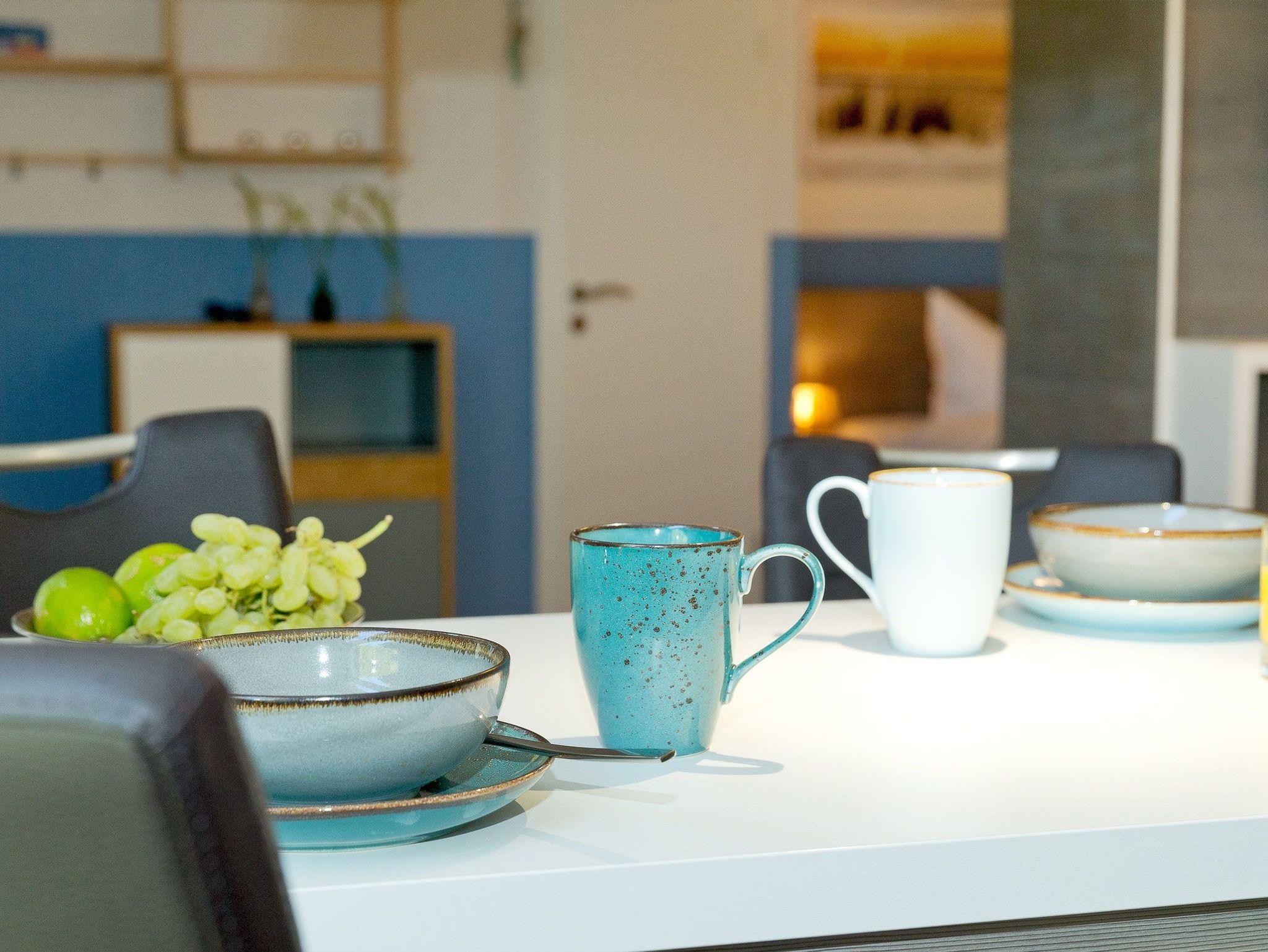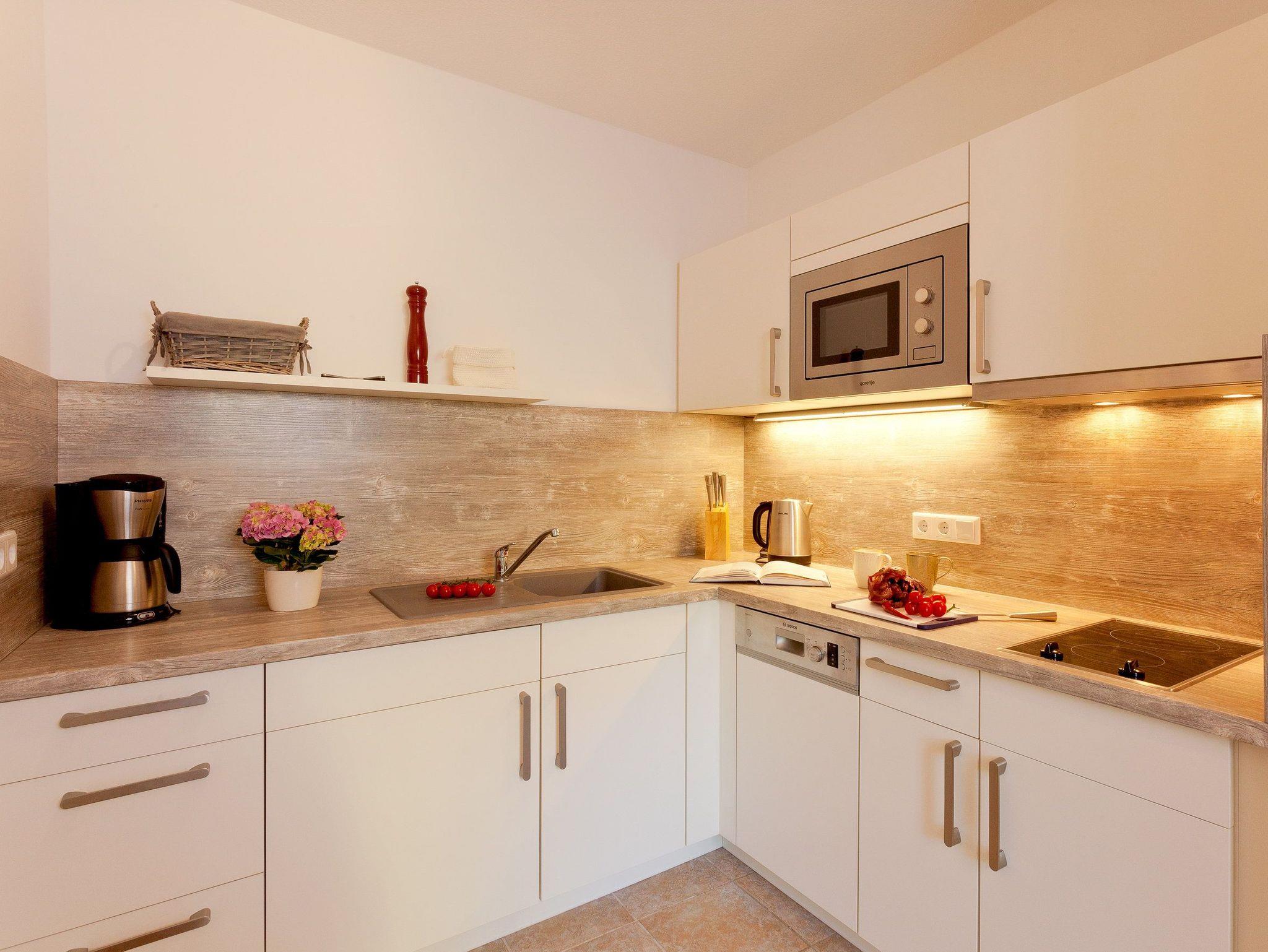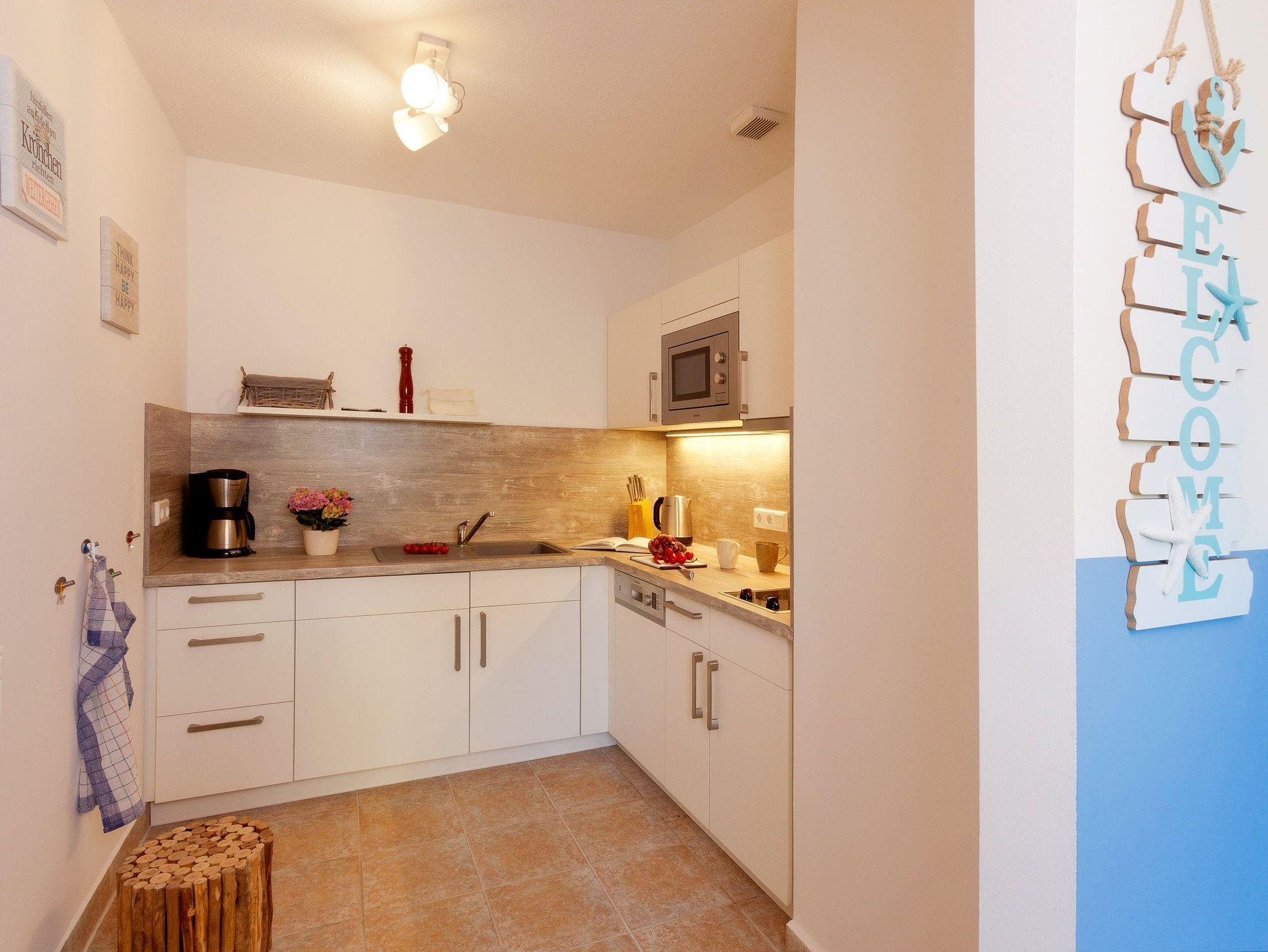 Lassen Sie einen erholsamen oder auch erlebnisreichen Urlaubstag bei einem Glas Wein auf der Terrasse ausklingen. Die separate komplett ausgestattete Einbauküche verfügt zudem über Kühlschrank mit Gefrierfach, Mikrowelle, Ceran-Kochfeld (2 Platten), Spülmaschine, Wasserkocher, Toaster, Kaffeemaschine (4er Filter). Das Badezimmer ist mit Dusche, WC und einem Haarfön ausgestattet. Am Haus steht Ihnen ein kostenfreier PKW Stellplatz zur Verfügung.