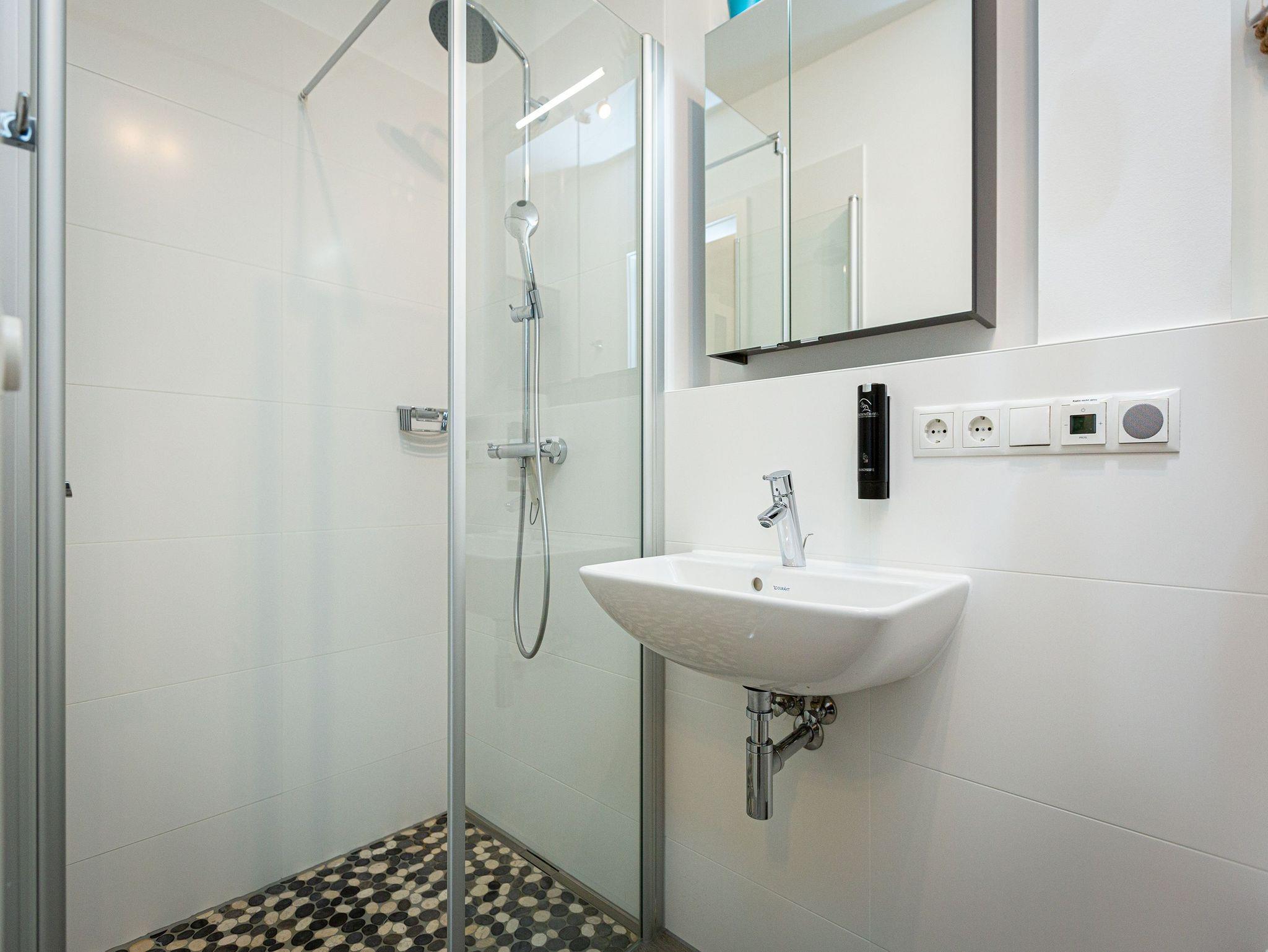 Ankommen, abschalten und neue Energie tanken. Im neu gebauten Quartier 7 im Herzen des Kaiserbades Ahlbeck fällt Ihnen das sicher ganz leicht. Moderne und stilvoll eingerichtete Appartements laden zum Wohlfühlen und Entspannen ein. In den ersten und zweiten Stock gelangen Sie via Fahrstuhl. Schöne, alte Villen umgeben die Anlage, verleihen dem Wohngefühl ein besonderes Flair. Die Zwei- und Drei-Zimmer-Appartements sind geräumig, offen und hell und teilweise mit einer Sauna oder einem Kamin ausgestattet. Wohnkomfort vom Feinsten lädt zum Faulenzen ein. Genießen Sie die frische Ostseeluft auf dem Balkon oder der Terrasse, denn jede Wohnung besitzt einen kleinen Außenbereich. An stürmischen Tagen können Sie von hier aus sogar die Wellen rauschen hören. Das beste Rezept für einen erholsamen Schlaf. Offene Wohnbereiche und voll ausgestattete Küchen sorgen für alle Annehmlichkeiten. Das Haus bietet eine Tiefgarage (Einfahrthöhe ca. 2,03 m). Einige Wohnungen verfügen über einen Kellerraum, der als Unterstellmöglichkeit für Fahrräder genutzt werden kann. Das WLAN-Netz ist für alle kostenfrei. Willkommen also in Ihrem kleinen Urlaubsparadies.