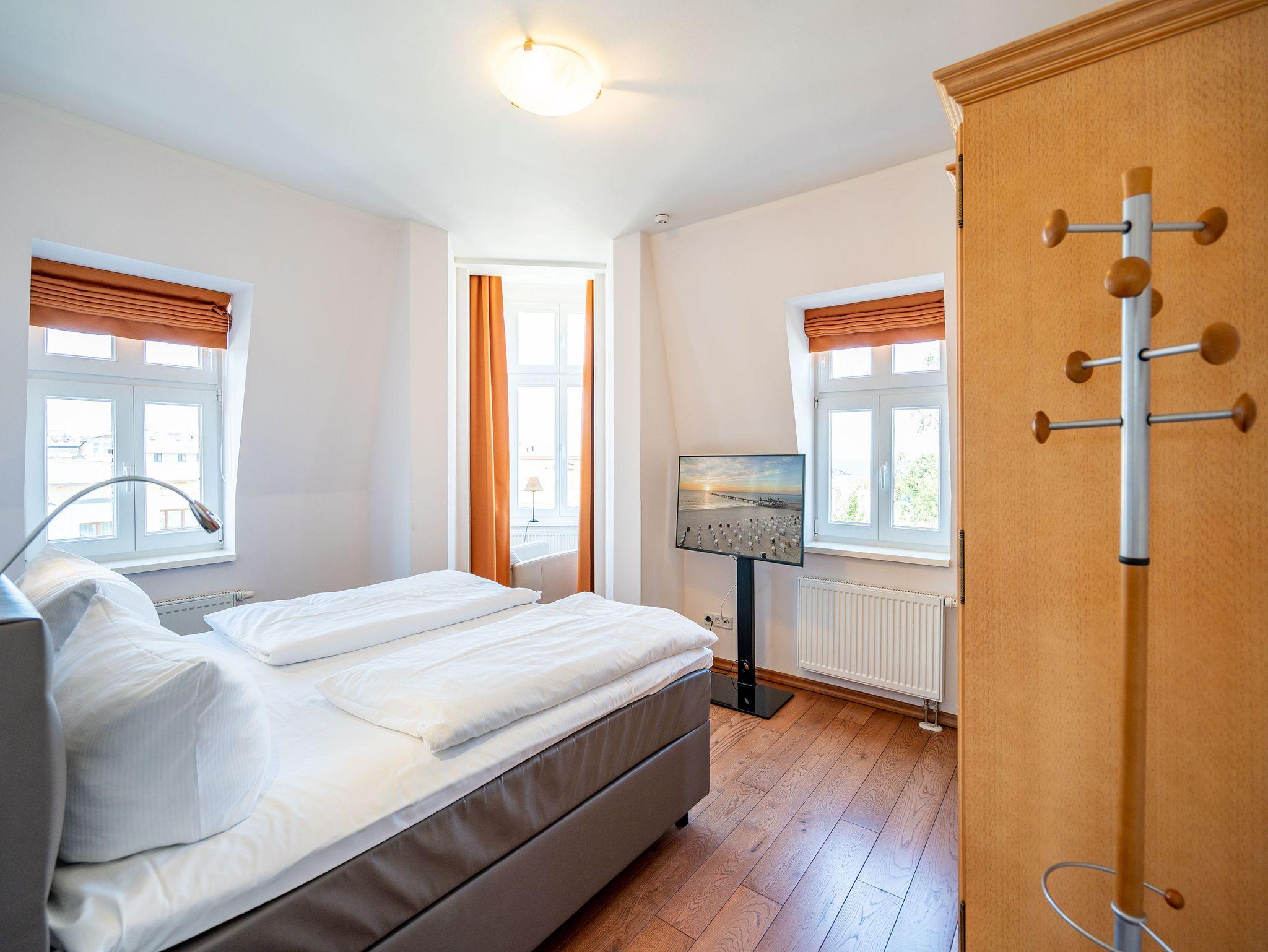 Liebevoll saniert, erstrahlt das Schloss am Meer im neuen alten Glanz. Wunderschön restauriert und exklusiv ausgestattet, bieten Ihnen die Wohnungen ein fantastisches, strandnahes Urlaubsdomizil (nur 80 m) im Seebad Ahlbeck. Stilvoll romantische Bäderarchitektur gepaart mit modernem Komfort. Diese elegante Villa verfügt über einen Fahrstuhl und teilweisen Meerblick, die einzelnen Ferienwohnungen sind mit Balkonen oder Terrassen ausgestattet. Als besonderes Highlight finden Sie in jedem Appartement einen Kaminofen. Im Schwesternhaus, der Residenz Bismarck befindet sich ein Saunabereich (gegen Gebühr). Jede Wohnung verfügt über einen Stellplatz in der Tiefgarage für Fahrzeuge bis 1,90 m Höhe ( Stellplätze relativ eng, eingeschränkte Wendemöglichkeit). Für Ihren Komfort steht die Erstausstattung Wäsche für Sie bereit. Bitte beachten Sie, dass Kaminholz in der Wohnung nicht vorhanden ist. Das WLAN-Netz ist kostenfrei nutzbar.