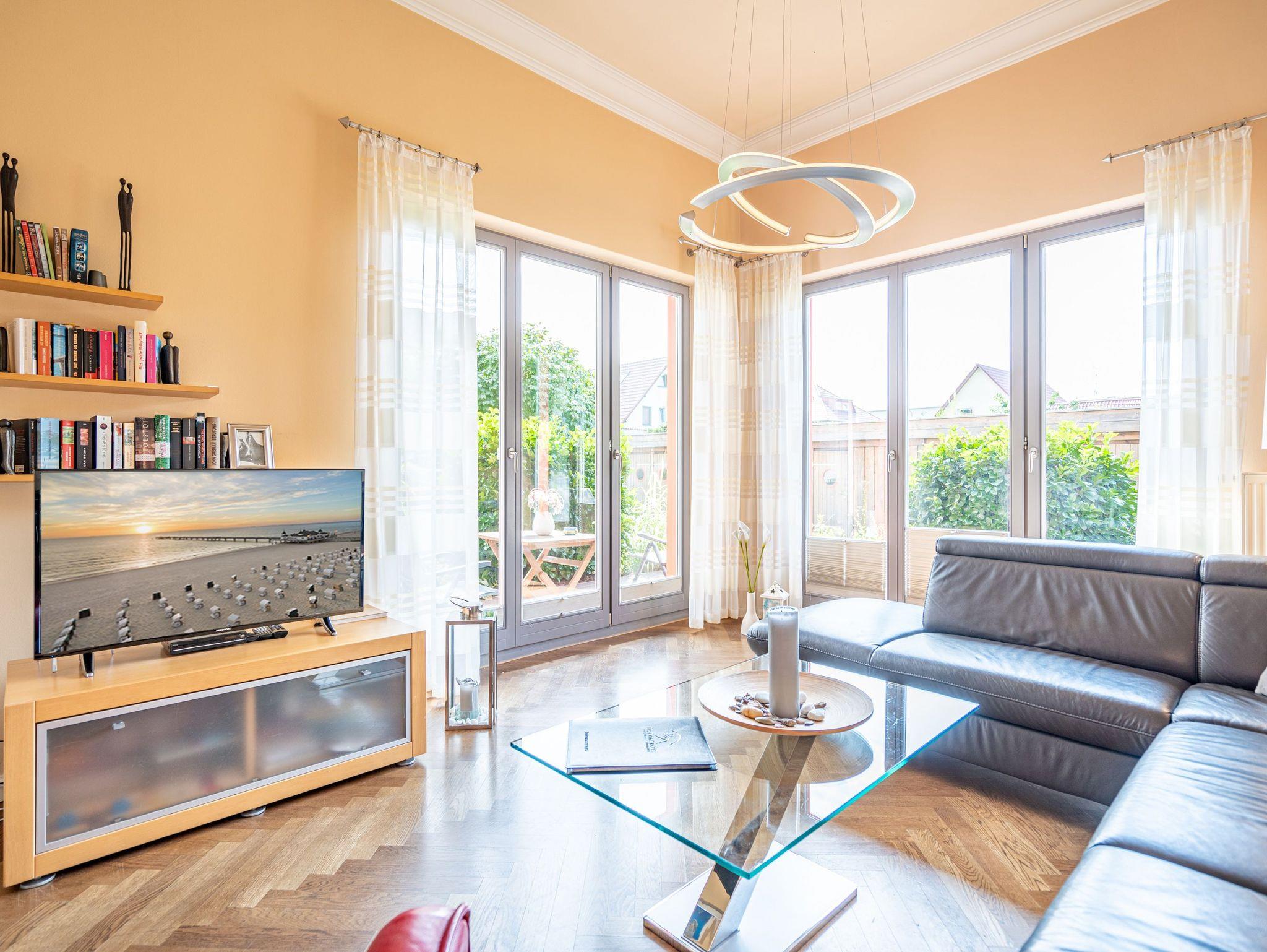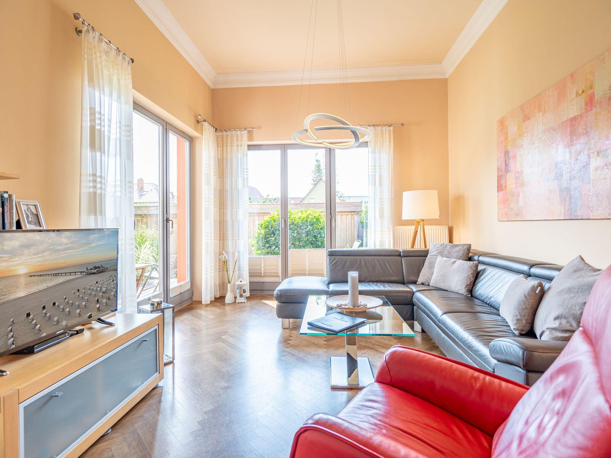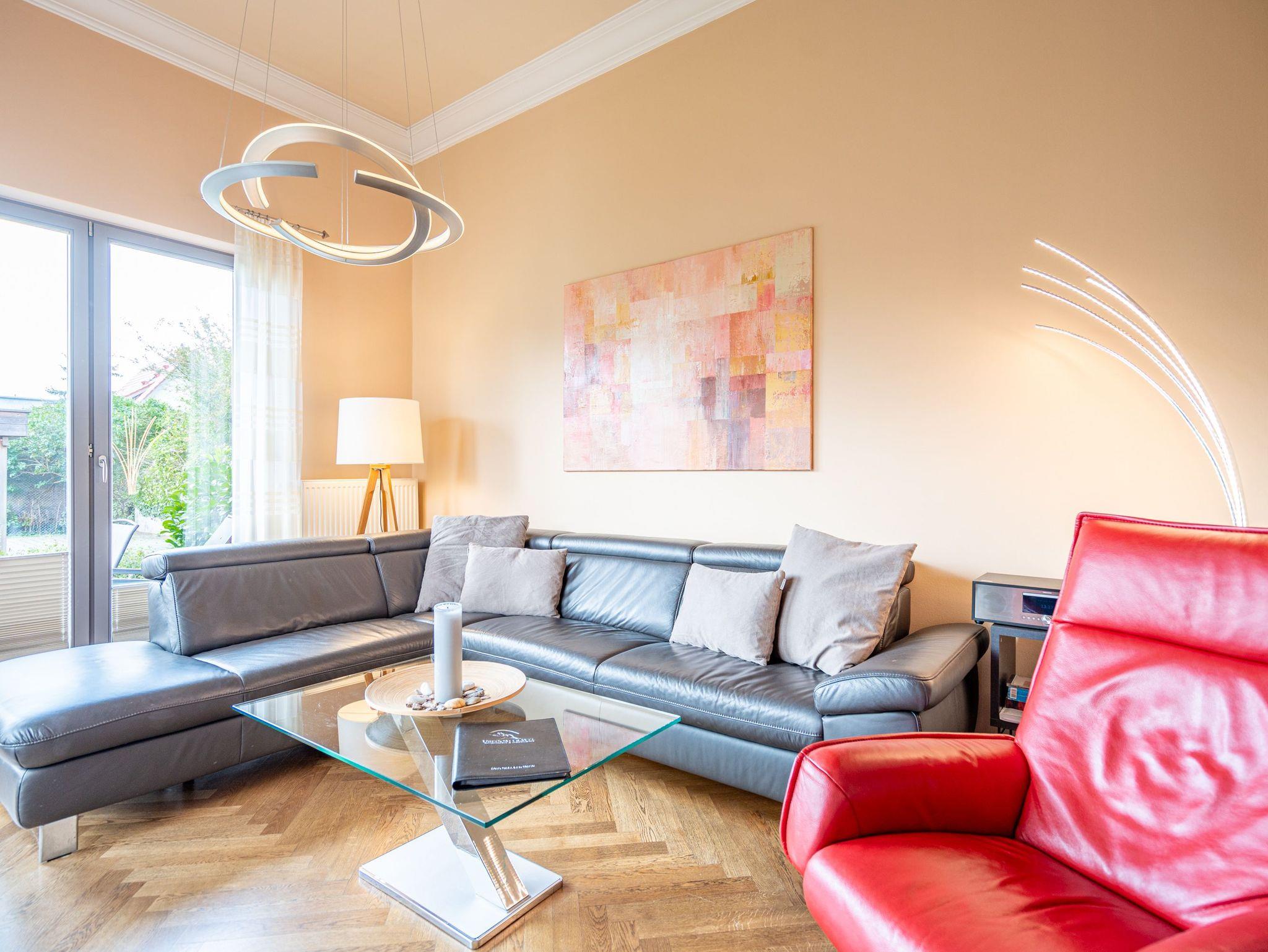 Mit diesem Domizil entscheiden Sie sich für eine exklusive Möglichkeit, Ihren Urlaub in den Kaiserbädern zu verbringen. Die 1898, im wilhelminischen Baustil errichtete Villa, präsentiert Ihnen seit Januar 2005 hochherrschaftliches Wohnen in ruhiger Lage. Großzügige Räumlichkeiten, historische Veranden und Balkone sorgen für rundherum gelungene Urlaubstage. Der große Saunabereich (kostenfrei) im Untergeschoss der Villa bietet Ihnen an kälteren Tagen eine angenehme Abwechslung. Für jede Wohnung steht ein PKW-Stellplatz am Haus zur Verfügung (größtenteils überdacht), für Fahrräder gibt es teilweise separate Abstellräume (abschließbar). Waschmaschine und Trockner (im Untergeschoss) im Haus sind gegen eine Gebühr nutzbar. Das WLAN-Netz steht kostenfrei zur Verfügung.