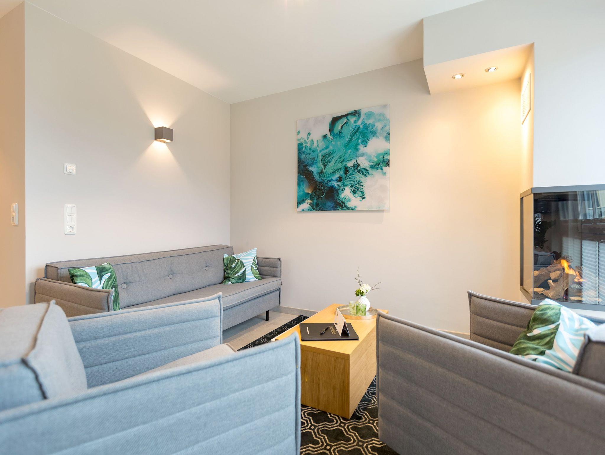 Viel Platz zum Wohlfühlen und Urlauben wartet auf Sie in den 59 Quadratmetern dieses ausgesucht schönen Appartements ( für 4 Erwachsene [&] 1 Kleinkind ( bis 3 Jahre im Kinderreisebett). Gerade das geräumige Wohn-Esszimmer ? Mittelpunkt des Domizils ? ist eine echte Wohlfühlzone mit lichter Leichtigkeit durch große Fenster, stylische Möbel und einer modernen und hochwertig ausgestatteten Küche. Ein Hingucker ist der große Amerikanische Retro-Kühlschrank. Sofas und Sessel laden zum Relaxen ein. Ein Gas-Kamin sorgt auf Knopfdruck für Behaglichkeit; ein Flat-TV für die digitale Unterhaltung. Am schönen Esstisch sind gemütliche Plauder- und Mußestunden garantiert. Kochen Sie gemeinsam. Denn es ist alles da, um es sich richtig gut gehen zu lassen. Edles Geschirr rundet das optische Genussbild ab. Das Appartement verfügt über zwei sonnenüberflutete, 13 Quadratmeter große Südost- und Südwest-Balkone. In jedem der beiden Schlafzimmer befindet sich ein bequemes Boxspringdoppelbett (1,80 m x 2,00 m), das nicht nur das Schlafen zum Vergnügen macht. Entspannen können Sie auch wunderbar in der wohnungseigenen Finnischen Sauna, die direkt ins Badezimmer eingebaut ist. Wem an ungemütlichen Tagen kalt ist, dem wird hier ganz sicher schnell wieder wohlig warm. Abbrausen können Sie sich gleich unter der geräumigen Dusche. Im Bad gibt es zudem einen Waschtisch und ein WC. Ein separates Gäste-WC gibt es in der Wohnung ebenfalls. Für Ihren Komfort sind die Betten bei der Anreise bereits bezogen und Handtücher liegen bereit. Das WLAN ist in der Wohnung kostenfrei und ein Stellplatz Nr. 6 ist für Sie am Haus reserviert. Ein echtes Urlaubsparadies wartet also nur darauf, dass Sie ankommen und am liebsten gar nicht wieder weg wollen.