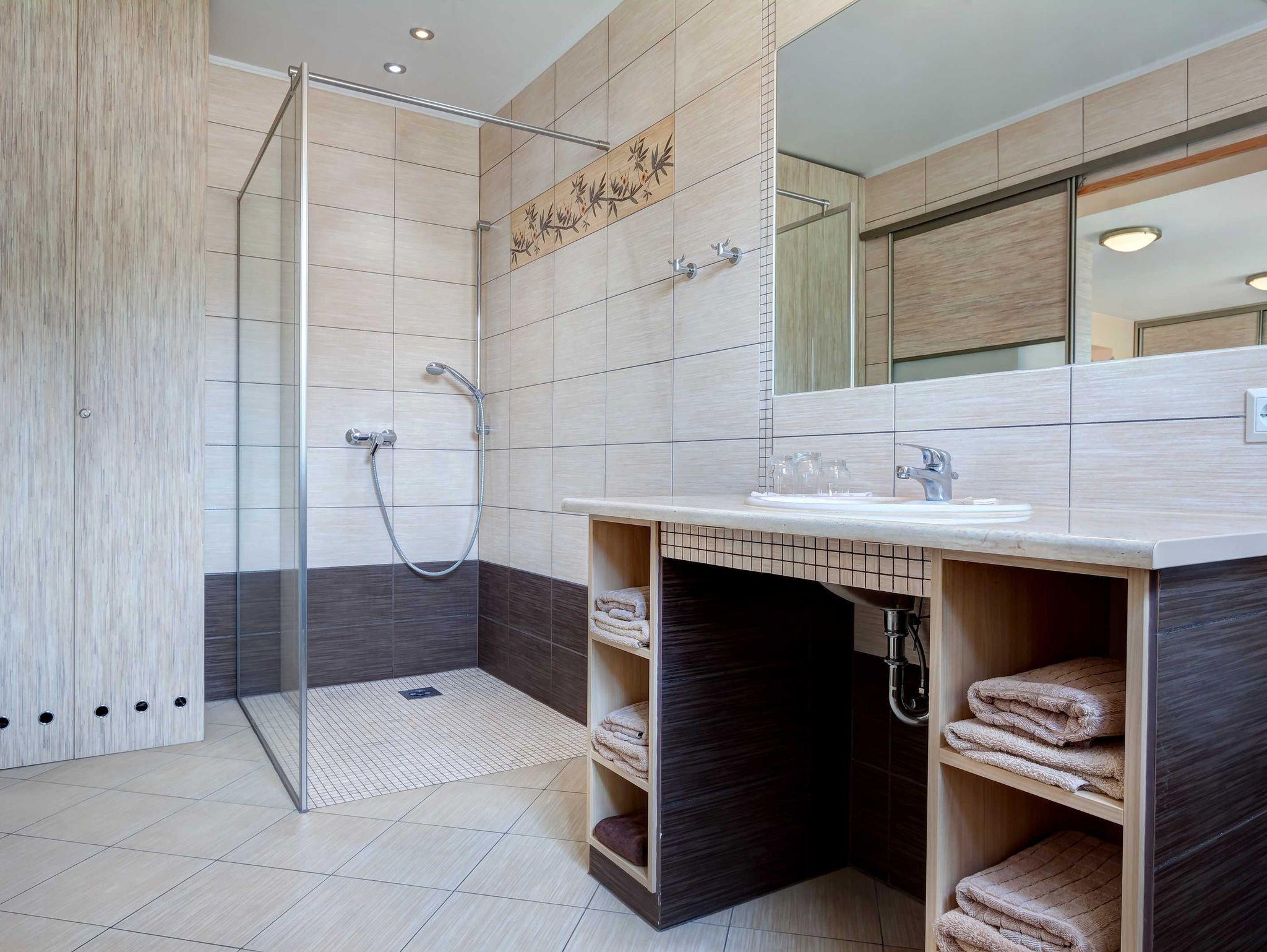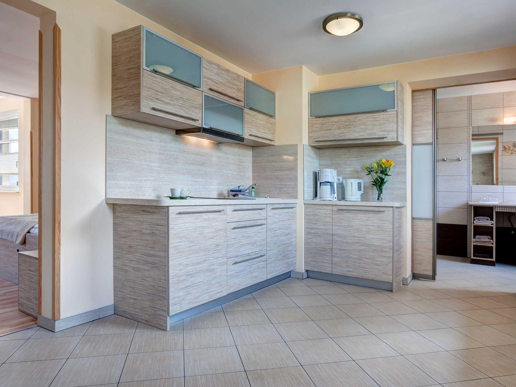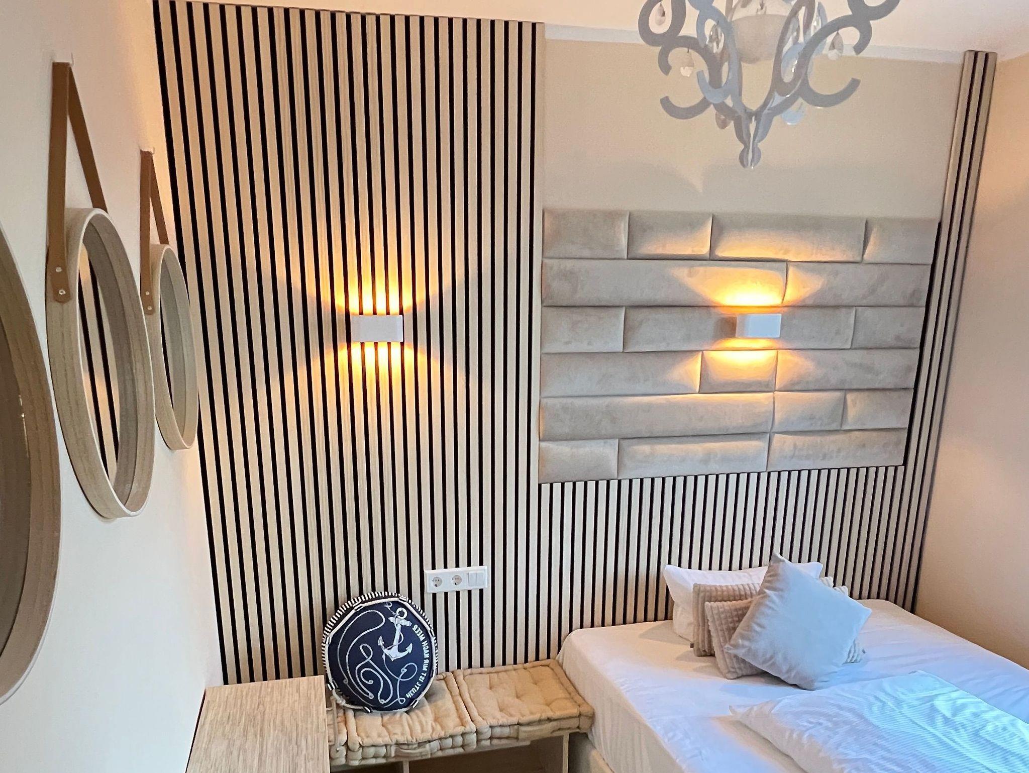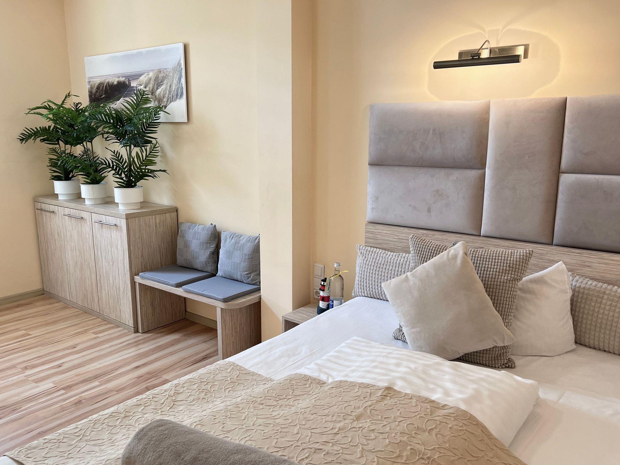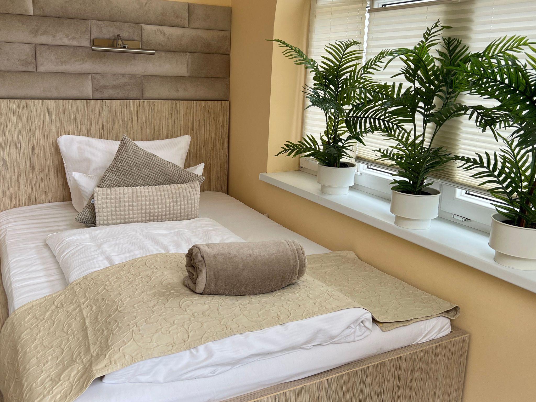 Die nur 80 Meter vom Strand entfernte Erdgeschosswohnung hat einen separaten Eingang. Sie ist besonders familienfreundlich und für Rollstuhlfahrer geeignet durch einen stufenlosen Zugang. Selbst die gesamte Ferienwohnung ist barrierefrei. Allergiker fühlen sich so wohl wie unsere Nichtraucher. In den Schlafzimmern befinden sich zwei extrahohe, bequeme Betten (160cm und 140cm). Selbstverständlich erwartet Sie eine komfortable Vollausstattung. Ansprechende Laminat- und Steinfliesenböden sorgen für Behaglichkeit und eine warme, heimische Atmosphäre. Die gesamte Ferienwohnung wird von einer Fußbodenheizung erwärmt. Ihnen steht ein LED-Fernseher, freier Internetzugang sowie eine moderne, grundausgestattete Einbauküche zur Verfügung. Ein Parkplatz direkt vor Ihrem Feriendomizil sorgt für kürzeste Wege. Weiße, kräftige Baumwollbettwäsche und weiche Handtücher werden Ihnen schmeicheln. Geschirrtücher sowie Duschvorleger sind ebenfalls vorhanden. Hochstühle und Kinderreisebetten können nach Rücksprache zur kostenlosen Nutzung bereitgestellt werden. Toilettenhalterung und behindertengerechte Duschhocker sind für unsere bedürftigen Gäste ebenfalls auf Anfrage inklusive. Jungen Familien und gehandicapten Personen werden sämtliche, barrierefreien Zugänge zum Strand, zur Seebrücke und der Ortschaft Ahlbeck sehr entgegenkommen.