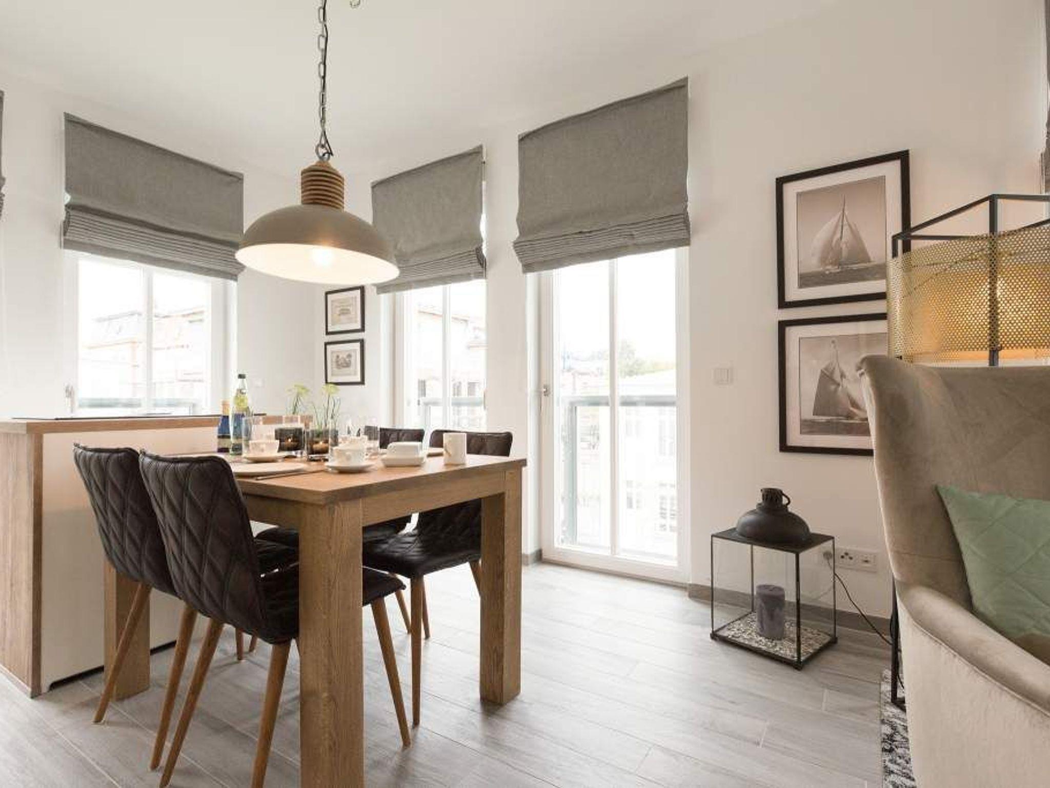 Der heiße Kaffee duftet köstlich in der Tasse. Der Blick wandert bis an den blauen Horizont. Und mit ihm die Seele. Den Gedanken Freiraum geben. Loslassen. Wohlfühlen. Einfach nur sein. Die Lungen füllen sich mit frischer, salziger Ostseeluft. Ankommen im Urlaubshimmel mit Meerblick. Die Wohnung mit der Nummer 16 im 2. Stock der Villa Westend bietet all das und noch vieles mehr. Platz ist in den drei Räumen des Ferien-Appartements für vier Erwachsene und ein Kleinkind bis drei Jahre im Kinderreisebett. Mittelpunkt ist unbestritten die große und gemütliche Wohn-Ess-Küche. Ob beim Chillen auf der kuscheligen Couch, den großen Flat-TV, beim Lesen im urigen Ohrensessel, beim gemeinsamen Schlemmen am Echtholztisch oder beim Kochen an der stylischen Kochinsel mit Induktionsherd und modernster Dunstabzugstechnik in der Mitte des Kochfelds ? diese Wohnung hat Stil. Die 84 Quadratmeter bieten Urlaubshungrigen und Ostseeliebhabern eine exklusive Auszeit, um neue Energie zu tanken und zu entspannen. Landhausstil trifft Industrial-Style: Die Einrichtung ist sehr geschmackvoll, die Farben sind natürlich und warm. Direkt vom Wohnzimmer geht?s auf die Loggia mit Meerblick. Der Tisch mit den vier Stühlen lädt schon zum Sonnenaufgang zum Ausblick über das Meer ein oder zum geselligen Verweilen in lauen Sommernächten. Die zwei Schlafzimmer sind mit bequemen Doppelboxspringbetten (1,80 m x 2,00 m) ausgestattet. Kleiderschränke und Kommoden bieten dort genügend Stauraum für die mitgebrachten Sachen. Die Wohnung verfügt über zwei Bäder mit geräumigen Tropenduschen, Waschtisch und jeweils WC. Einen Grund, mehr in dieser Wohnung so richtig ausspannen und entspannen zu können, bietet die Finnische Sauna im Masterbad. Die Erst-Ausstattung mit Handtüchern und der Bezug der Betten gehören zum Service dazu. Ebenso die kostenfreie Nutzung des WLAN. In der Tiefgarage stehen die Stellplätze Nr. 28 [&] 29 zur Verfügung.