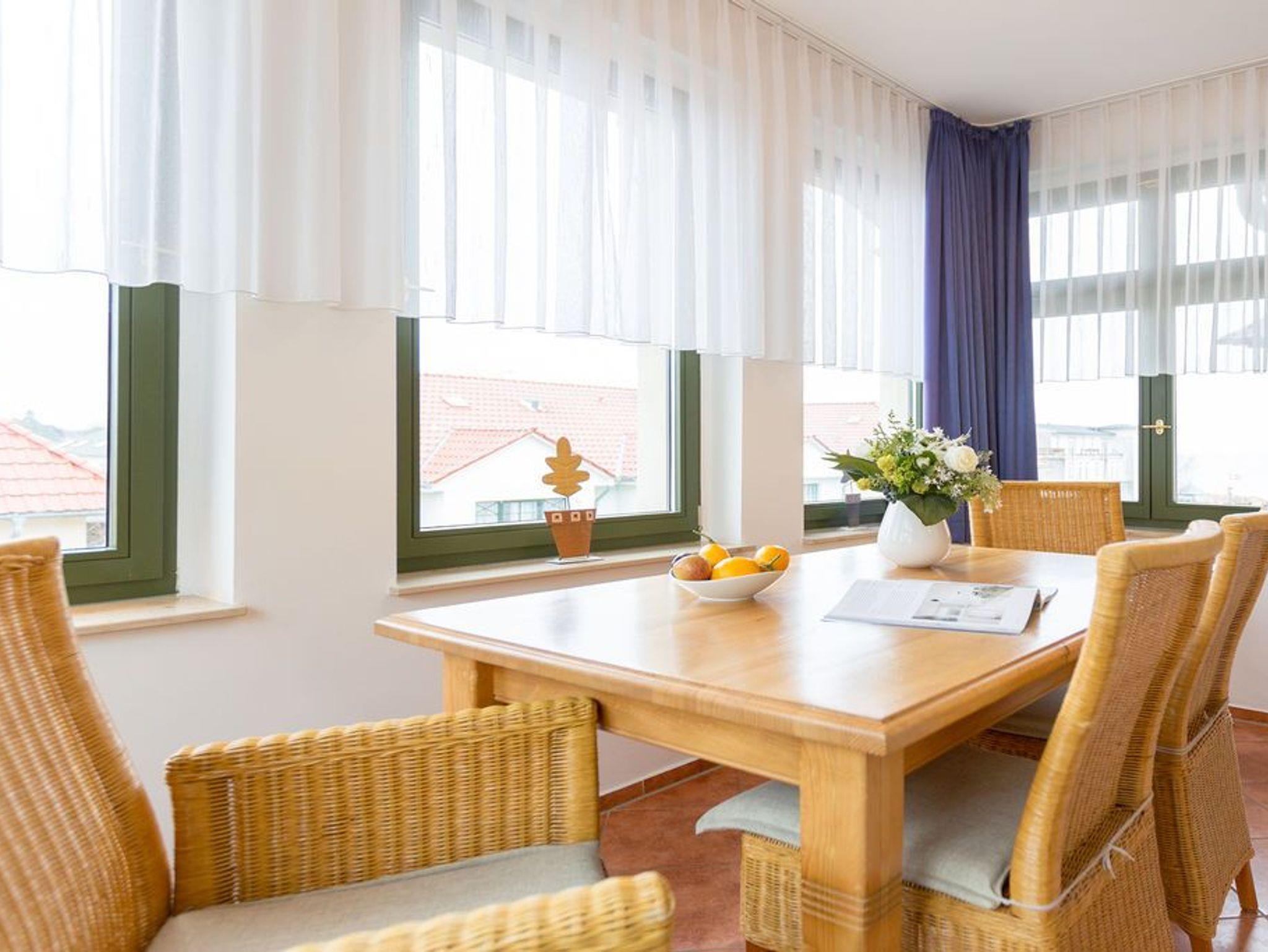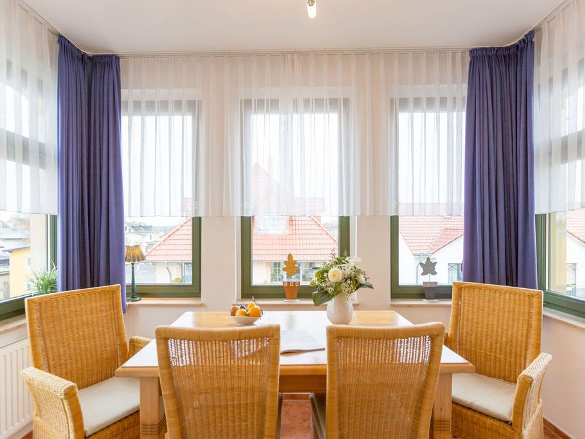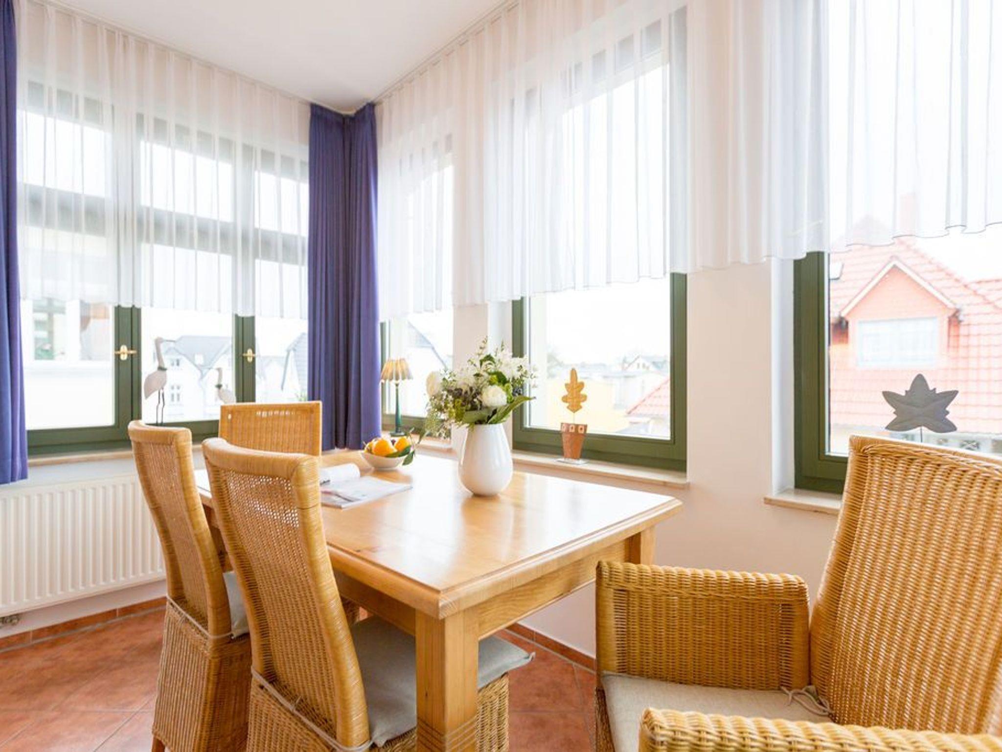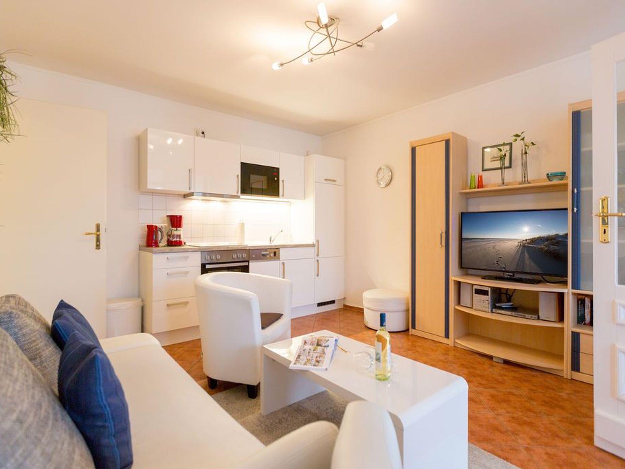 Diese wunderschöne 2-Raum-Ferienwohnung im Obergeschoss der Villa Goodewind präsentiert sich Ihnen modern und zeitlos eingerichtet. Durch seine Lage im 2. Obergeschoß der Villa bietet es Ruhe- und Erholungssuchenden ein ideales Urlaubsdomizil. Komfortabel ausgestattet, verfügt das Appartement über ein Wohnzimmer mit Küchenzeile, ein Schlafzimmer mit Doppelbett, ein Duschbad und eine verglaste Veranda mit seitlichem Meerblick. Auf Wunsch stellen wir für unsere kleinen Gäste ein Kinderreisebett (ohne zusätzliche Matratze [&] Bettzeug) und einen Kinderhochstuhl ( gegen einen Aufpreis) zur Verfügung. Für Ihren Komfort sind die Betten bei der Anreise bezogen und Handtücher liegen bereit (Erstausstattung). Das WLAN-Netz im Haus kann kostenfrei genutzt werden.
