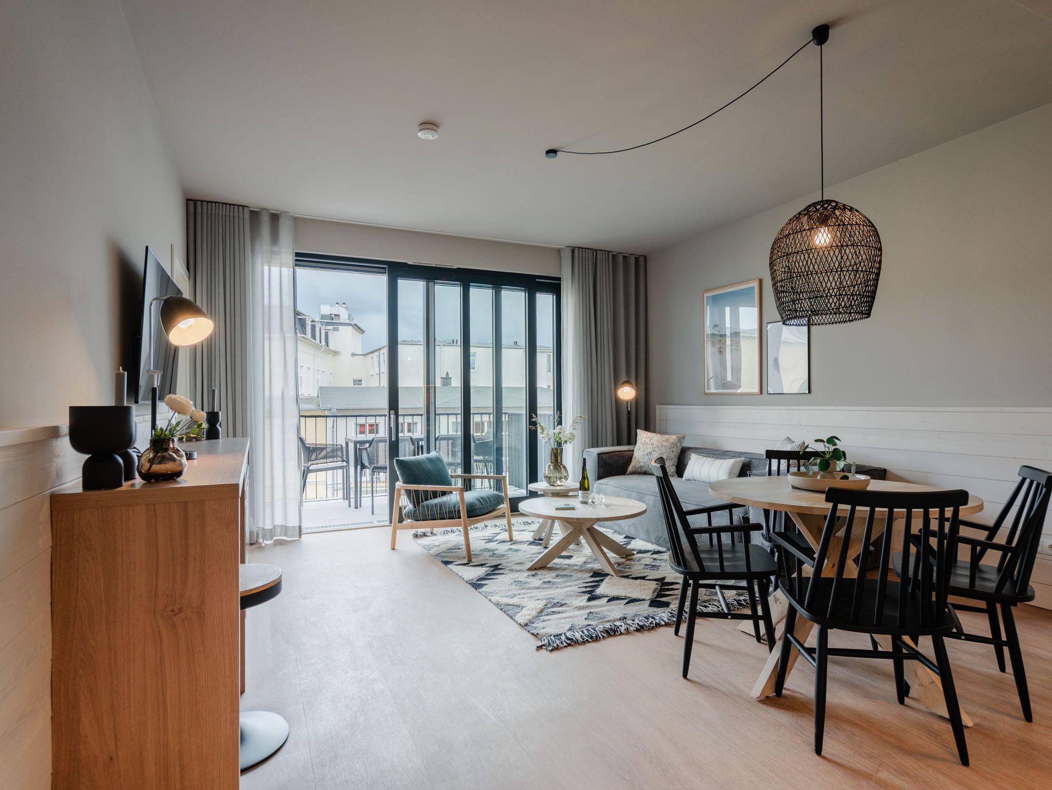 Die 2024 fertig gestellte Strandterrasse liegt direkt an der belebten Strandpromenade und bietet einen einzigartigen Ausblick auf die Grand Dame der historischen Seebrücken sowie die historische Konzertmuschel, einem beliebten Treffpunkt für Kunst und Kultur. Dahinter liegt die Ostsee ? ein Panorama, das zu den schönsten in den Kaiserbädern gehört. Es ist wie das Abtauchen in eine andere Zeit. In eine Zeit, in der man mit Stock, Sonnenschirm und Hut fürs „Sehen und gesehen werden“ über die Promenade schlenderte; aber auch in eine Zeit, in der ? damals wie heute ? Zeit einmal für eine kurze Weile keine Rolle spielt. Weil man angekommen ist im Loslassen, Entspannen und Genießen. Es ist dieser besondere Geruch nach Meeresluft und Freiheit, der in Erinnerung bleibt. Dazu die Bilder, die man mitnimmt. Von langen Strandspaziergängen, vom Lachen in fröhlich schäumenden Ostseewellen, von der Zeit in einem wunderschönen Urlaubsdomizil. Denn genau das ist die Strandterrasse mit ihren 56 modernen und exklusiven Ferienappartements direkt gegenüber der Ahlbecker Seebrücke. Die Ein-, Zwei- oder Dreizimmerwohnungen ? zwischen 40 und 70 Quadratmeter groß ? sind von einer Innenarchitektin gemeinsam mit unserem Erfahrungsschatz an Gästewünschen mit viel Liebe zum Detail und ganz individuell konzipiert worden. Entspannung und Wohlfühlen stehen an erster Stelle. Alles ist aufeinander abgestimmt und sorgt für eine gemütliche Atmosphäre. Wählen Sie zwischen einem Domizil in einem hellen, sandfarbenen Designkonzept oder einem Appartement mit anthrazitfarbenen Farbakzenten. Alle Appartements verfügen gleichermaßen über eine stilvolle und komfortable Einrichtung, die passgenau angefertigt worden ist, sowie über moderne Küchen und Bäder. Jedem Schlafzimmer ist ein eigenes Bad mit Dusche zugeordnet (außer App. B4.5). Die Appartements besitzen fast alle einen Balkon ? viele schauen sogar zur Ostsee hinaus. Die meisten Feriendomizile haben einen Elektrokamin und Infrarotsaunen. Im Erdgeschoss befindet sich ein separater Gemeinschaftsraum für Fahrräder. Außerdem besteht die Möglichkeit, im Gemeinschaftswaschraum 2 Waschmaschinen [&] Trockner zu nutzen. Ergänzt wird das Angebot durch eine Gemeinschaftssauna, die täglich von 11:00 bis 22:00 Uhr nutzbar ist. In der Tiefgarage (Einfahrtshöhe 2,03 Meter) steht für jede Wohnung 1 Pkw-Stellplatz zur Verfügung. Ist alles zur Zufriedenheit untergebracht? Dann kann der Urlaub ja beginnen. Und beim Blick vom Balkon über die Ostsee treffen sich zum Sonnenaufgang das Heute und das Damals. Gelassenheit legt sich beim Gang hinunter an den Strand auf die Seele. Jetzt darf die Zeit stehenbleiben.