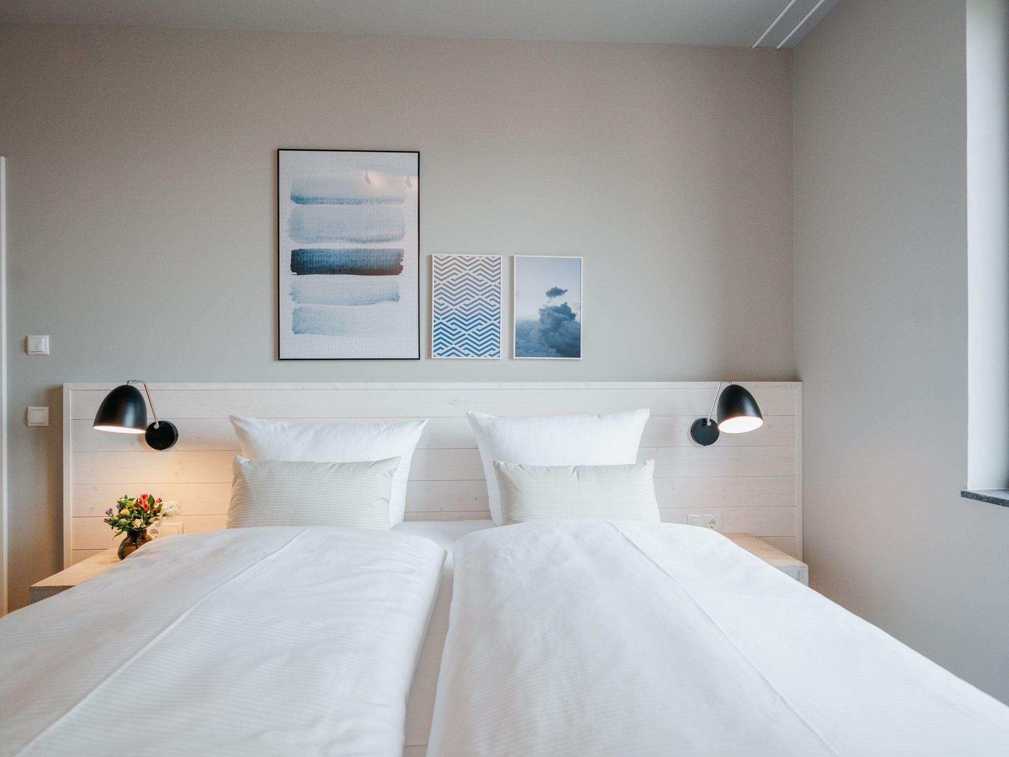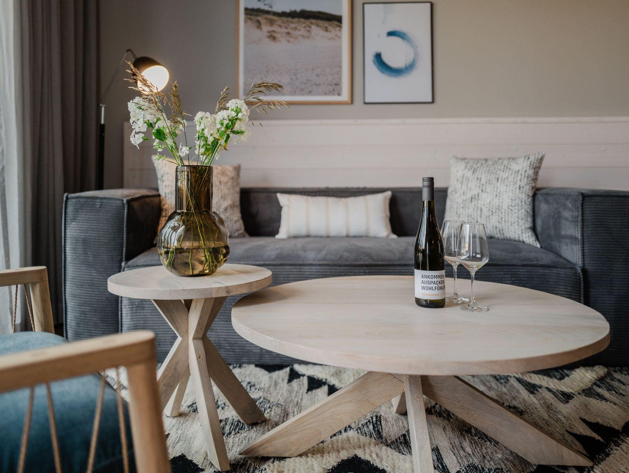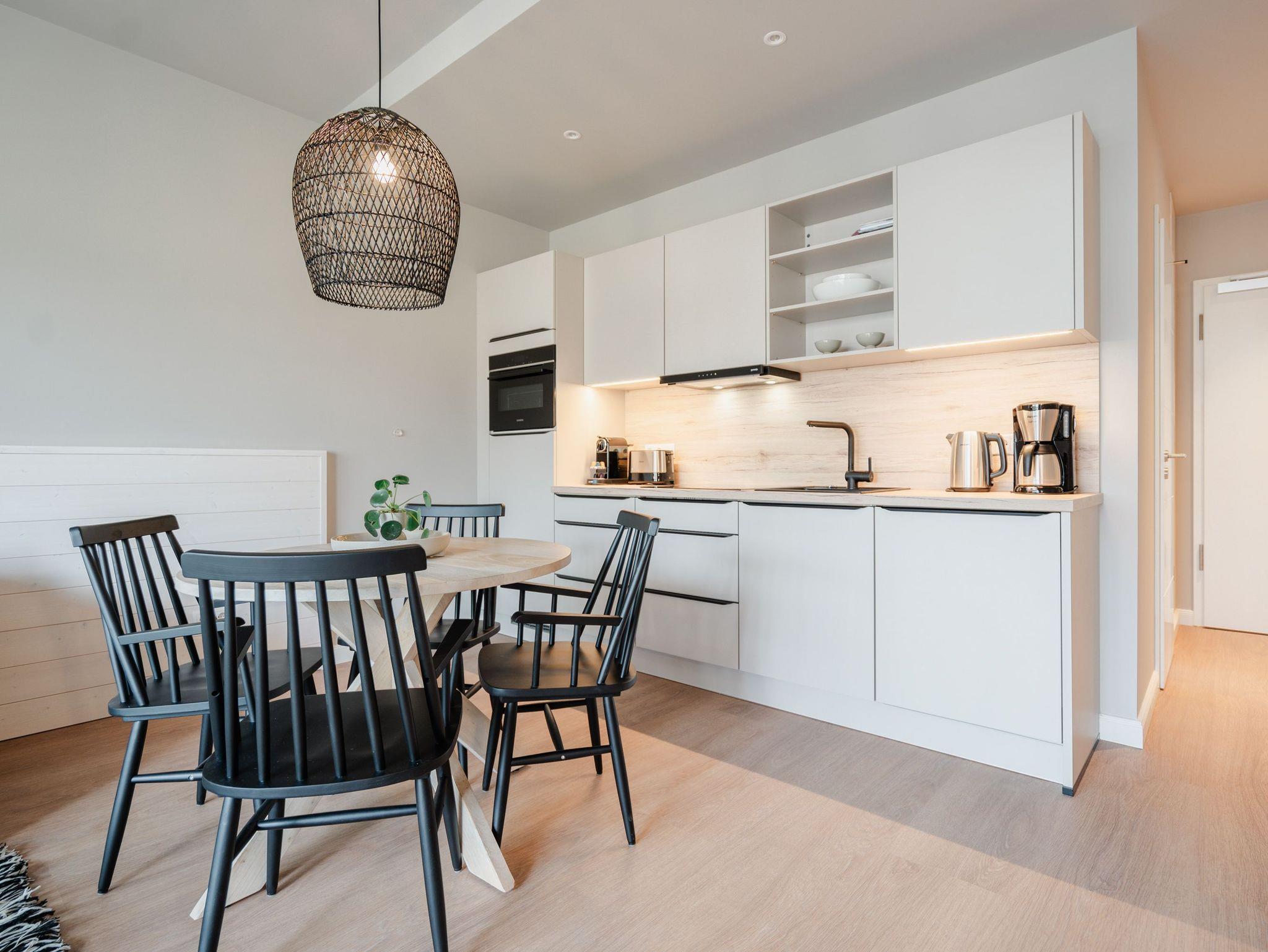 Drei Räume zum Verlieben bietet das Appartement B 2.2 in der 2. Etage der Strandterrasse. Helle, große Zimmer lassen viel Licht in dieses Auszeitparadies für bis zu 4 Personen. Die 76 Quadratmeter sind ein gemütliches und schickes Domizil, um gemeinsam mit der Familie oder mit Freunden eine unvergesslich schöne Zeit am Meer zu verbringen. Nordisches Design erwartet Sie im Wohn-Esszimmer und in den beiden Schlafzimmern. Dazu ist die Wohnung mit allen Annehmlichkeiten ausgestattet, die man für entspannte Tage brauchen kann. Die offene Küche verfügt über modernste Elektrogeräte wie einem Backofen , einen 4-Platten-Induktionsherd und eine Nespresso-Kapselmaschine. Ein gemütliches Wohnzimmer mit bequemem Sofa, Sessel und einem schönen, großen Esstisch sorgt für das ersehnte Urlaubsgefühl. Genießen Sie die Stunden vor dem Elektrokamin (ohne Wärmeabgabe) oder auf dem Balkon, der einen herrlichen, seitlichen Ausblick auf die Ostsee und auf die Seebrücke Ahlbeck gewährt. Was will man mehr. Ein Gartentisch mit Stühlen erlaubt sogar das Essen unter freiem Himmel. Die Süd-Ost-Ausrichtung ist perfekt für sonnige Frühstücke. Ein großer Flat-TV (50 Zoll) sorgt im Wohnzimmer für spannende Heimkinoabende. Zwei Schlafzimmer gibt es in dieser tollen Wohnung. Das erste Schlafzimmer verfügt über ein komfortables Boxspringdoppelbett (1,80m x 2,00m), einen Kleiderschrank, einen Flat-TV (43 Zoll) und den Zugang zu einem zweiten Balkon mit Gartenliege. Von hier aus können Sie auf die belebte Promenade von Ahlbeck und die dahinter liegende Ostsee schauen. Nur 80 Meter ist sie von Ihrem Domizil entfernt. Das zweite Schlafzimmer bietet ebenfalls ein Boxspringdoppelbett und einen Kleiderschrank sowie einen Flat-TV (32 Zoll). Die beiden Bäder sind mit Dusche, Waschtisch und WC ausgestattet. Sie lieben kuschelige Wärme? Dann entspannen Sie doch in der Infrarotsaunakabine, die in eines der beiden Bäder eingebaut ist. Alles ist da, damit Sie sich rundum wohlfühlen können. Sie brauchen also nur noch ankommen, Ihr Auto in der Tiefgarage auf Ihrem PKW-Stellplatz parken und schon kann die wundervolle Ostseeauszeit beginnen.