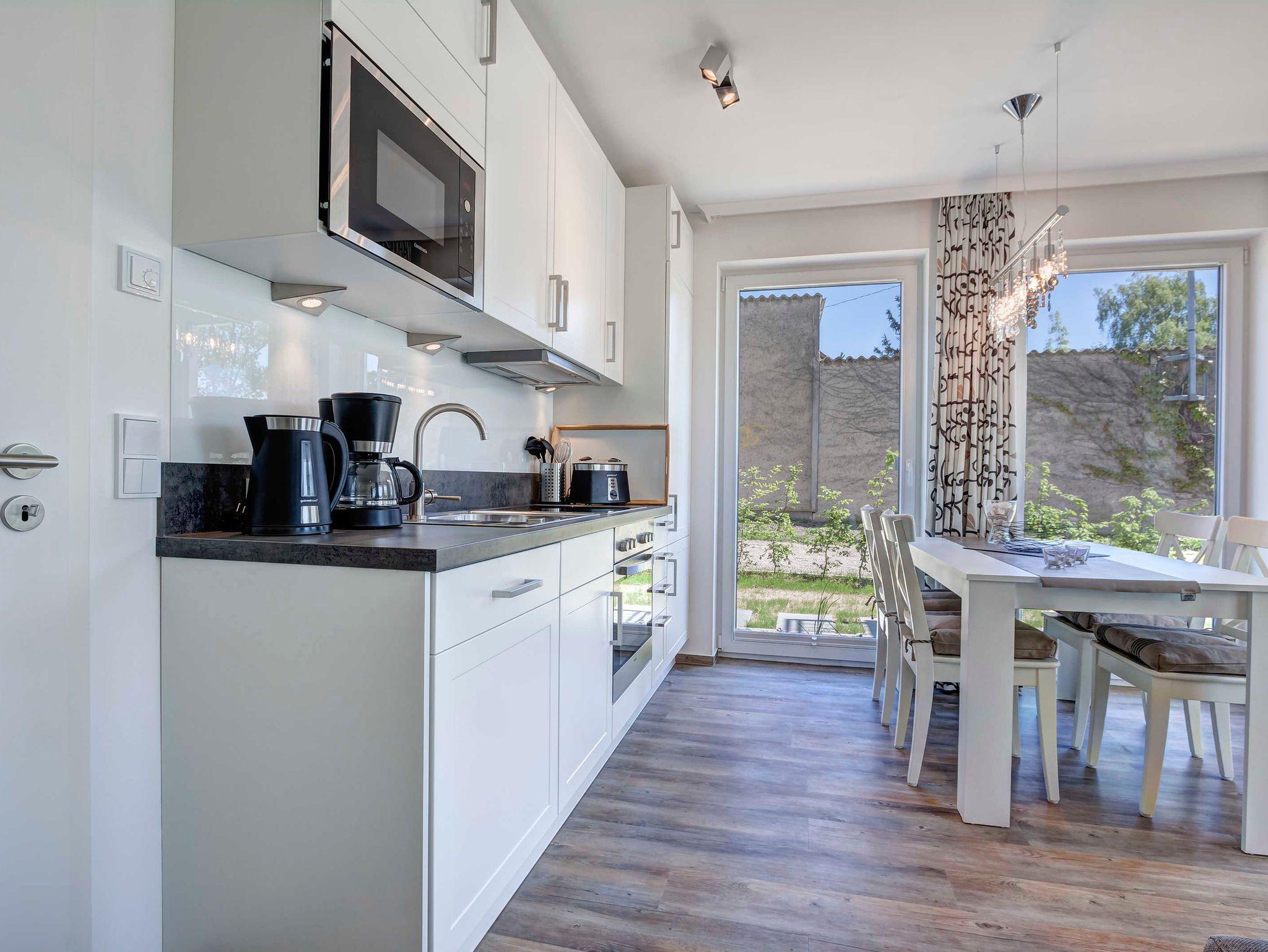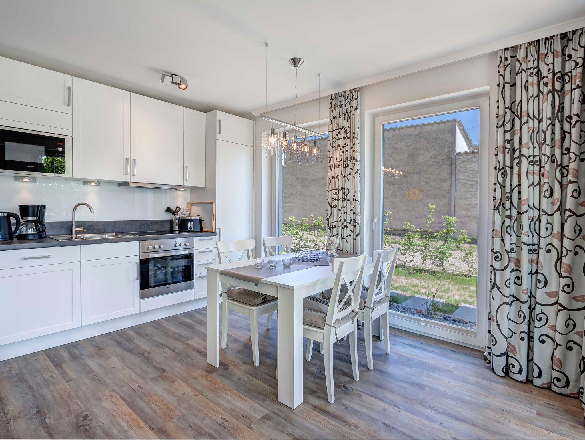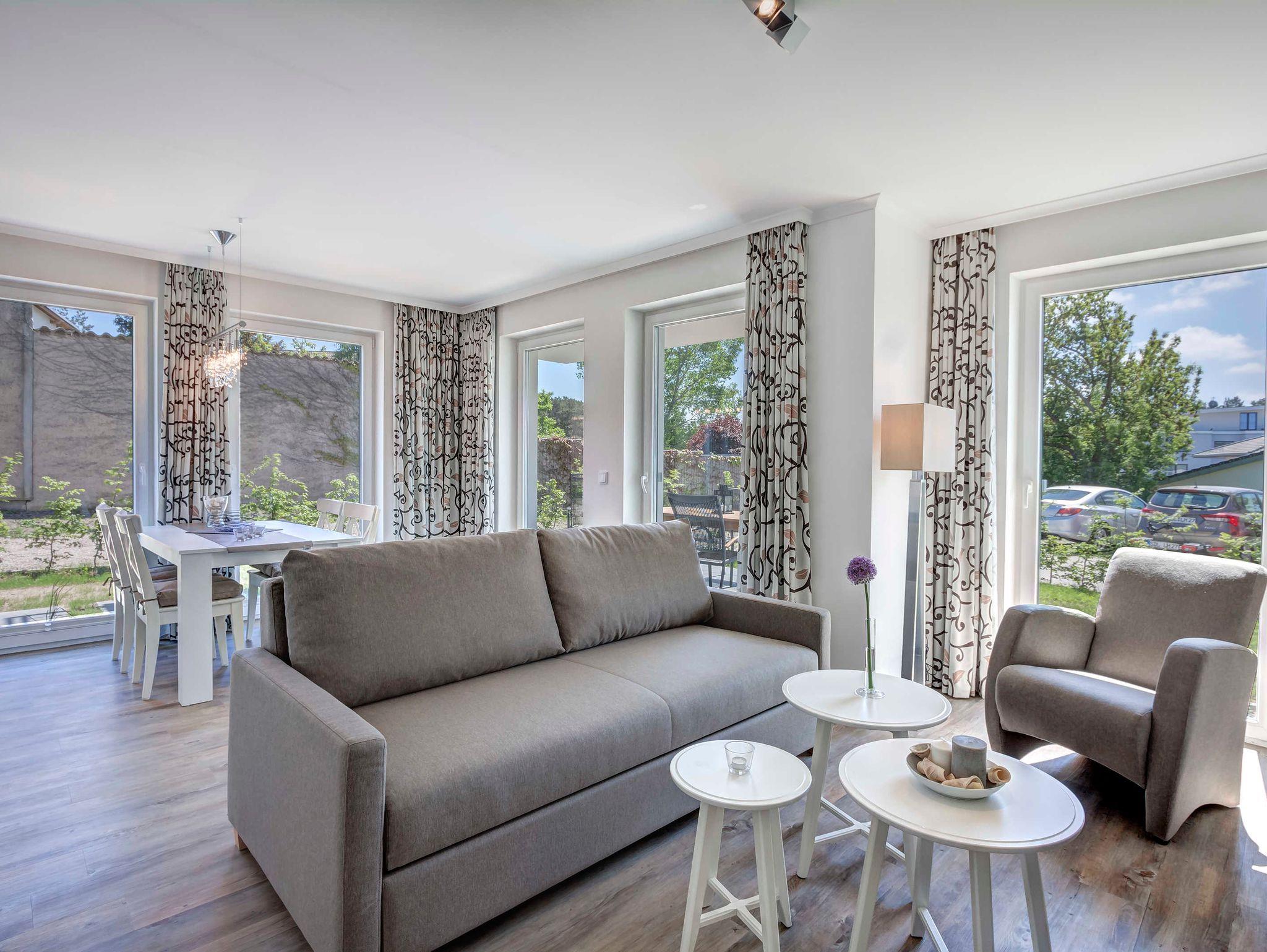 Neu! Baujahr 2017! Moderne 3-Zimmer-Erdgeschoßwohnung mit SÜDTERRASSE! Komfortabel eingerichtet mit sehr guter Ausstattung! 2 separate Schlafzimmer, 2 Bäder (1 Wannenbad, 1 Duschbad), großzügiger Wohnbereich mit moderner offener Küche und schickem Essplatz, möblierte Terrasse. Die Wohnung verfügt über einen Pkw-Stellplatz auf dem Grundstück. Die Strandpromenade ist ca. 300m entfernt. Zum Ortszentrum und der bekannten Ahlbecker Seebrücke sind es ca. 8-10 Minuten zu Fuß.Die Zufahrt mit dem Auto erfolgt über die Ferdinand-Egelinski-Straße.