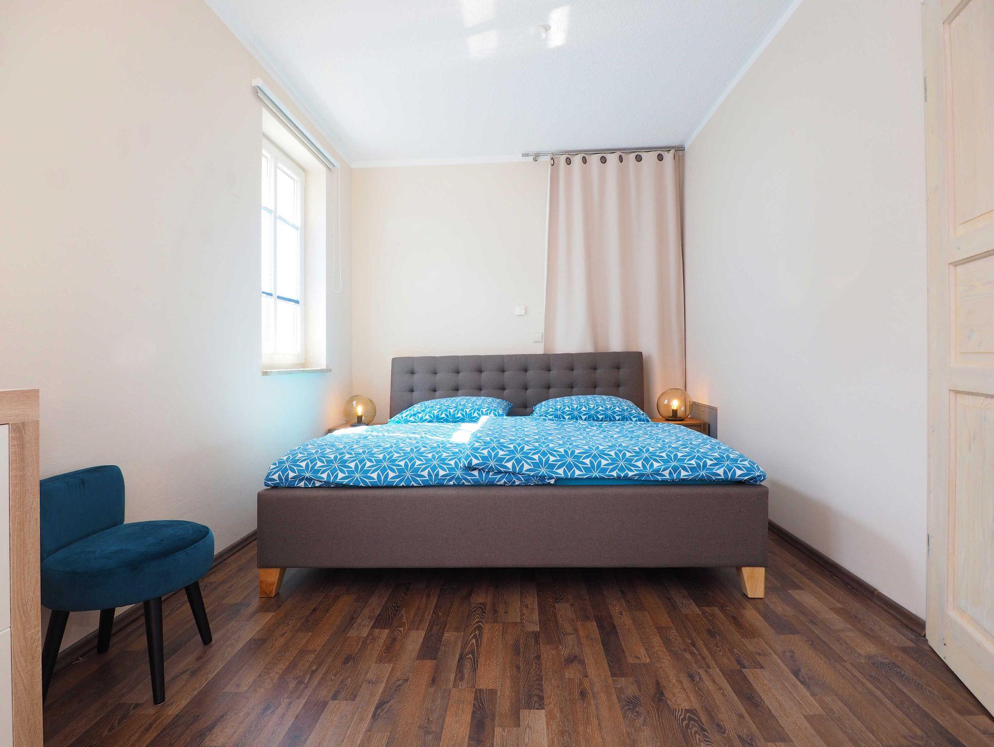 Im Schlafzimmer erwartet Sie ein gemütliches Doppelbett und genügend Stauraum für Ihre Urlaubsgarderobe. Das 2. TV-Gerät lädt zu gemütlichen Fernsehabenden ein.