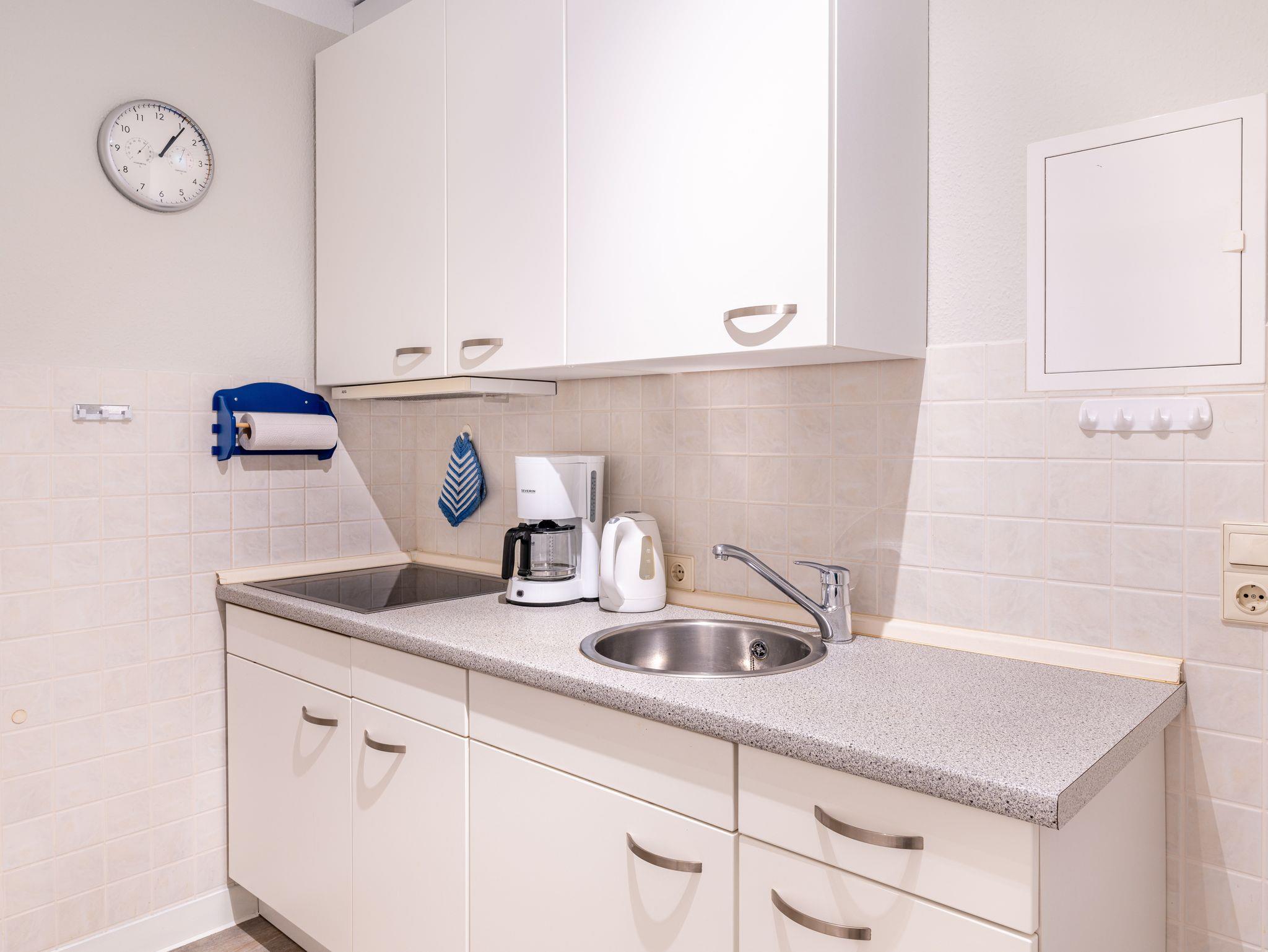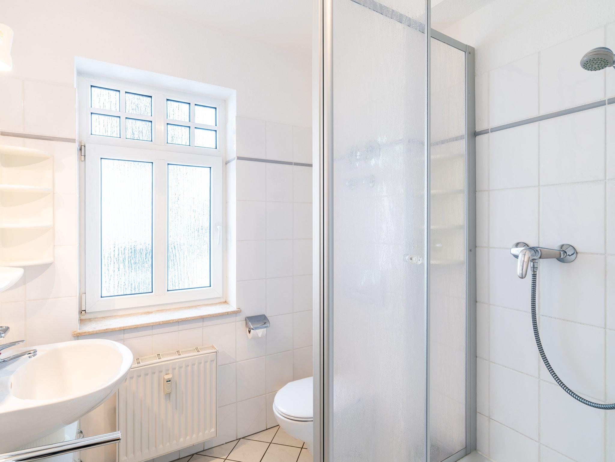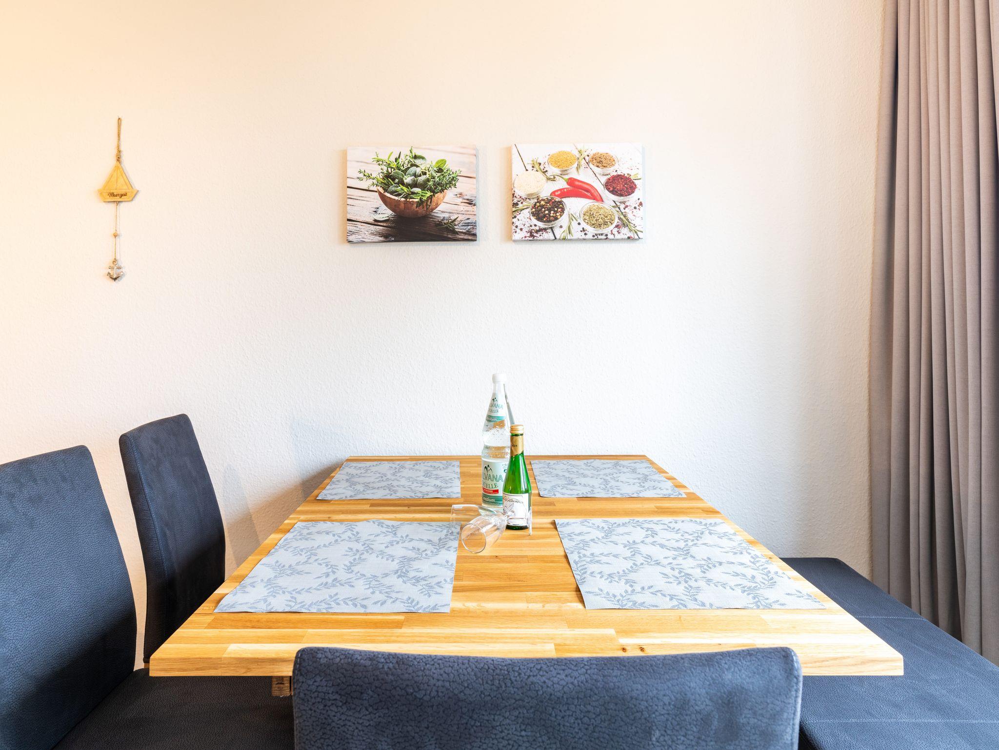Die 46 qm große Wohnung befindet sich im ersten Obergeschoss und ist für drei Personen ausgestattet. Die Wohnung verfügt über ein separates Schlafzimmer mit Doppelbett und Sitzgelegenheit, ein geräumiges Wohnzimmer mit Schlafcouch und einem Essplatz. Die kleine Küchenzeile ist mit Kühlschrank, Herd u.v.m. ausgestattet. Bad mit Dusche und WC.