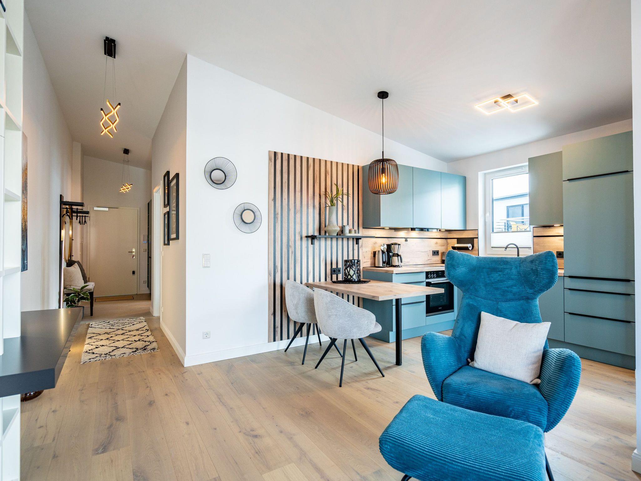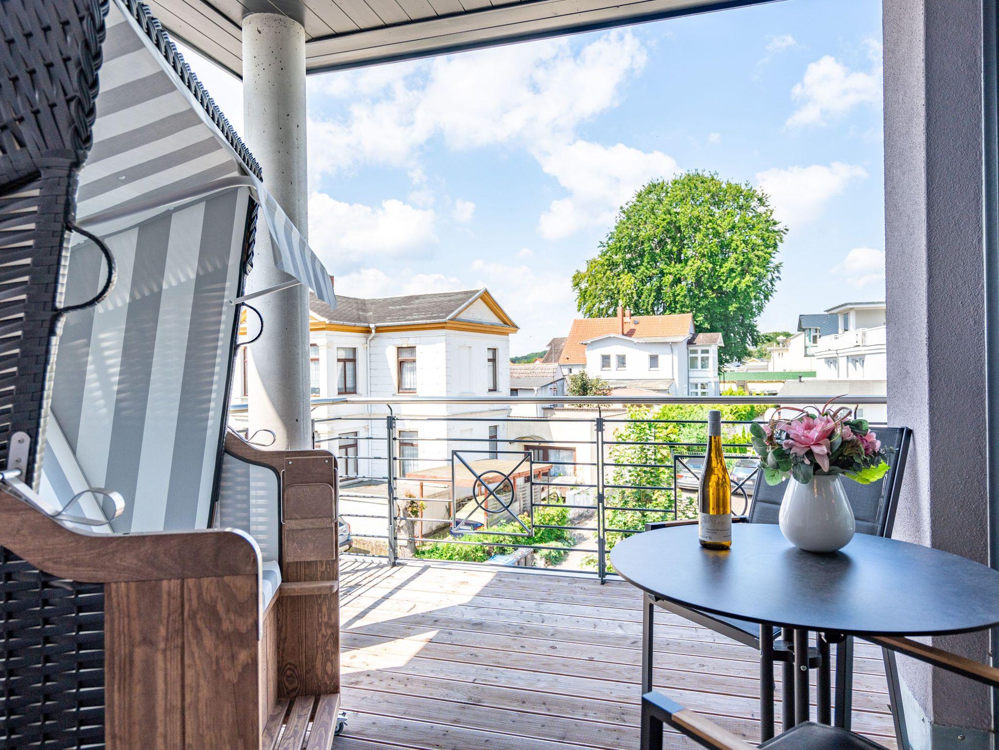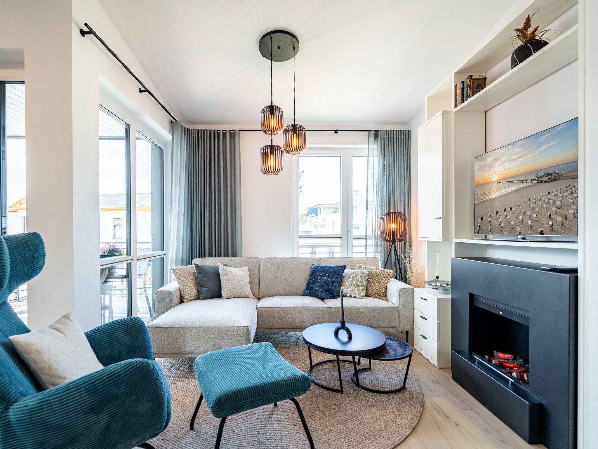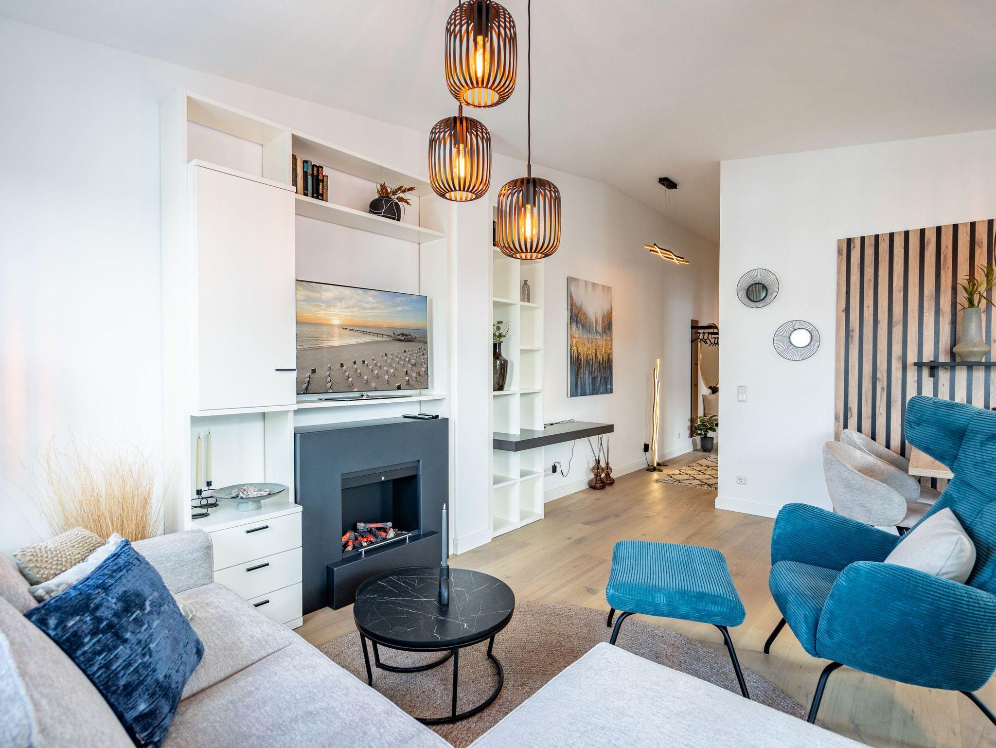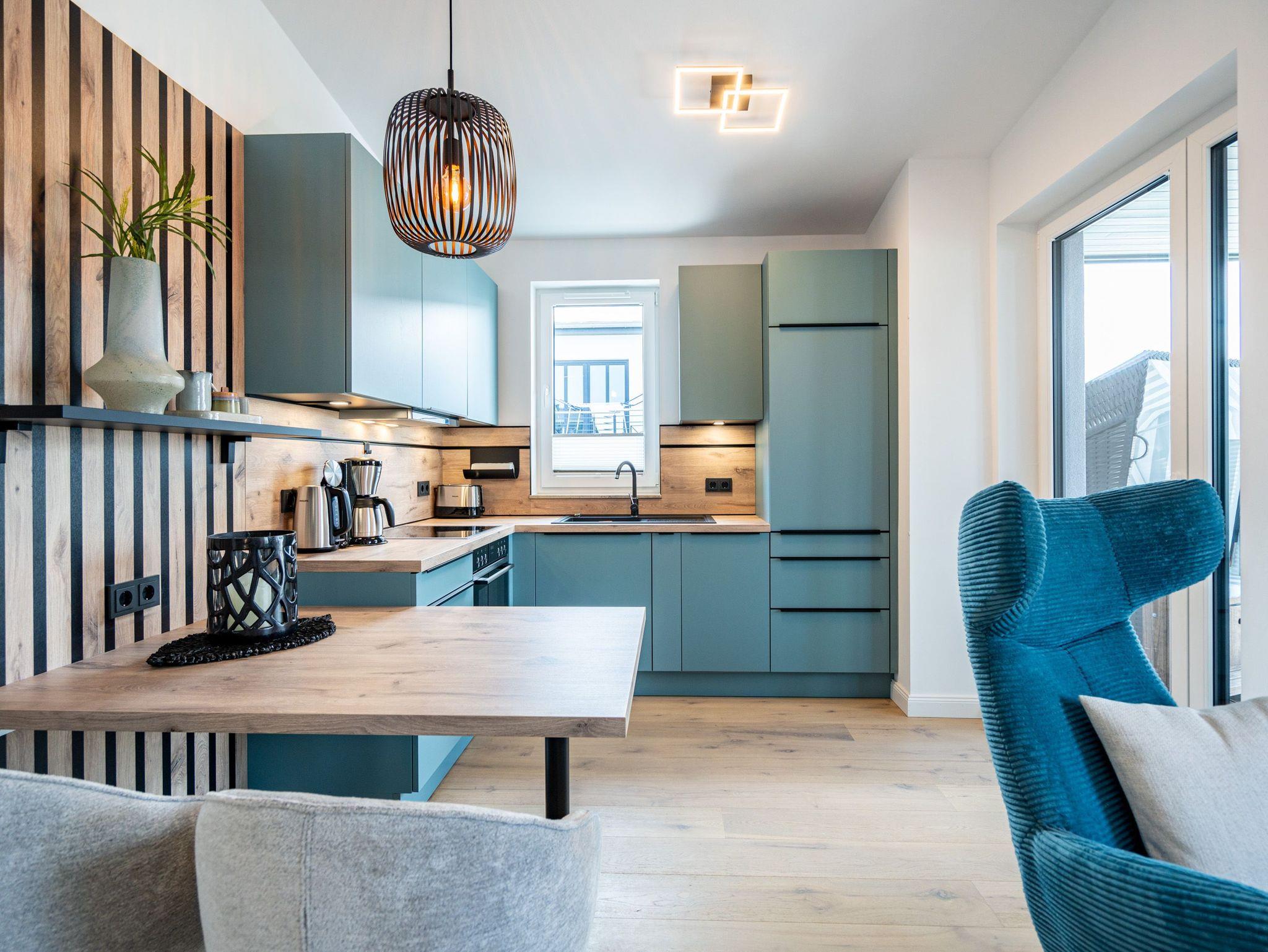 Willkommen in unserem charmanten 2-Raum-Appartement im Dachgeschoss des exklusiven Quartier 6, ideal für einen unvergesslichen Urlaub zu zweit. Auf großzügigen 57 Quadratmetern erwartet Sie ein offener Wohnbereich, der keine Wünsche offen lässt. Die voll ausgestattete Küchenzeile bietet Ihnen modernste Annehmlichkeiten wie ein Induktionskochfeld und einen Backofen. Hier können Sie Ihre Lieblingsgerichte zaubern und diese anschließend am gemütlichen Essplatz genießen. Der behagliche Wohnbereich lädt mit einer bequemen Sitzecke, einem Elektrokamin mit Fernbedienung und einem Flat-TV zu entspannten Abenden ein. Von hier aus gelangen Sie direkt auf die 12 Quadratmeter große Süd-West-Dachterrasse, die mit Gartenmöbeln und einem Strandkorb ausgestattet ist und einen seitlich eingeschränkten Blick zur Ostsee bietet. Das Schlafzimmer besticht durch ein komfortables Boxspringdoppelbett (1,80m x 2,00m), einen geräumigen Kleiderschrank und einen zusätzlichen Flat-TV, damit Sie es sich auch hier rundum gemütlich machen können. Im eleganten Badezimmer finden Sie eine Dusche, ein WC, einen Doppelwaschtisch und eine Finnische Sauna, die zum Entspannen einlädt. Ihr Fahrzeug parken Sie bequem auf dem Stellplatz N° 09 in der Tiefgarage, und für Ihre Fahrräder steht Ihnen ein wohnungseigener Abstellraum im Keller zur Verfügung. Dieses Appartement bietet Ihnen alles, was Sie für einen erholsamen Aufenthalt benötigen. Wir freuen uns darauf, Sie in unserem Quartier 6 willkommen zu heißen!