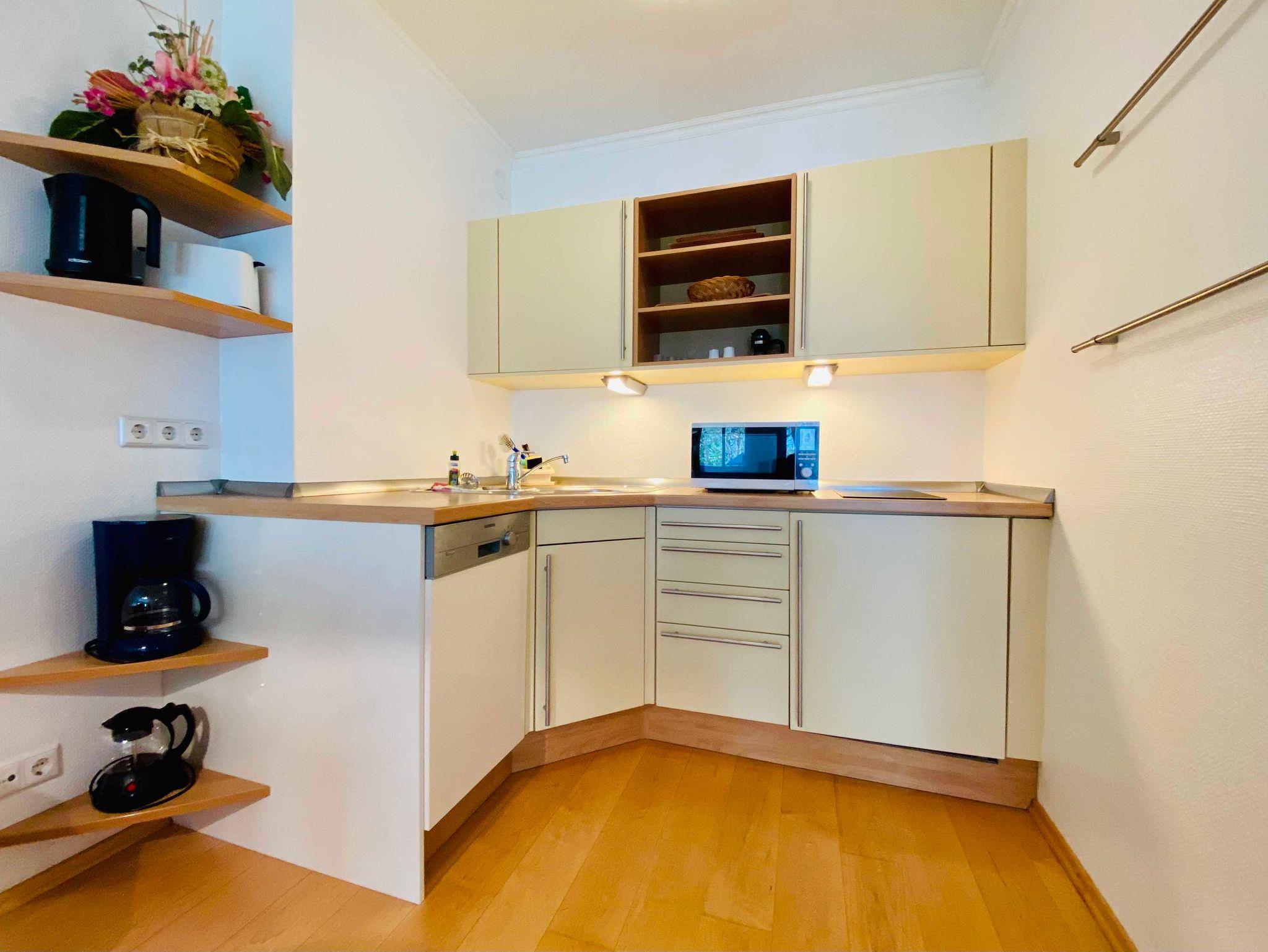 Die Suite Strandglück ist ein Zweiraumappartement mit direktem Blick auf den Usedomer Strand bzw. auf die bewaldete Düne. Sie verfügt über eine offene Küchenzeile mit Geschirrspüler, Kaffemaschine, Toster, Wasserkocher, Zweiplattenherd sowie einer Mikrowelle. Das Schlafzimmer ist wie das Wohnzimmer mit Teppichboden ausgelegt und besitzt ein Doppelbett sowie einen Schreibtisch am Fenster. Die 3. und 4. Person haben auf der Schlafcouch im Wohnzimmer die Möglichkeit zu schlafen. Das Badezimmer ist mit einer Badewanne und Dusche ausgestattet. Die Suite Strandglück ist durch Ihre Lage und Ihre Ausstattung bei Gästen beliebt, die die Ruhe lieben. Zu Ihrer Wohnung gehören ein kleiner Balkon in Richtung See und ein Tiefgaragenstellplatz für max. Höhe 1,50m.