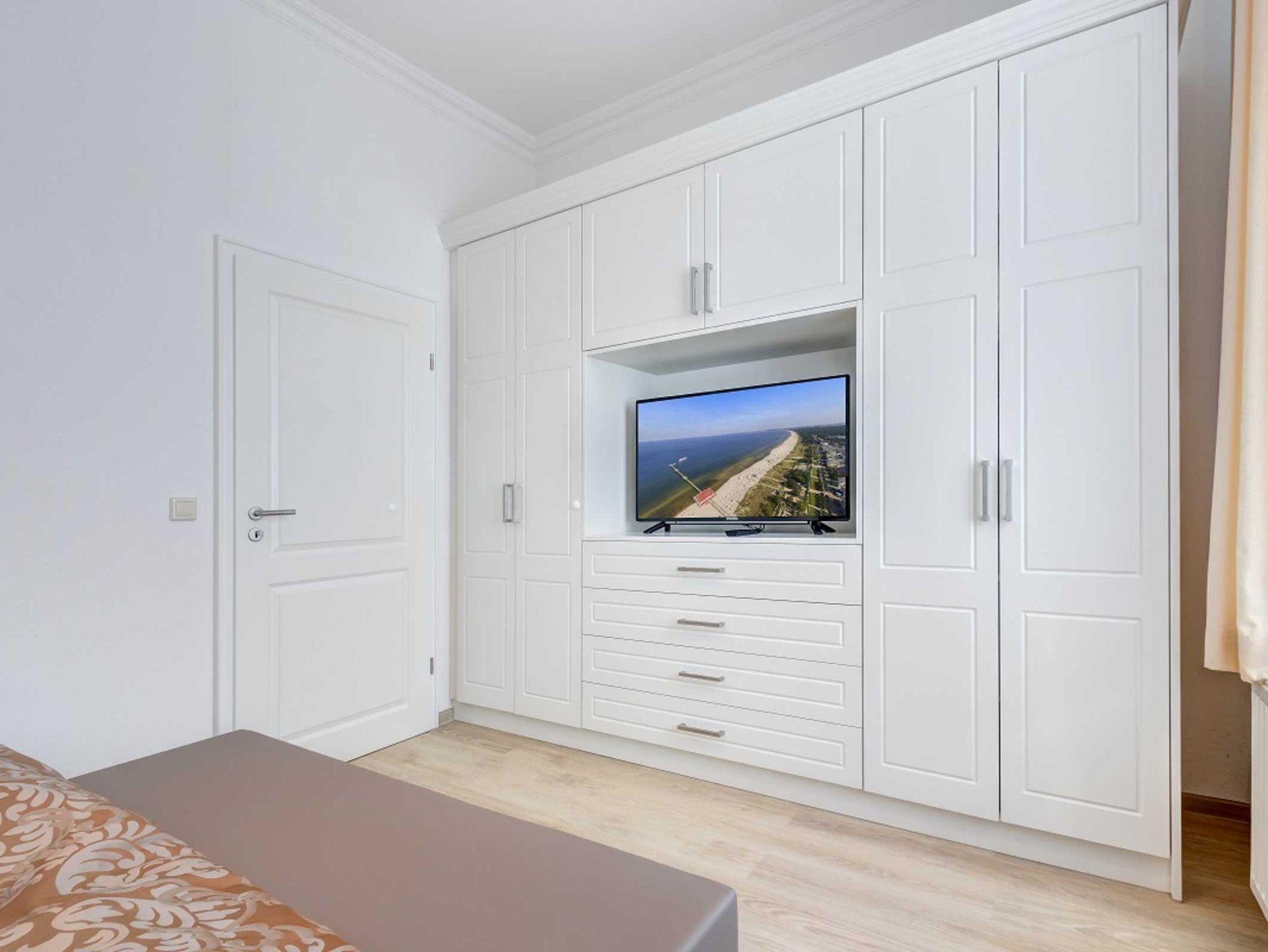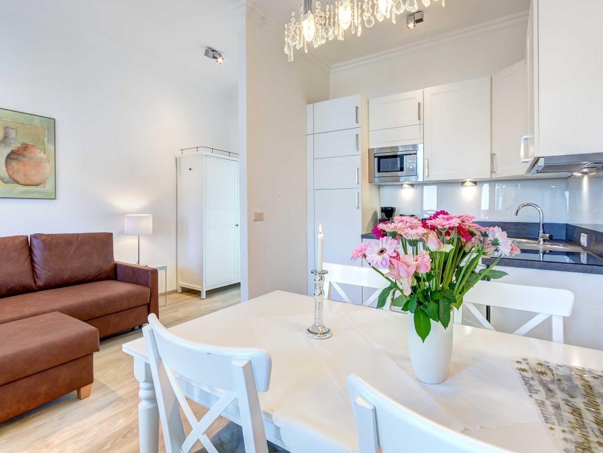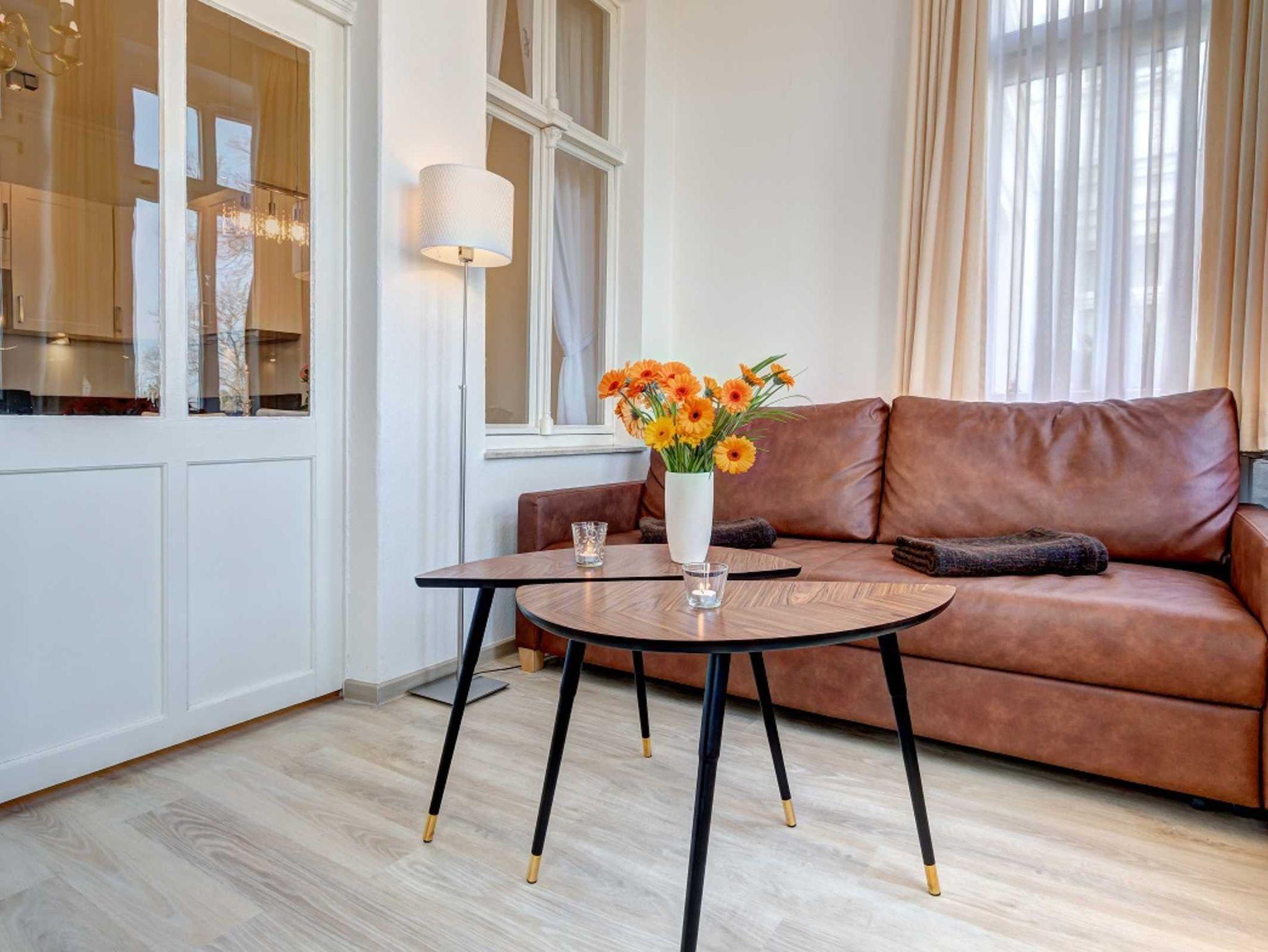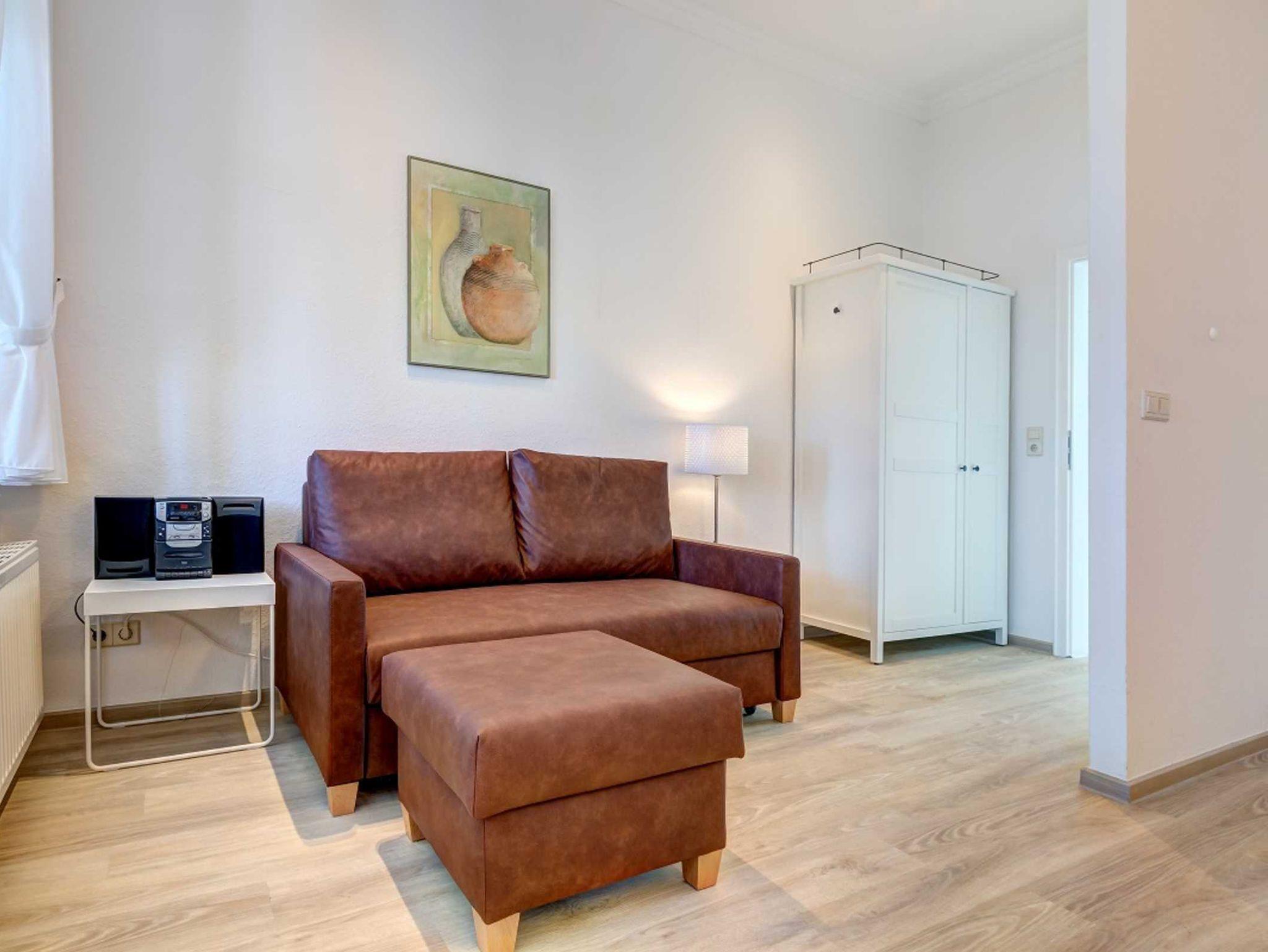 Das komfortable 3-Zimmer-Appartement EG 3 befindet sich im Erdgeschoss der Villa Germania nur 40 Meter vom Strand entfernt und hat einen separaten Eingang. Es verfügt über ein separates Schlafzimmer mit einem großen Doppelbett, einem Kombiraum mit Doppelbett, Essbereich sowie einer integrierten Küchenzeile, die mit Kaffeemaschine, Wasserkocher, Toaster, Mikrowelle, Backofen und Geschirrspüler voll ausgestattet ist. Der Wohnbereich befindet sich in der geschlossenen, verglasten Veranda, von welcher aus Sie einen direkten Zugang in den großen möblierten Garten und auf die Terrasse haben. Außerdem hat die Wohnung einen Südbalkon, auf welchem Sie bis Abends die Sonne genießen können. Das Bad ist mit einer Wanne und Dusche sowie WC ausgestattet.