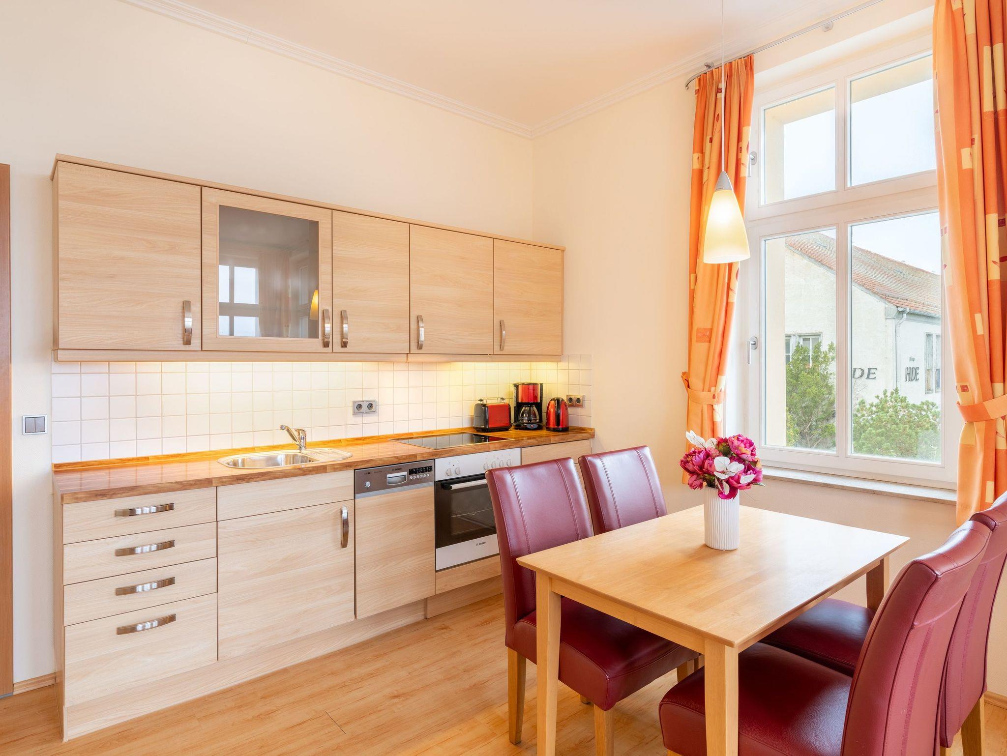 Herzlich Willkommen! In dem gemütlichen Appartement Nr. 8 im 1. Obergeschoss der Villa Anna begrüßen wir bis zu drei Personen auf 55 Quadratmetern zu erholsamen Urlaubstagen.