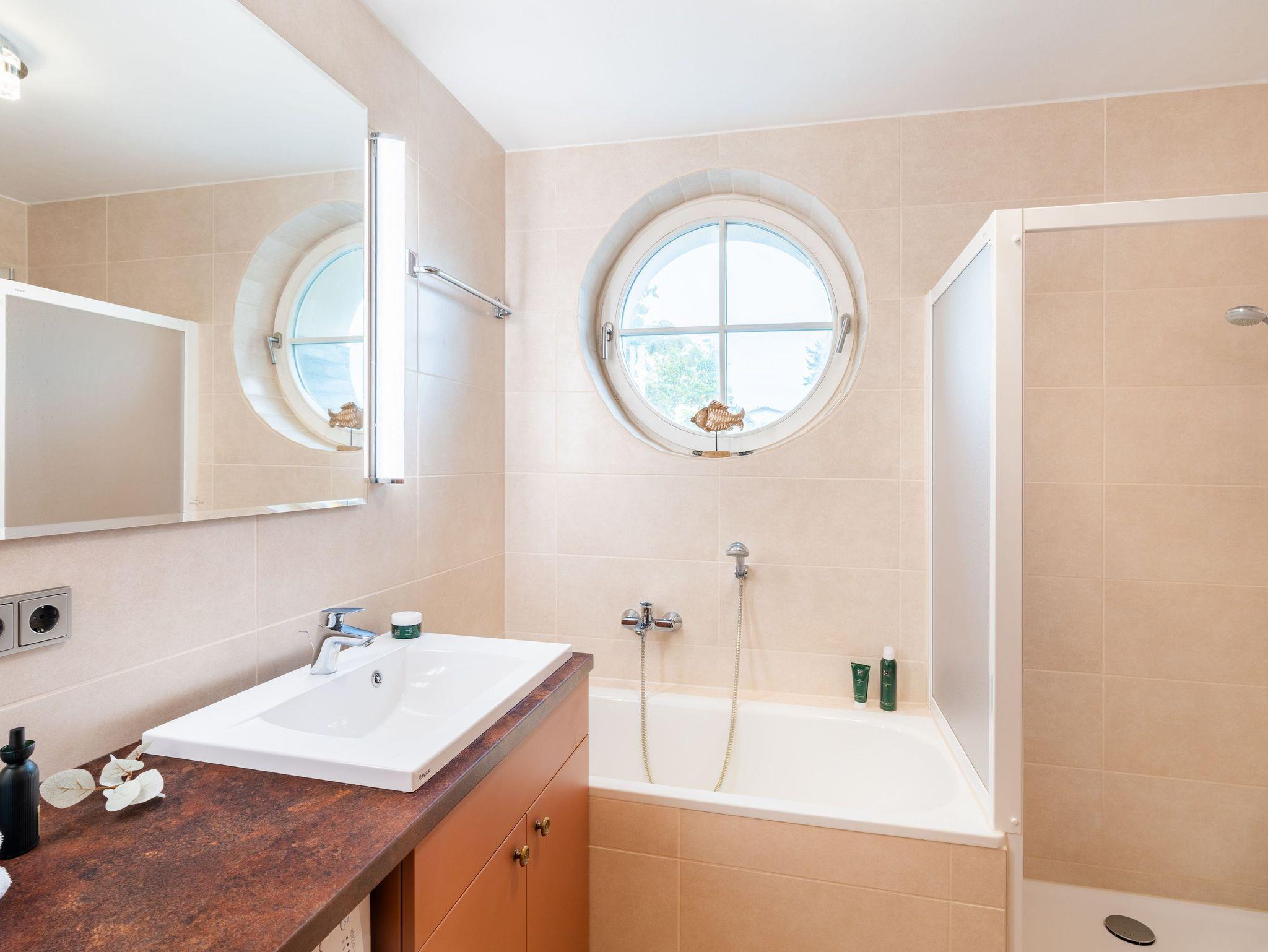 Das Wohnzimmer mit bequemer Couch (mit Schlaffunktion), Flat TV und Esstisch für 4 Personen lädt zum gemütlichen Beisammensein ein. Vom Sofa aus genießen Sie Ihre Lieblingsserie oder ziehen Sie sich mit einem spannenden Buch zurück. Die Küche lässt keine Wünsche offen: Kühlschrank mit Gefrierfach, 4fach-Kochfeld, Backofen, Geschirrspülmaschine, Kaffeemaschine und Wasserkocher u.v.m.. Das freundliche Schlafzimmer verfügt über ein Doppelbett (180 x 200cm), einen geräumigen Kleiderschrank für Ihr Reisegepäck sowie Flat TV. Dank der Schlafcouch im Wohnbereich können bis zu drei Personen gemeinsam Ihren Urlaub in dem Appartement verbringen.