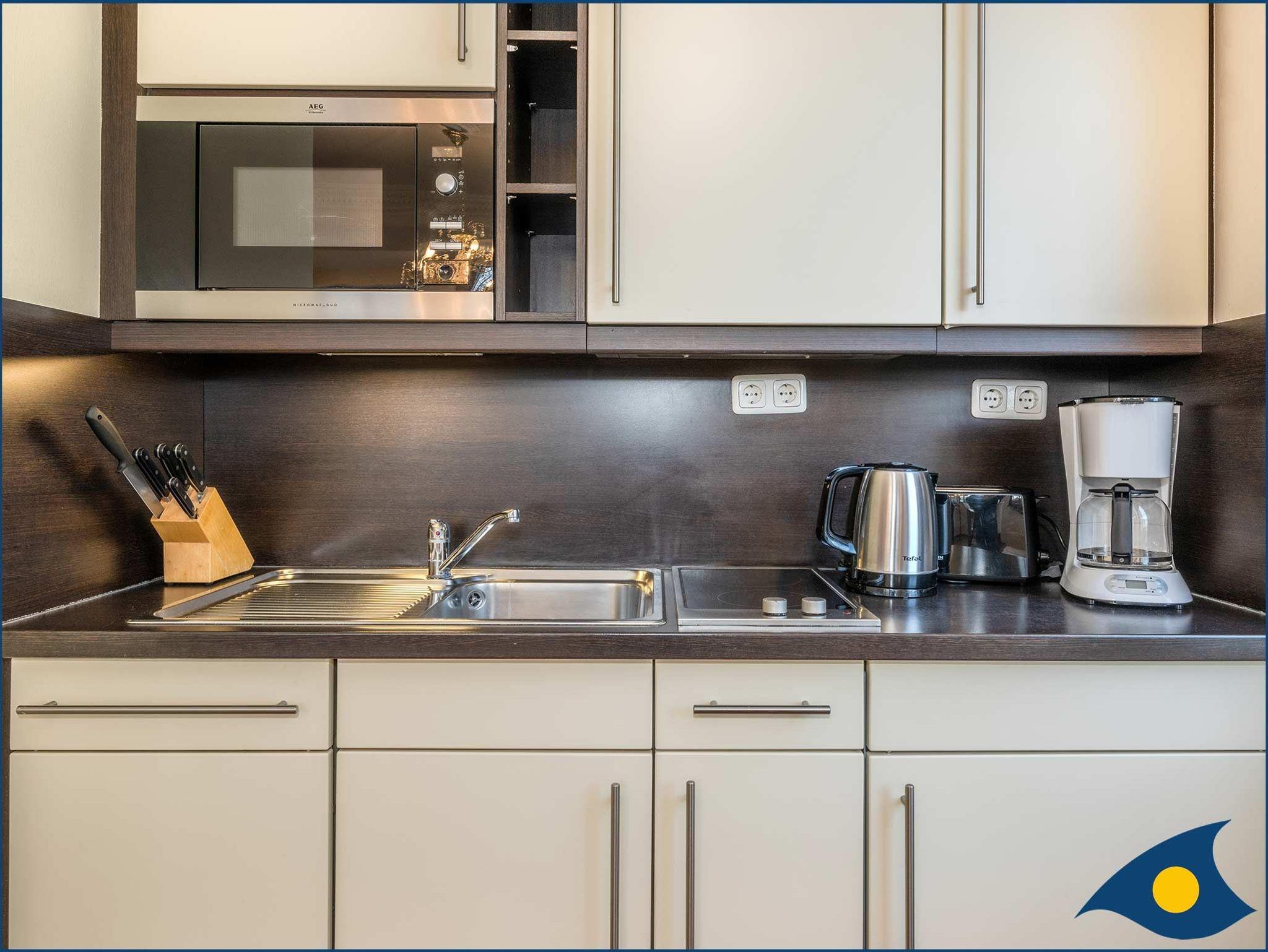 • offene Küche mit Spülmaschine und Mikrowelle