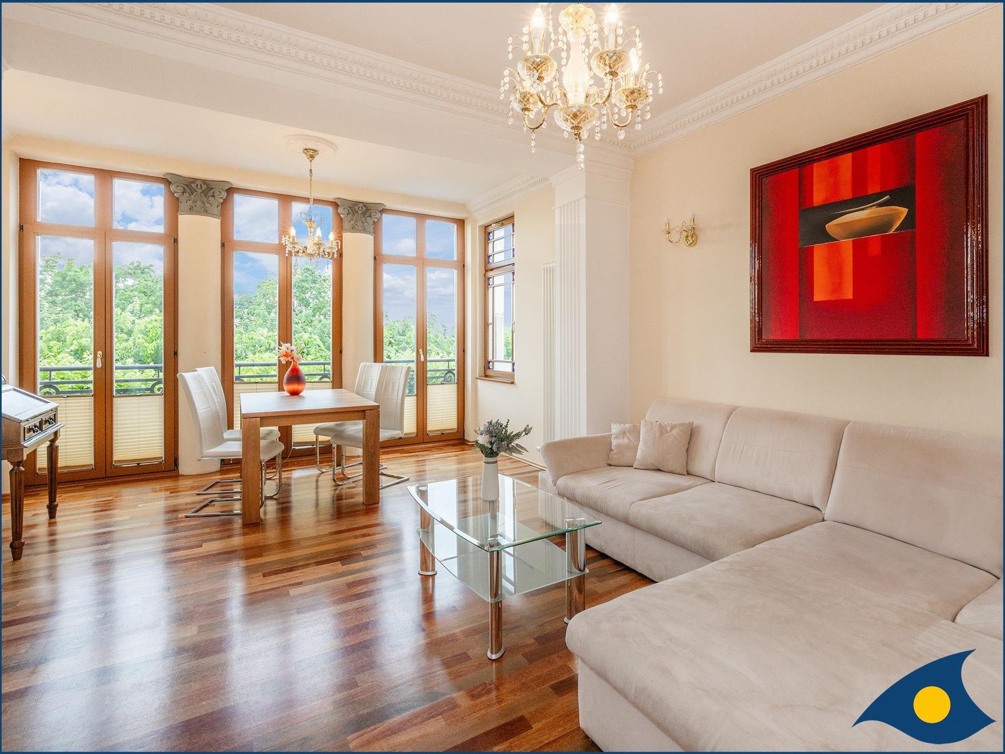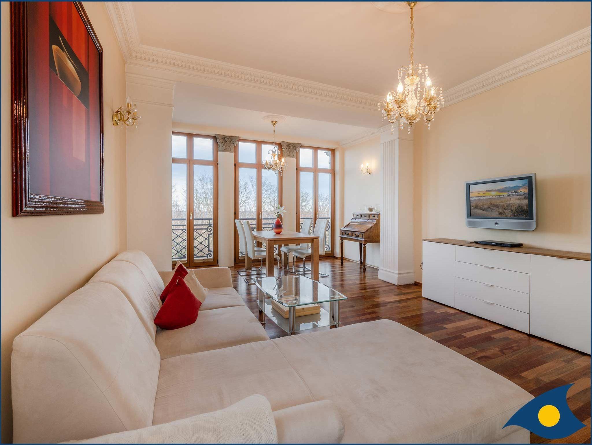 Diese großzügige Ferienwohnung im 1. Obergeschoss der Villa bietet Ihnen einen wundervollen Blick auf die Ostsee.