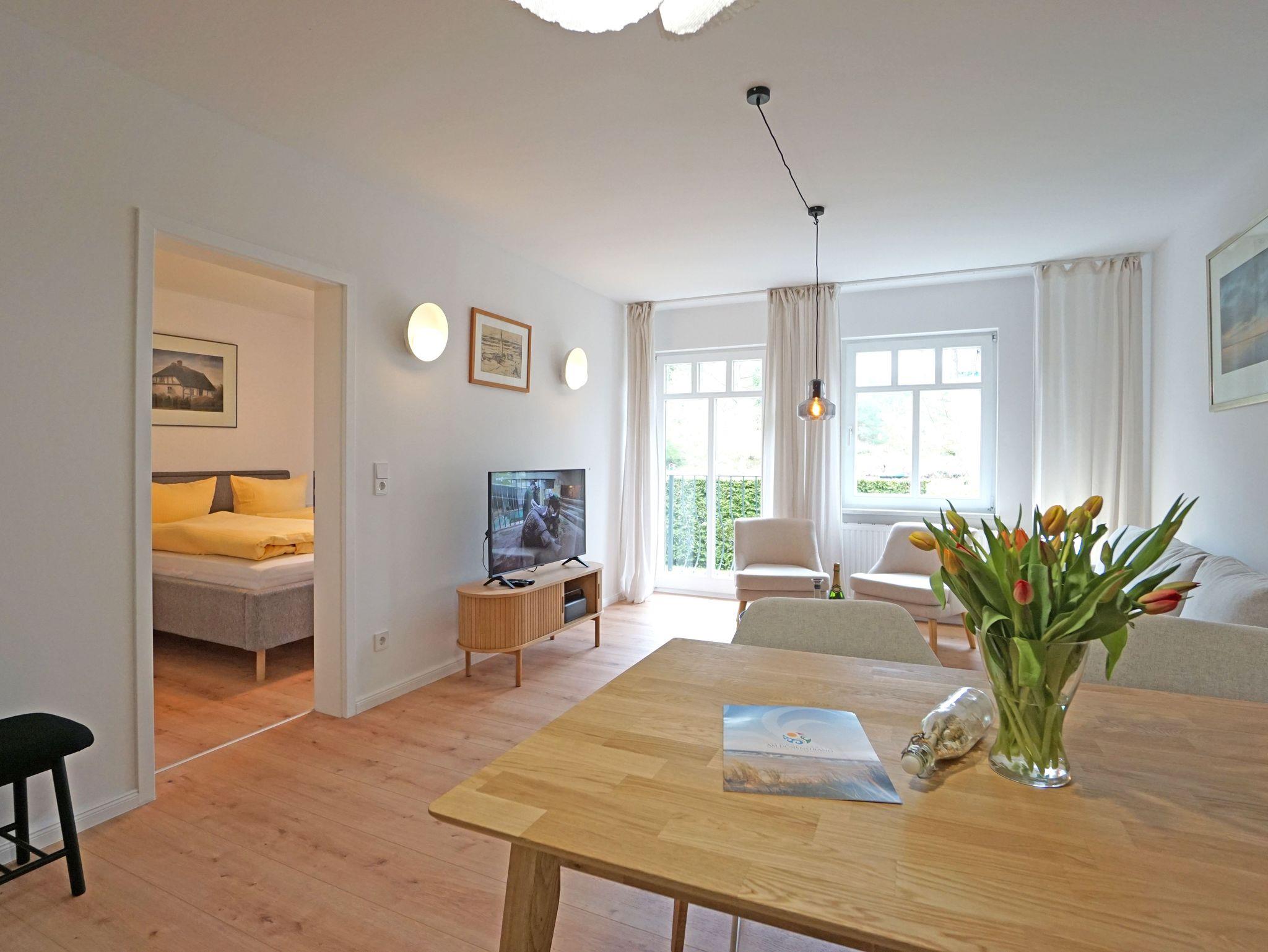 Das Appartement im Haus Tannenburg bietet auf 48m² Platz für 2 - 3 Personen. Es verfügt über ein Schlafzimmer mit Doppelbett, ein Bad mit Dusche. Im Wohnzimmer befinden sich eine komplett ausgestattete Küchenzeile sowie eine ausziehbare Couch als Schlafplatz für die dritte Person. Zudem verfügt das Appartement über einen kleinen Balkon in Südlage. Hier können Sie die Sonne genießen, Frühstücken, entspannen und den Tag ausklingen lassen.