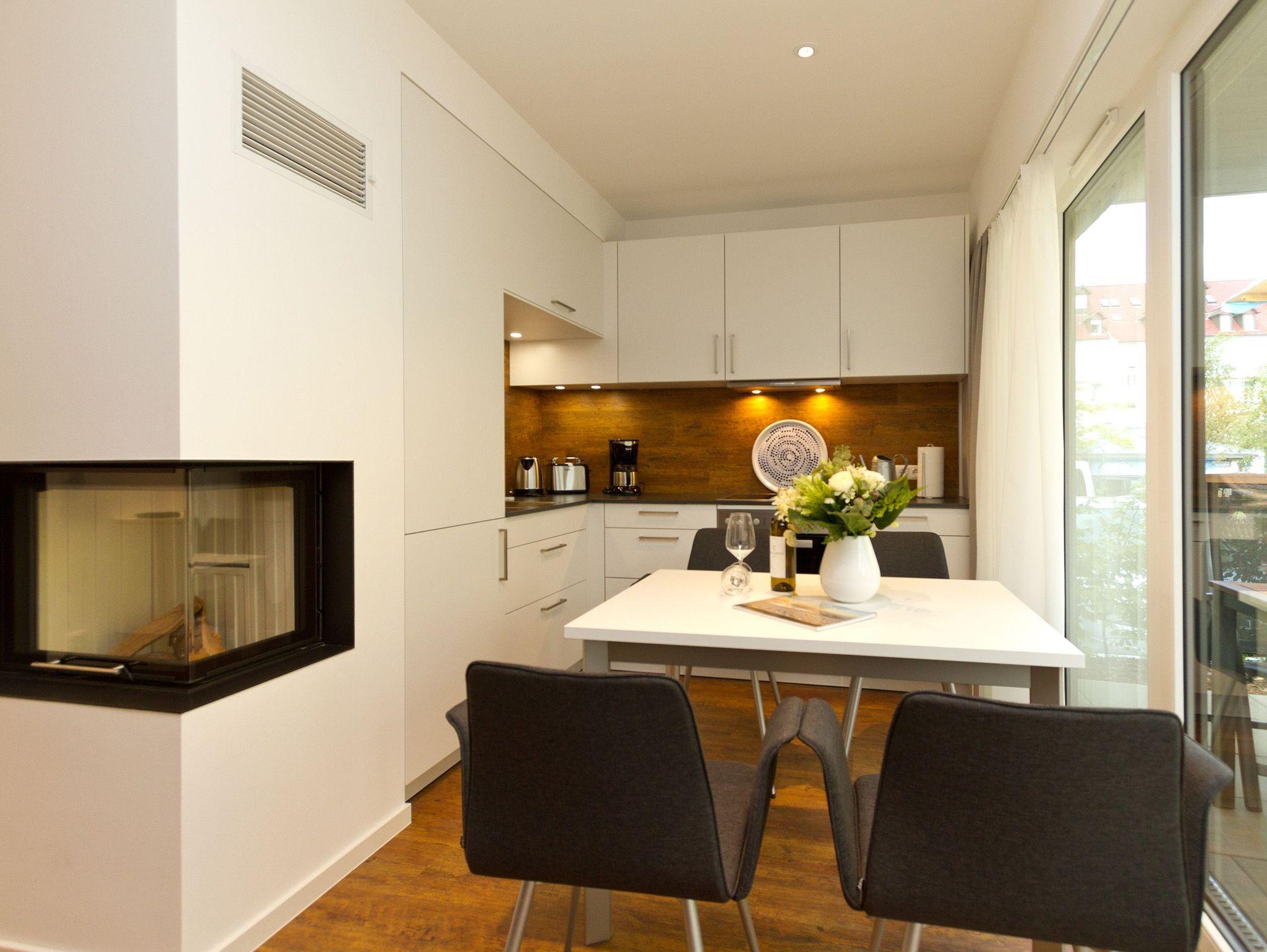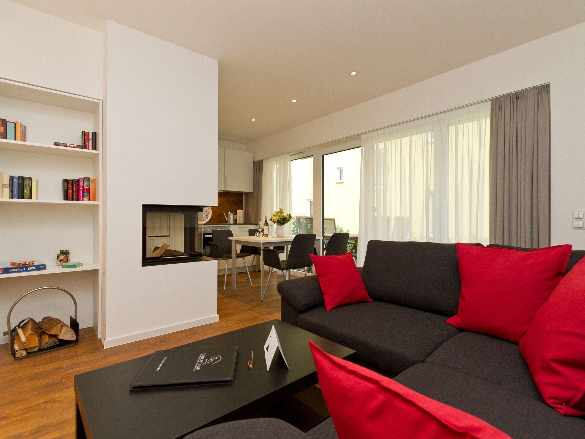 Schon morgens wird der Frühstückstisch auf der Süd-Ost-Terrasse von der Sonne verwöhnt. So wird schon der Genuss des ersten Kaffees oder Tees zum Urlaub. Von hier aus geht?s in die offene Küche eines rundum kuscheligen und modernen Feriendomizils. Auf 64 Quadratmetern ist aller erdenkliche Urlaubskomfort geboten. Gönnen Sie sich Ihre Auszeit in diesem kleinen Paradies mit bis zu vier Personen. Eine bequeme Sofalandschaft lädt zum Entspannen ein. Der Kamin ? von drei Seiten aus einsehbar ? ist ein absoluter Hingucker. Die Küche ist mit allen Geräten und hochwertigem Geschirr ausgestattet. Elektronik? Auch hier ist das Appartement Nummer 02 im Erdgeschoss des Quartier Ahlbeck auf dem neuesten Stand. Egal ob Flat-TV, Kaffeemaschine oder Waschmaschine ? diese Wohnung hat all das und noch vieles Schöne mehr. Die beiden Schlafzimmer sind hell und freundlich eingerichtet und die Doppelbetten (1,80 m x 2,00 m) verheißen nicht nur beim Schlafen Freude. Die großen Schränke bieten viel Platz zur Ablage. Das Badezimmer verfügt über eine Dusche, einen Waschtisch, WC, die erwähnte Waschmaschine und eine Finnische Sauna. Genießen Sie das Schwitzen und Abschalten, Entspannen und Energietanken an ungemütlichen Tagen oder Abenden. Für Ihren Komfort sind die Betten bei Ihrer Anreise bezogen und Handtücher liegen für Sie bereit. Ein Pkw-Stellplatz steht am Haus zur Verfügung.