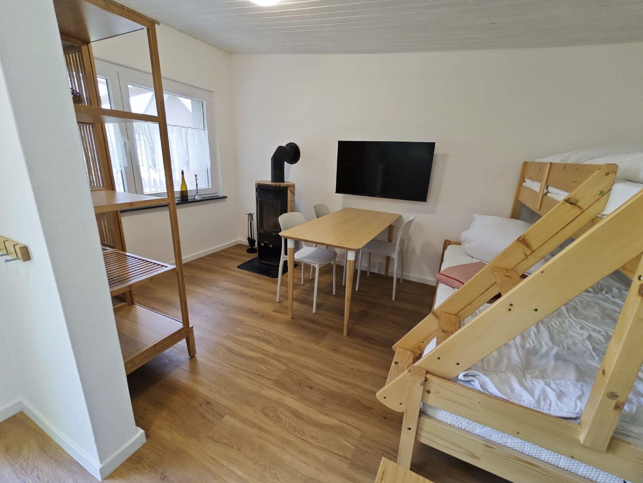 gefallen. Auf dem großen, grünen Grundstück in ruhiger und naturnaher Lage befindet sich das kleine Idyll. Ein einfach ausgestatteter Bungalow mit 24 qm bietet zwar nicht viel Platz, aber doch alles, was Sie zum Erholen brauchen. Starten Sie Ihren Tag doch mit einem frisch gekochten Kaffee auf der Terrasse und genießen Sie die Sonnenstrahlen. Vielleicht können Sie das Meer schon riechen. Nur 15 Minuten Fussweg trennen Sie von der Ostsee. Der kilometerlange Sandstrand der Insel lädt zu einem ausgiebigen Spaziergang entlang der Kaiserbäder ein. Zurück im kleinen Häuschen können sie sich im unteren Bereich vom Etagenbett auf einer 140 cm breiten Matratze entspannen und für einen dritten Gast gibt es im oberen Teil vom Etagenbett auf 90 cm Breite genügend Platz. Für romantische und kältere Stunden lädt ein Kaminofen ein. Eine weitere Heizung ist nicht vorhanden. Das Bad hat ein WC und eine Dusche mit einem kleinen Durchlauferhitzer. Für Naturmenschen gibt es eine Solardusche auf dem Grundstück. Auf wenigen Quadratmetern finden Sie bei uns all das, was Sie brauchen: eine kleine Singel-Küche (ohne Warmwasser) mit Kühlschrank und zwei Herdplatten, Kaffeemaschine, Toaster, Wasserkocher und Küchenausstattung. Es ist ein Fernseher und Internet, sowie ein Stellplatz vorhanden und für unsere sportlichen Gäste haben wir genug Platz, um Fahrräder abzustellen.