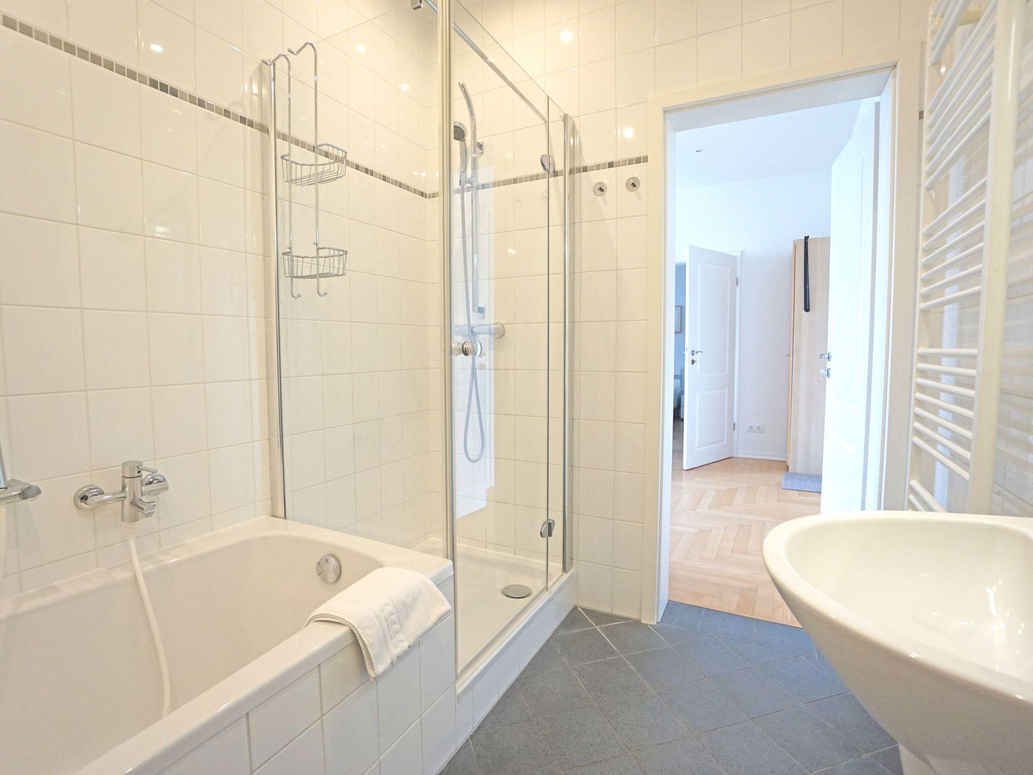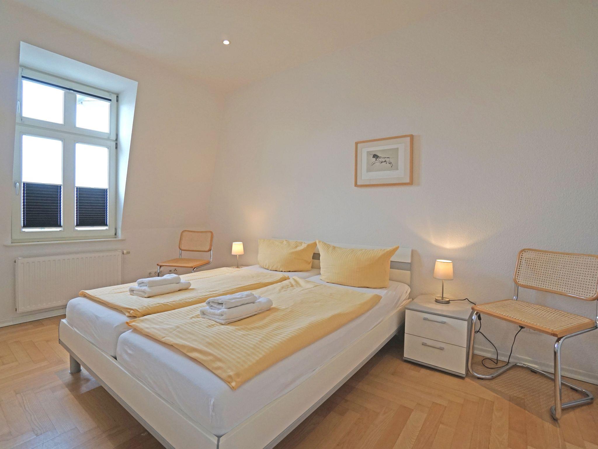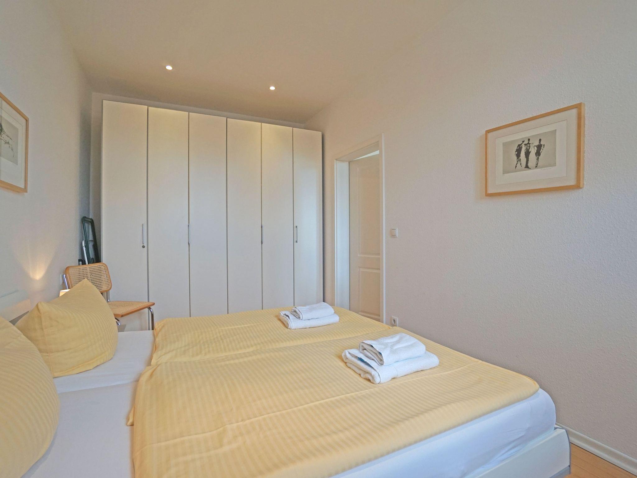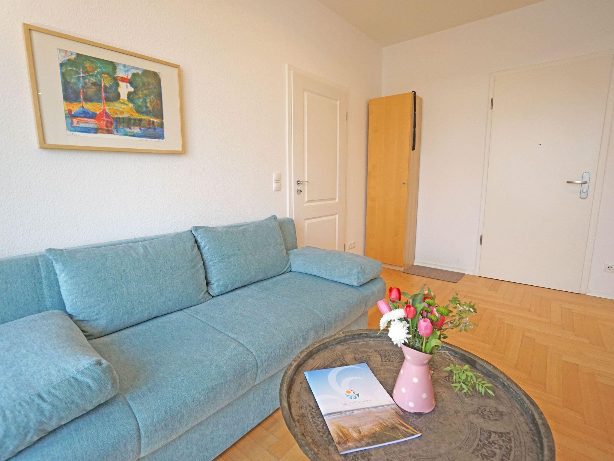Die großzügige und modern eingerichtete 2-Zimmer Nichtraucherwohnung (42m²) liegt im obersten Stockwerk (2. Etage)der 2005 restaurierten Villa Quisisana. Die Wohnung verfügt über ein Schlafzimmer mit Doppelbett und einen sonnigen Balkon in Südwestlage. Im großen Wohnzimmer befindet sich eine komplett eingerichtete Küchenzeile, ein Essplatz sowie eine Sitzgruppe mit einer Schlafcouch (Liegefläche:1,20m).