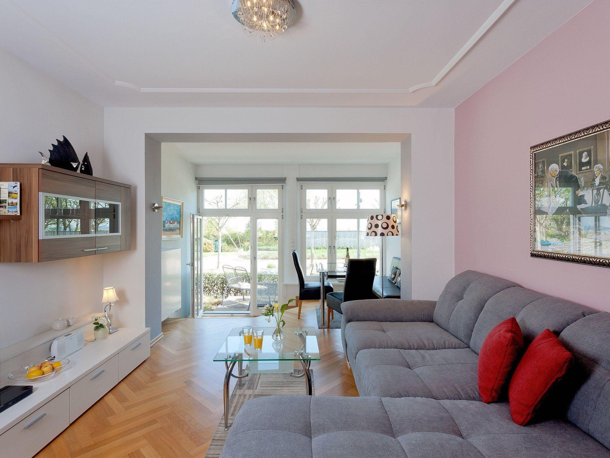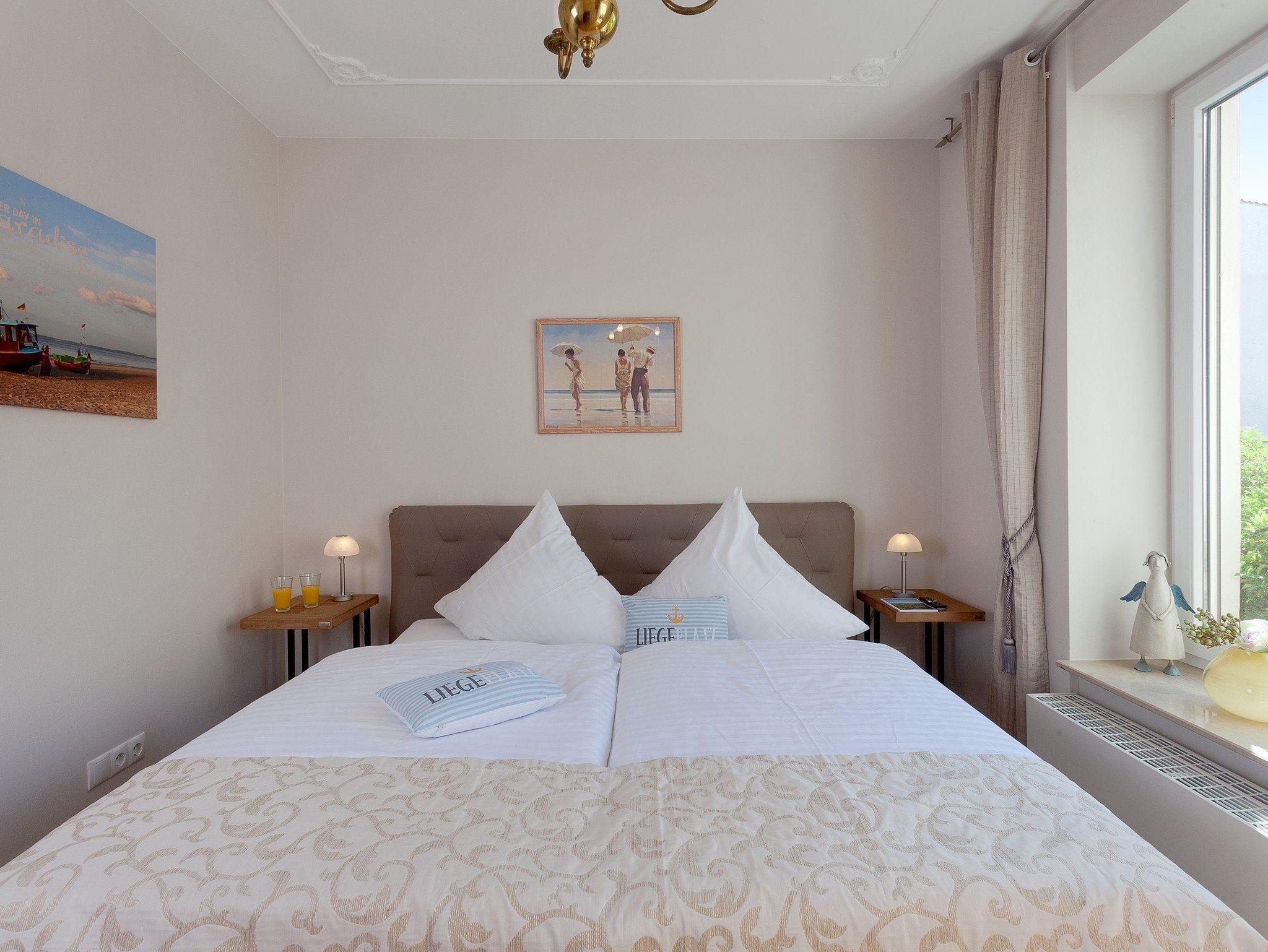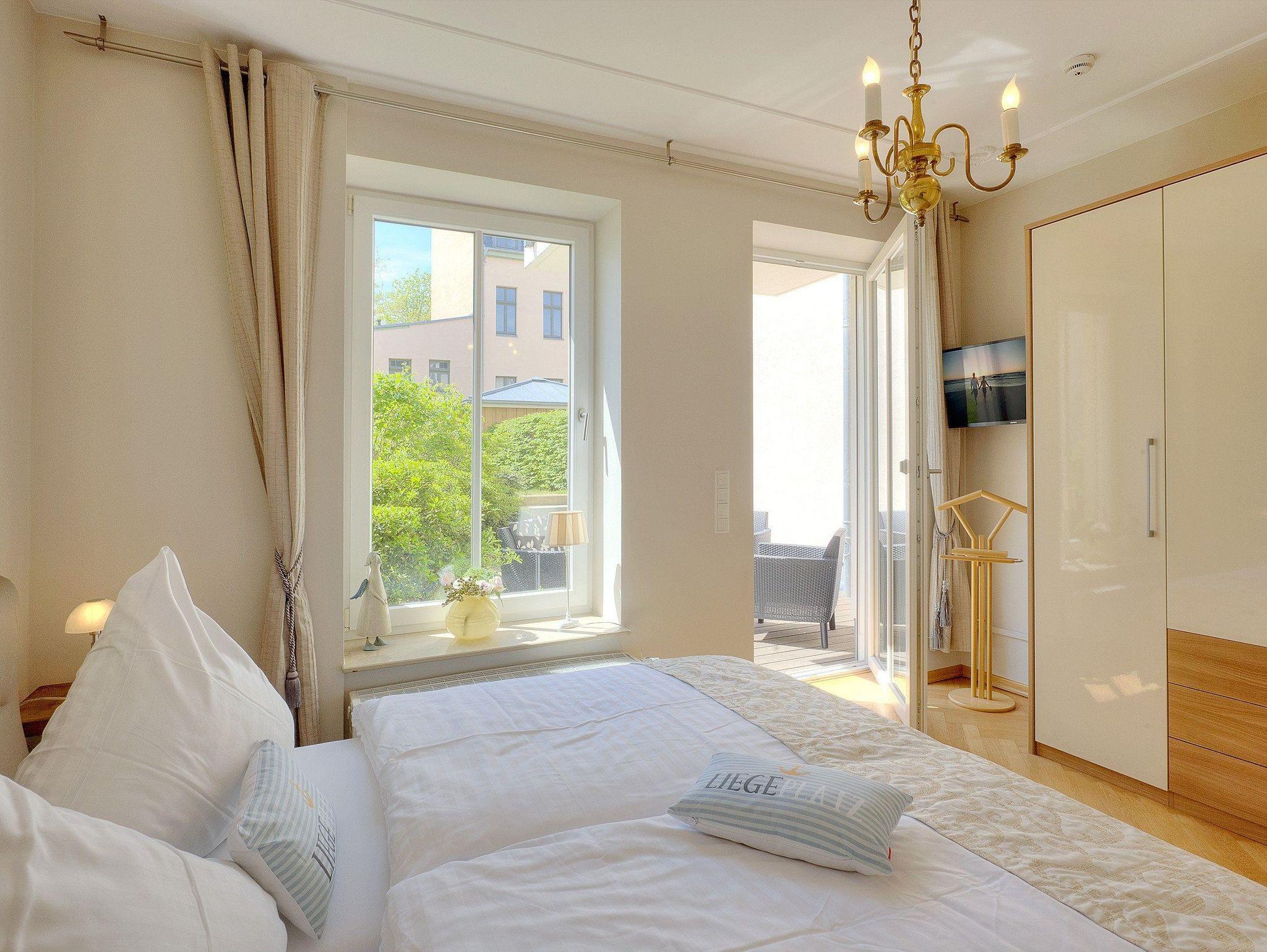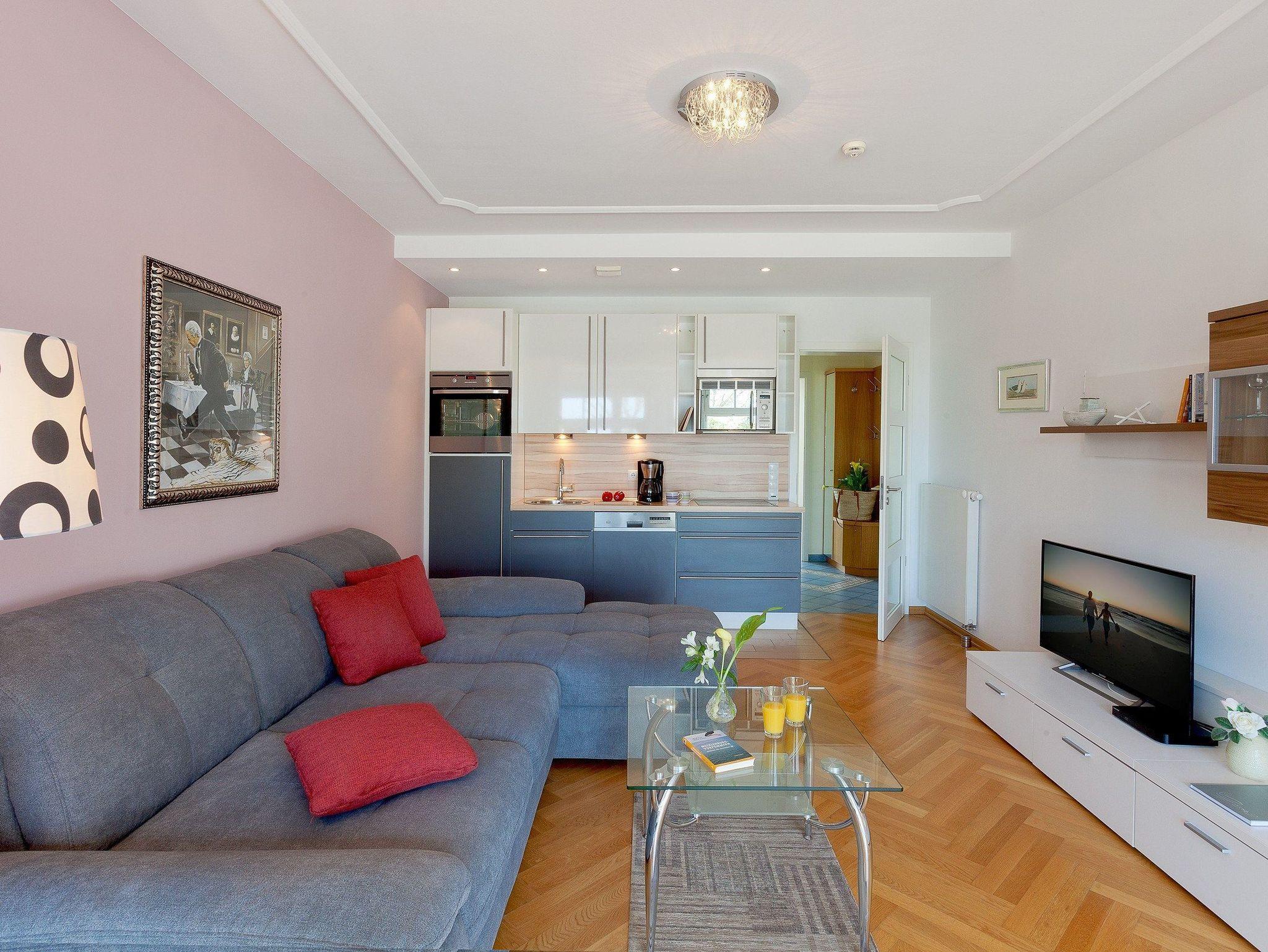 Bäderarchitektur und moderne Eleganz erwartet Sie in unserem komfortablen Appartement Nr. 2 der Villa Louise auf insgesamt 55 Quadratmetern. Im großzügigen Wohnraum mit schöner Sitzecke und gemütlichem Ecksofa können Sie alle News im TV verfolgen. Eine perfekt ausgestattete Küche mit allem Komfort wie: Backofen, Kühlschrank mit Gefrierfach, Geschirrspüler, Mikrowelle, Wasserkocher, Toaster, Kaffeemaschine und vielem mehr, was das Herz eines Hobbykochs höher schlagen lässt. Das frisch und freundlich gestaltetes Bad mit Dusche, WC und einem Haarfön lädt zum privaten Wellness nach dem Sonnenbaden oder dem Sprung ins Meer ein. Das Schlafzimmer überzeugt mit komfortablem Doppelbett (170 x 200cm / zwei getrennte Matratzen): hier haben Sie die Möglichkeit sich in Ruhe zurückzuziehen. Ein TV im Schlafzimmer rundet den komfort ideal ab.
