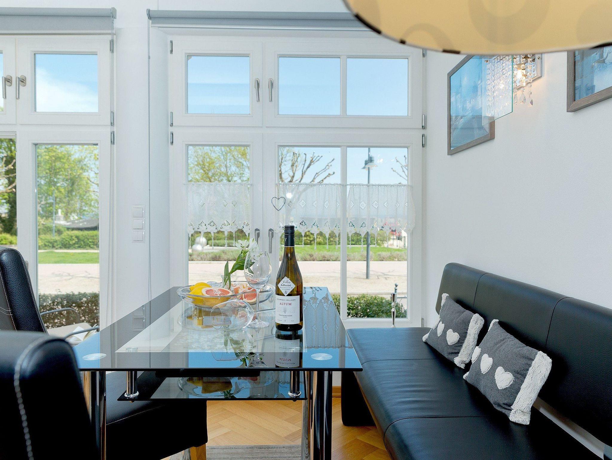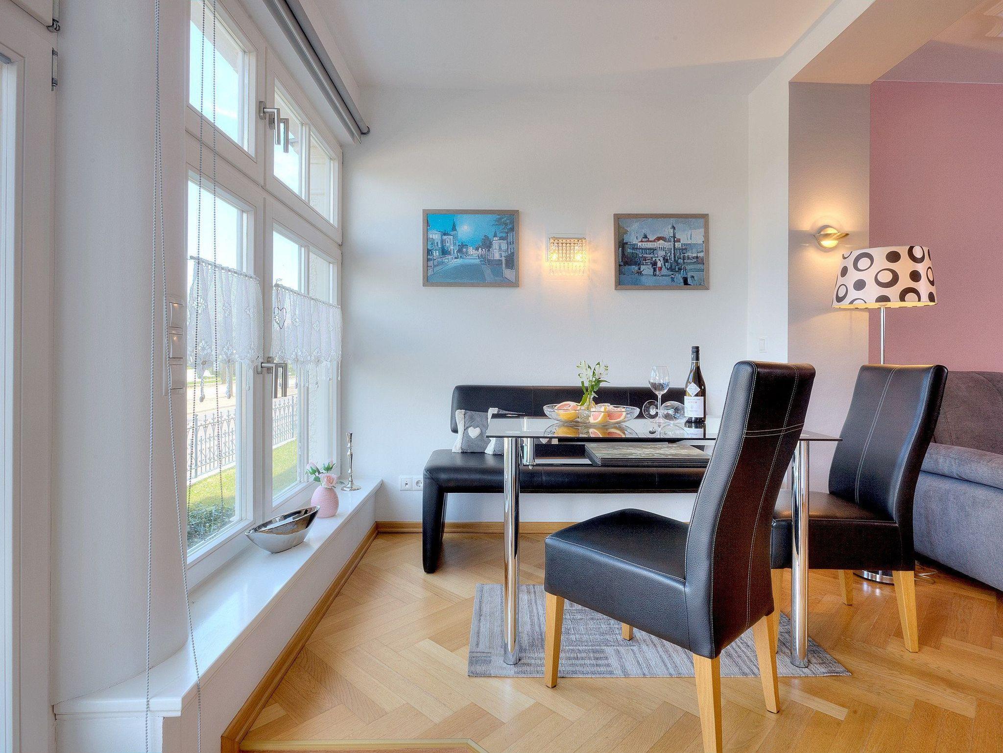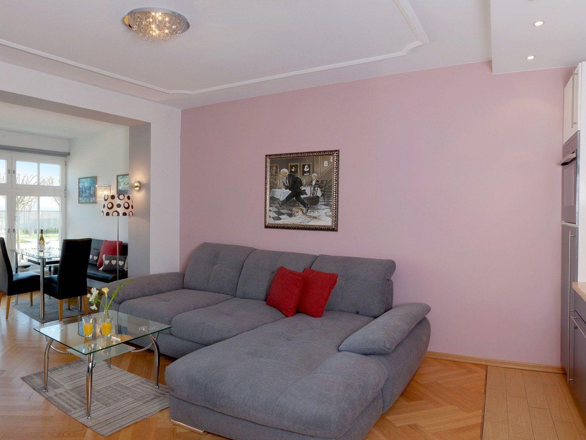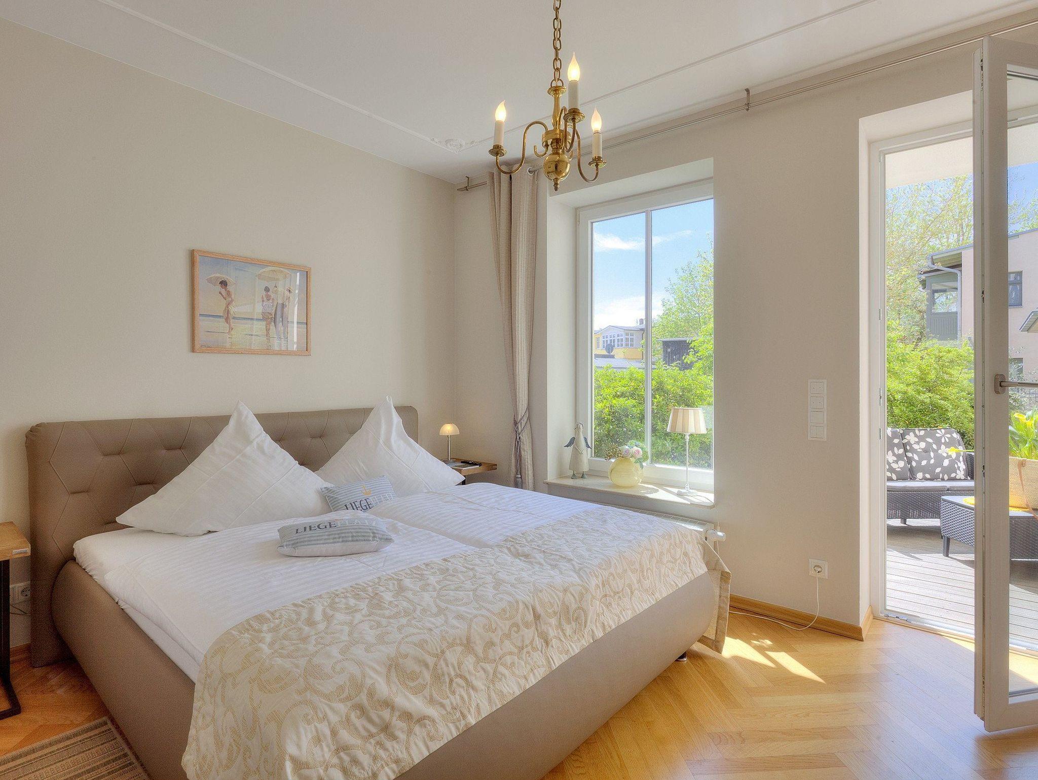 Bäderarchitektur und moderne Eleganz erwartet Sie in unserem komfortablen Appartement Nr. 2 der Villa Louise auf insgesamt 55 Quadratmetern. Im großzügigen Wohnraum mit schöner Sitzecke und gemütlichem Ecksofa können Sie alle News im TV verfolgen. Eine perfekt ausgestattete Küche mit allem Komfort wie: Backofen, Kühlschrank mit Gefrierfach, Geschirrspüler, Mikrowelle, Wasserkocher, Toaster, Kaffeemaschine und vielem mehr, was das Herz eines Hobbykochs höher schlagen lässt. Das frisch und freundlich gestaltetes Bad mit Dusche, WC und einem Haarfön lädt zum privaten Wellness nach dem Sonnenbaden oder dem Sprung ins Meer ein. Das Schlafzimmer überzeugt mit komfortablem Doppelbett (170 x 200cm / zwei getrennte Matratzen): hier haben Sie die Möglichkeit sich in Ruhe zurückzuziehen. Ein TV im Schlafzimmer rundet den komfort ideal ab.