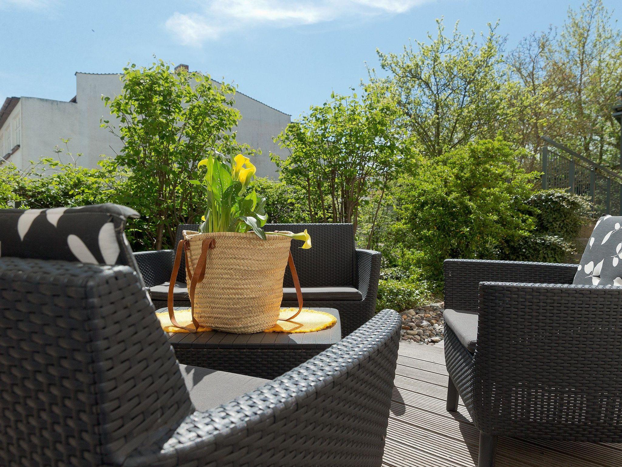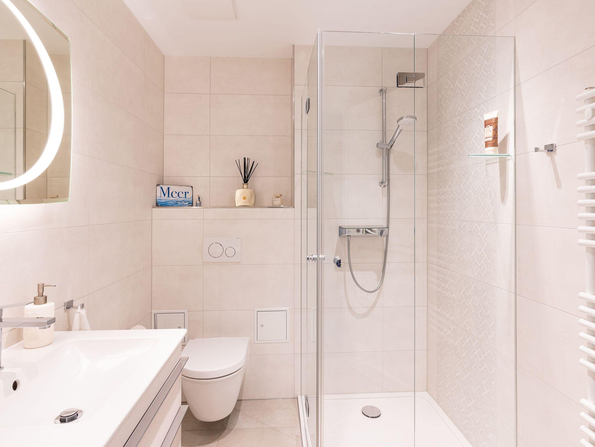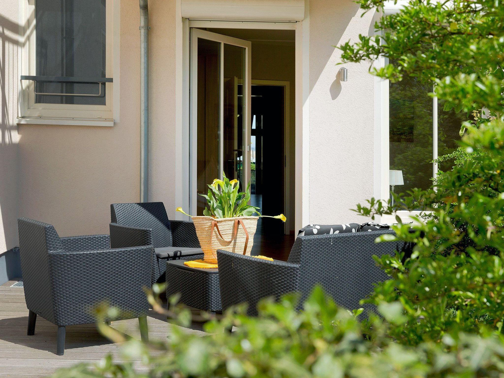 Ein besonderes Highlight des Appartements sind zwei herrliche Terrassen. Eine Terrasse lädt Sie ein, um das Leben an der Promenade (Richtung Nordost) zu beobachten und zu bestaunen sowie die Morgensonne und den Schiffsverkehr auf dem Meer bei der ersten Tasse Kaffee oder Tee zu genießen. Eine weitere Terrasse, auf die Sie schon aus den großen Panoramafenstern vom Schlafraum blicken, ist nach Richtung Südwesten angelegt. Hier lässt es sich wunderbar im Sonnenschein lesen oder relaxen. Für einen erholsamen Urlaub mit viel frischer Luft und Sonne wird es Ihnen an Nichts fehlen. Herzlich Willkommen!