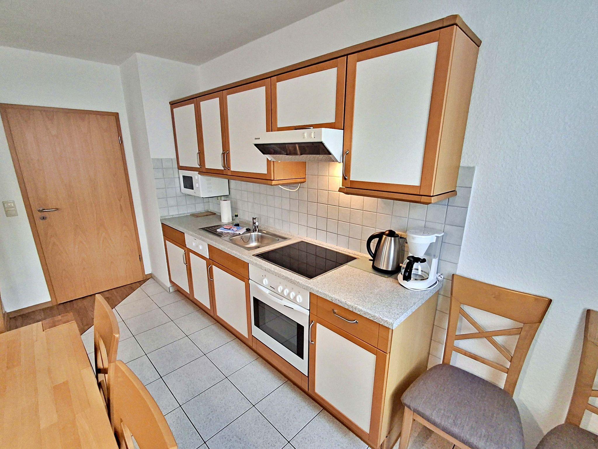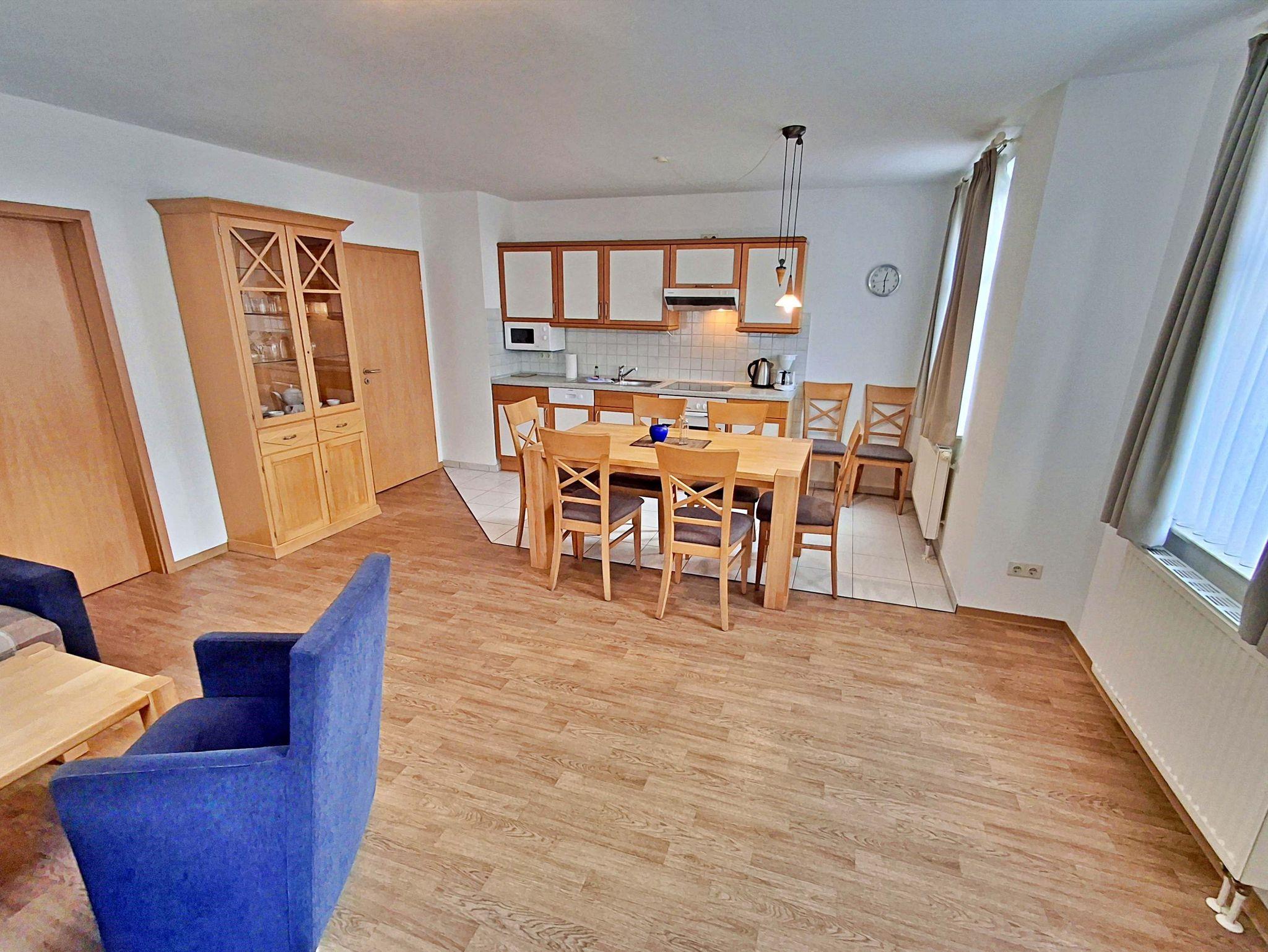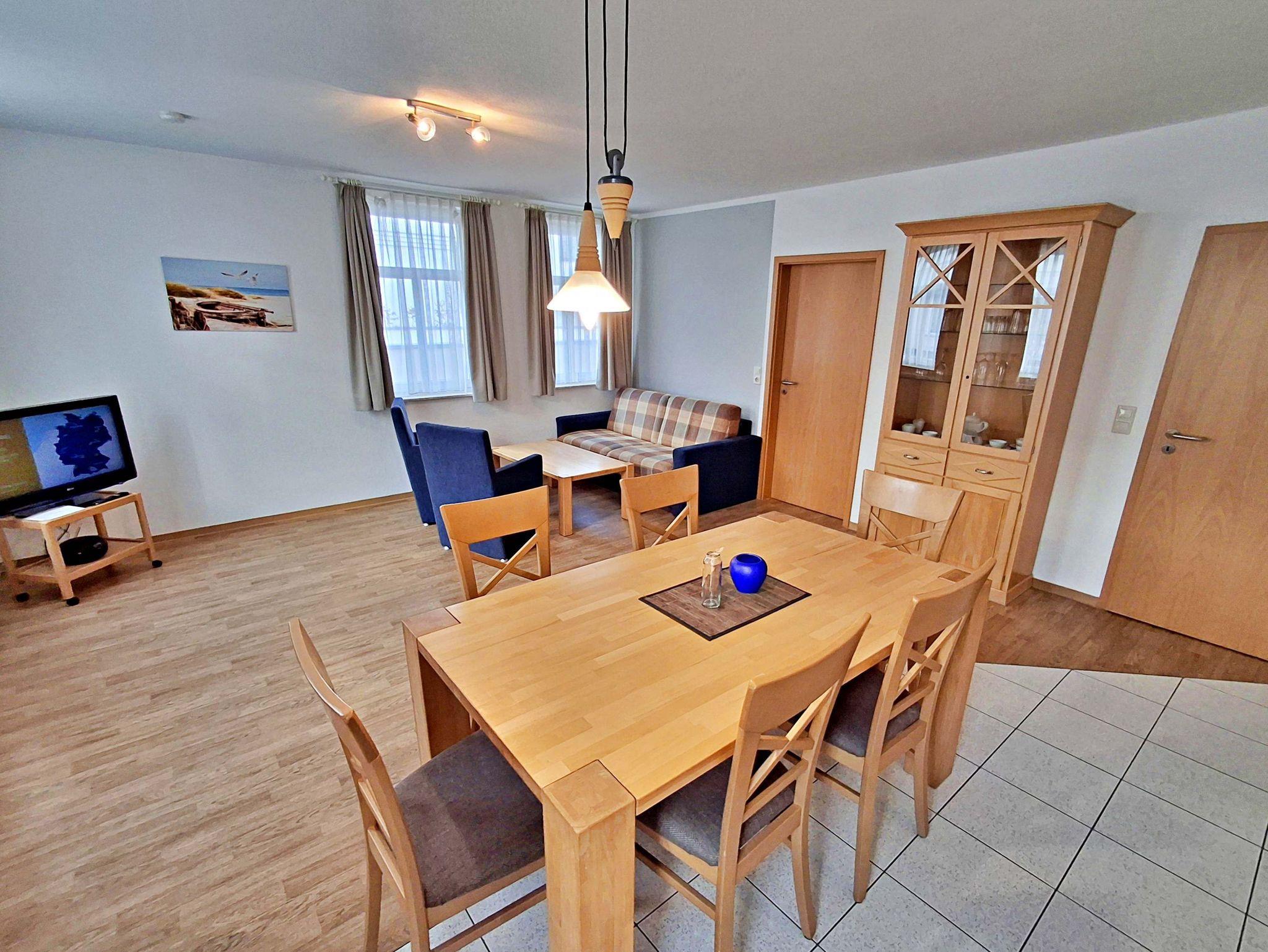 Die freundliche 3-Zimmer-Wohnung Koserow für max. 5 Erwachsene und 1 Kleinkind bis 3 Jahre befindet sich im Erdgeschoss im Haus am Kurpark - nur wenige Schritte von der Promenade und dem Strand entfernt. Im Wohnbereich befinden sich neben der gemütlichen Couch (Aufbettungsmöglichkeit für 2 weitere Personen) auch zwei Sessel sowie ein Esstisch mit 4 Stühlen, der genügend Platz für 6 Personen bietet. Die moderne Küchenzeile mit Ceranherd, Backofen, Geschirrspüler, Mikrowelle, Kaffeemaschine, Wasserkocher und Toaster lässt keine Wünsche offen. Für die Unterhaltung sorgen ein Flachbild-TV, Radio-CD-Player und kostenfreies W-LAN. Das 1. Schlafzimmer verfügt über ein Doppelbett und das zweite Schlafzimmer über 2 Einzelbetten. Das Badezimmer hat Badewanne/WC.