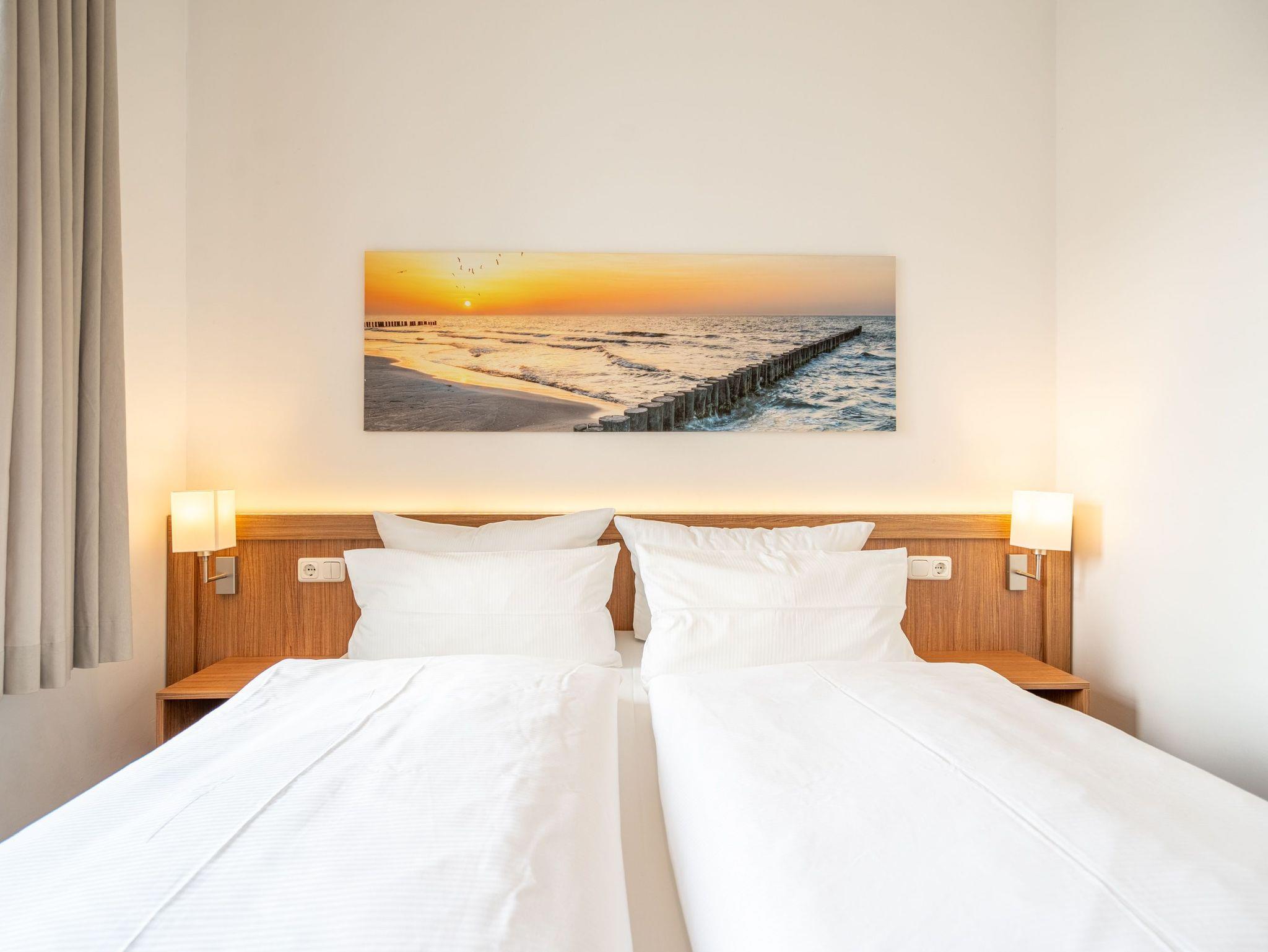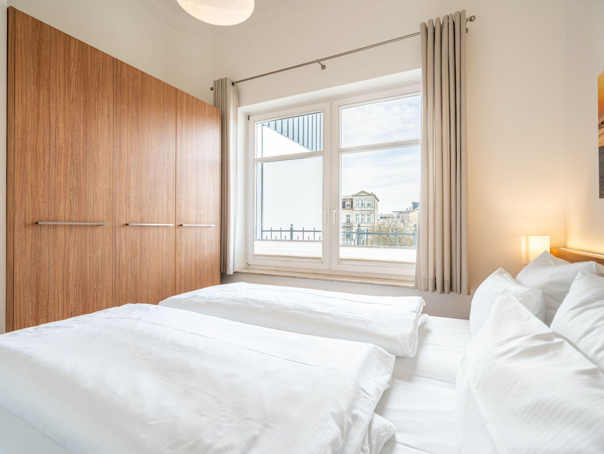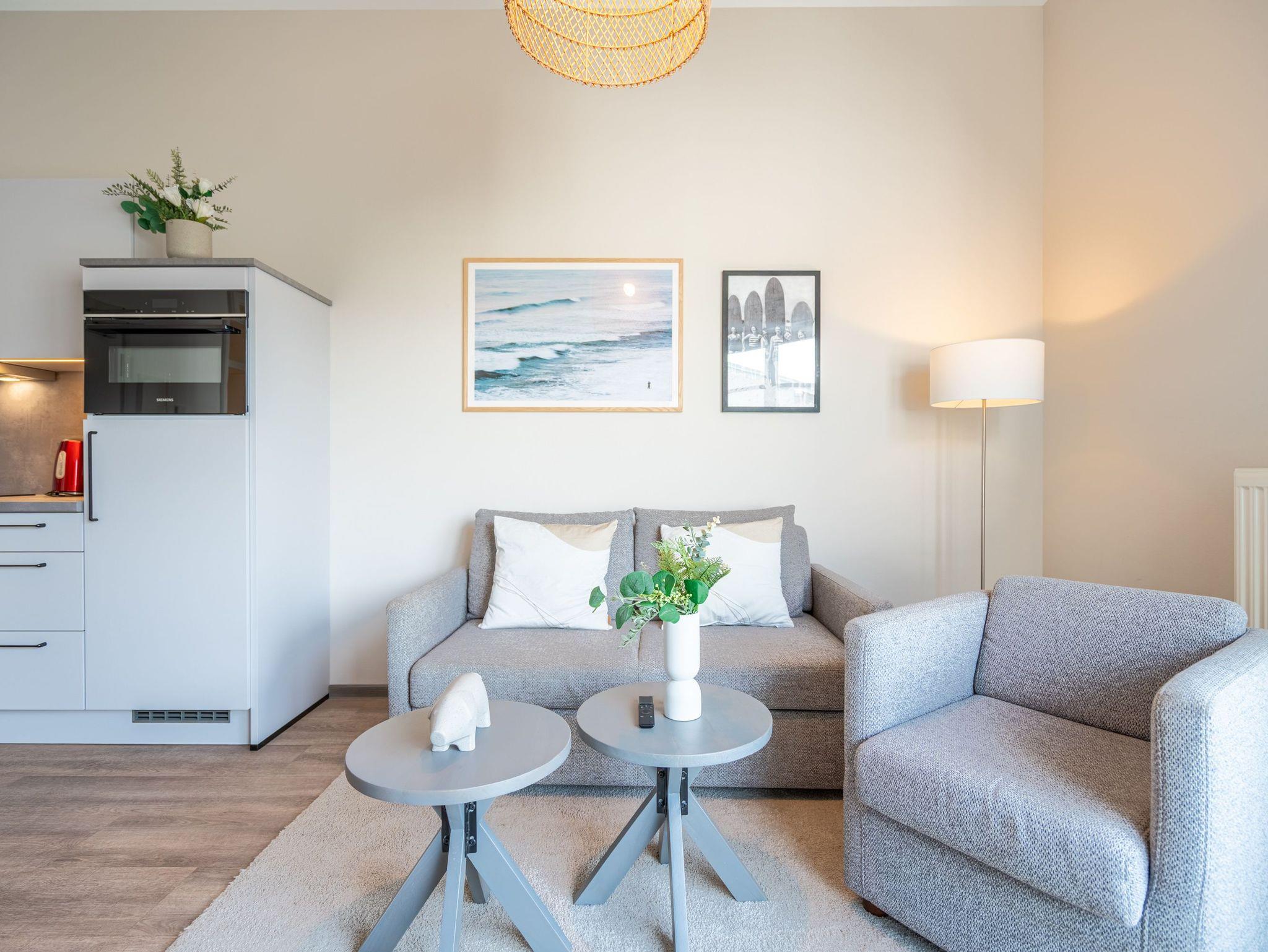 Die 2-Raum-Ferienwohnung Nr. C04 in der Villa Seedüwel bietet auf 38 qm Platz für zwei Personen und befindet sich im 1. Obergeschoss. Der offene Wohnbereich umfasst eine Küchenzeile mit einem Induktionskochfeld, einer Mikrowelle und einem Kühlschrank mit Gefrierfach. Ein Essplatz für zwei Personen, eine gemütliche Sitzgruppe und ein Flat-TV runden den Wohnbereich ab. Vom Wohnbereich aus gelangen Sie auf den ca. 4 qm großen West-Balkon, wo Sie entspannen können. Das Schlafzimmer ist mit einem Doppelbett (1,60 m x 2,00 m) und einem Kleiderschrank ausgestattet. Das innenliegende Bad verfügt über eine Dusche und ein Waschbecken, zudem gibt es ein separates WC. Ein Stellplatz in der Tiefgarage ( Einfahrthöhe 2,03m) des benachbarten Hauses „Strandterrasse“ ist für Sie reserviert. WLAN steht Ihnen kostenfrei zur Verfügung.