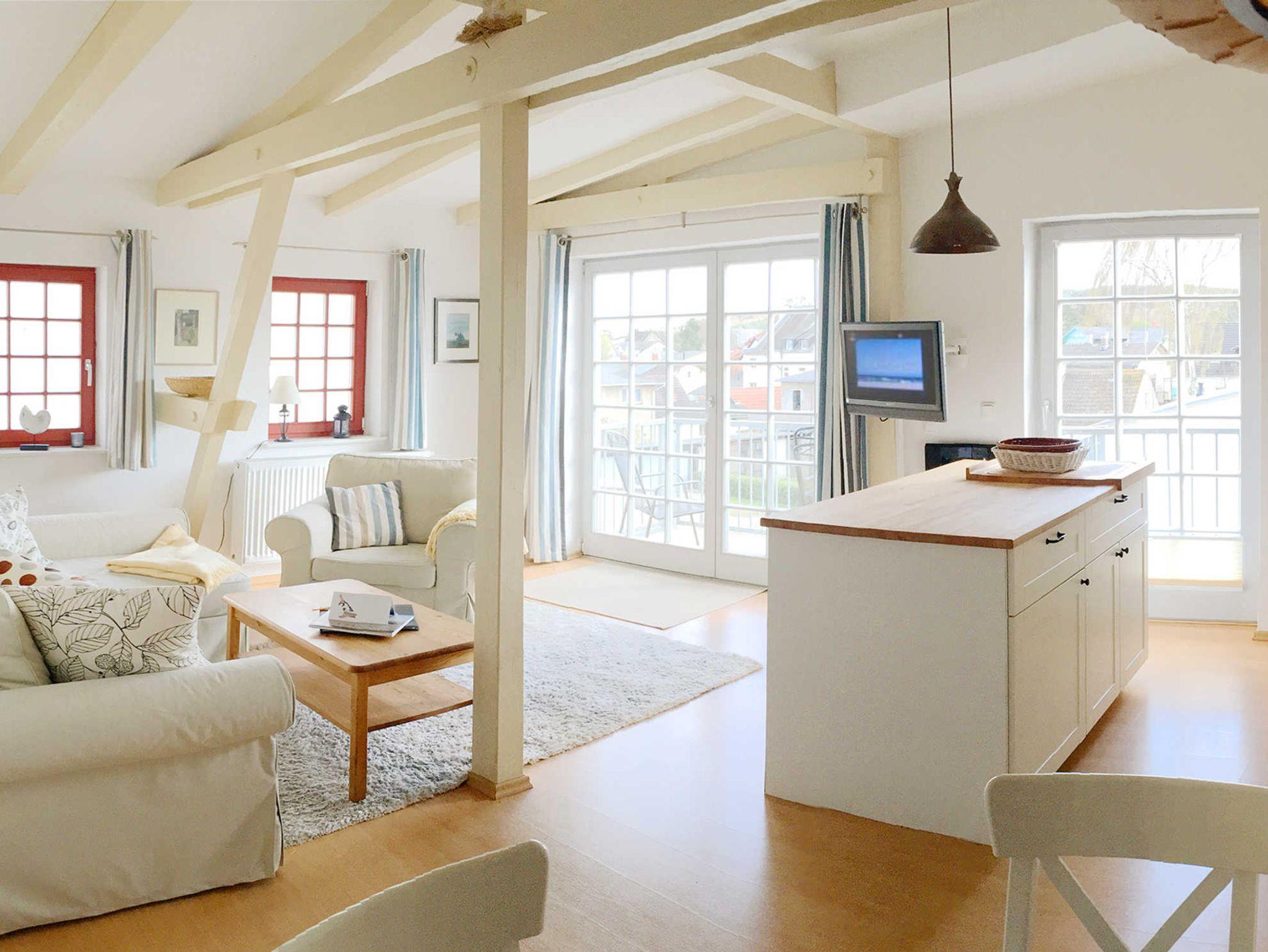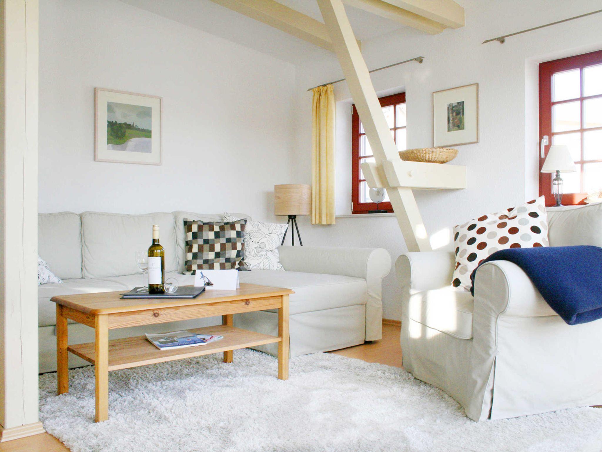 Die helle, freundliche Ferienwohnung befindet sich im Dachgeschoss der Remise der Villa Bellevue. Die vollständige Einrichtung und die liebevollen Dekorationen im Landhausstil lassen keine Wünsche übrig. Der Wohnbereich mit vollständig ausgestatteter Küchenzeile, zwei Schlafzimmer mit Doppelbetten, das Duschbad, Gäste-WC und der Südbalkon bieten 2-4 Personen und einem Baby (Kleinkind bis ca. 3 Jahre) Platz zum Wohlfühlen. Das WLAN-Netz steht Ihnen kostenfrei zur Verfügung. Ein Kinderreisebett und ein Hochstuhl stehen kostenfrei zur Verfügung.