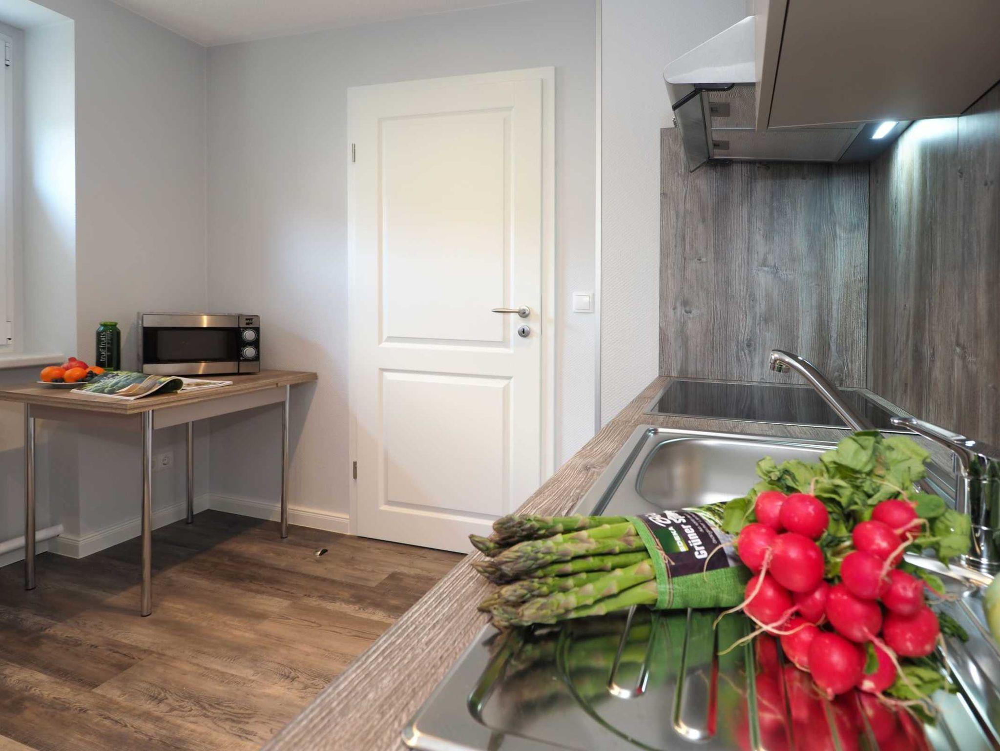 • Küchenbereich: Offen, Backofen, Kühlschrank