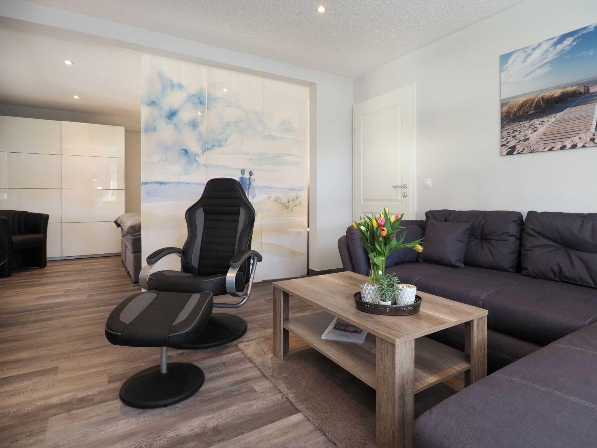Wir bieten Ihnen auf 74 m² eine modern eingerichtete Ferienwohnung in Strandnähe. Hier in der Wohnung 4 OG können bis zu vier Personen ihren Urlaub verbringen.